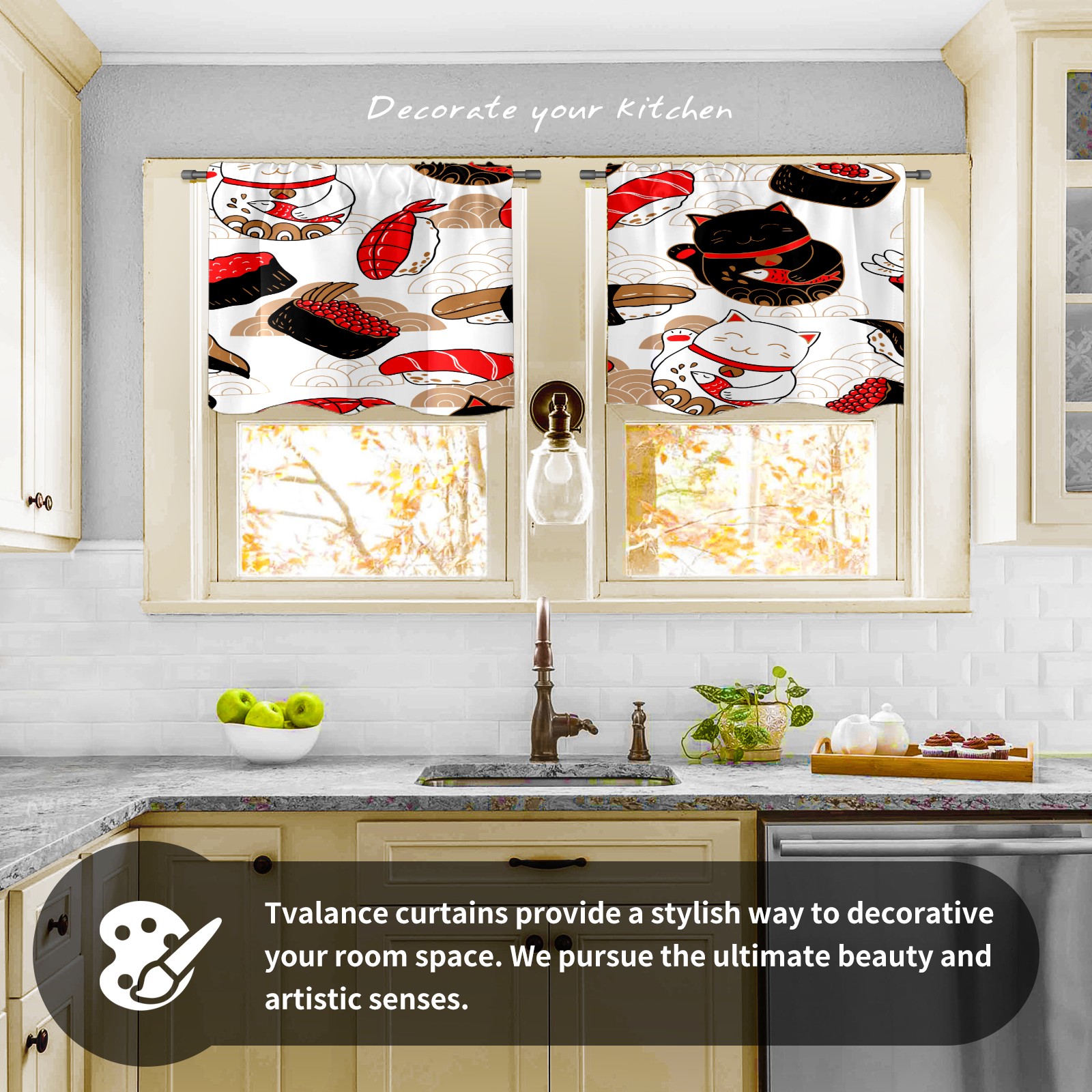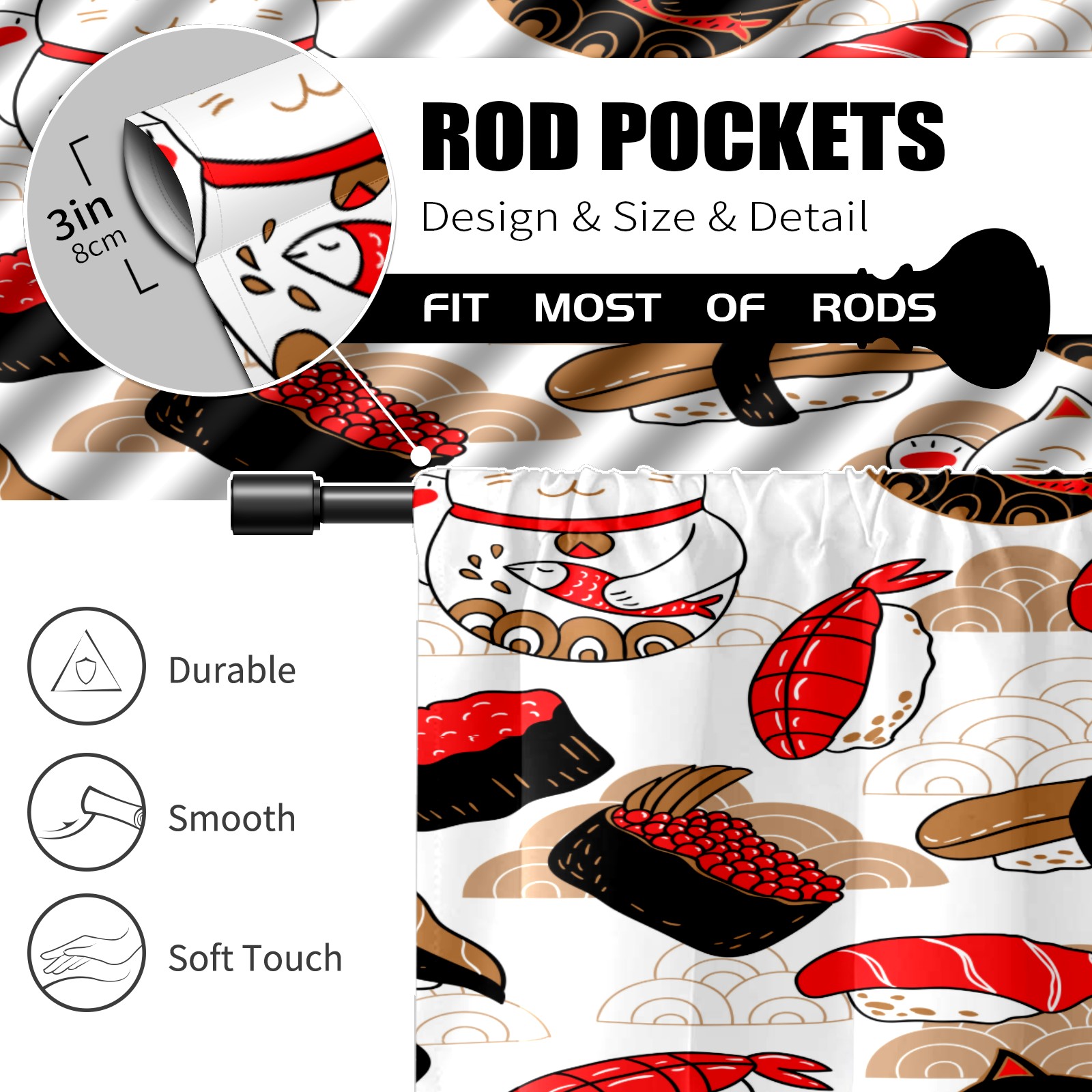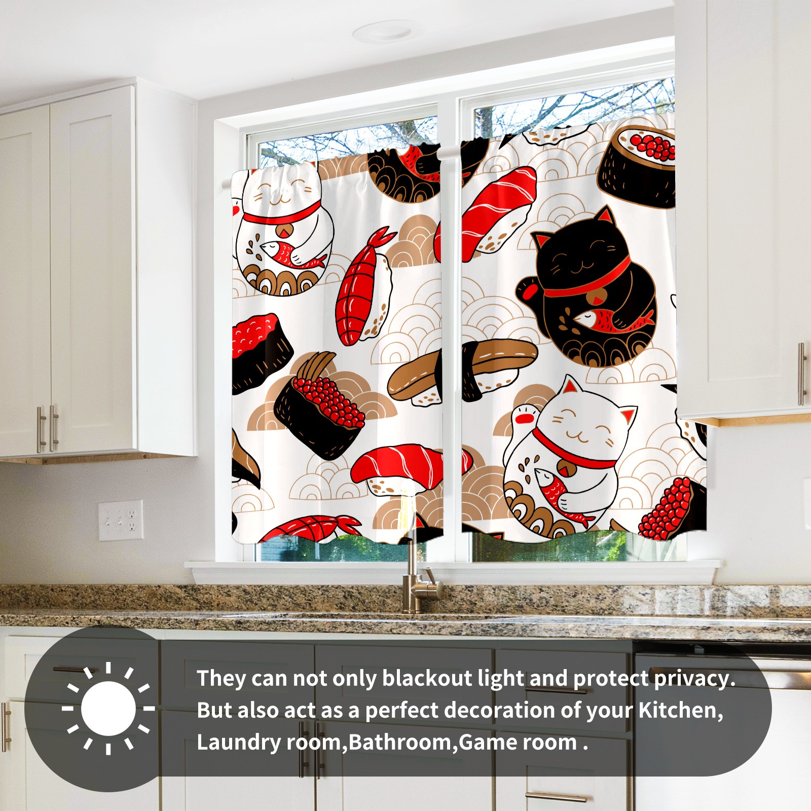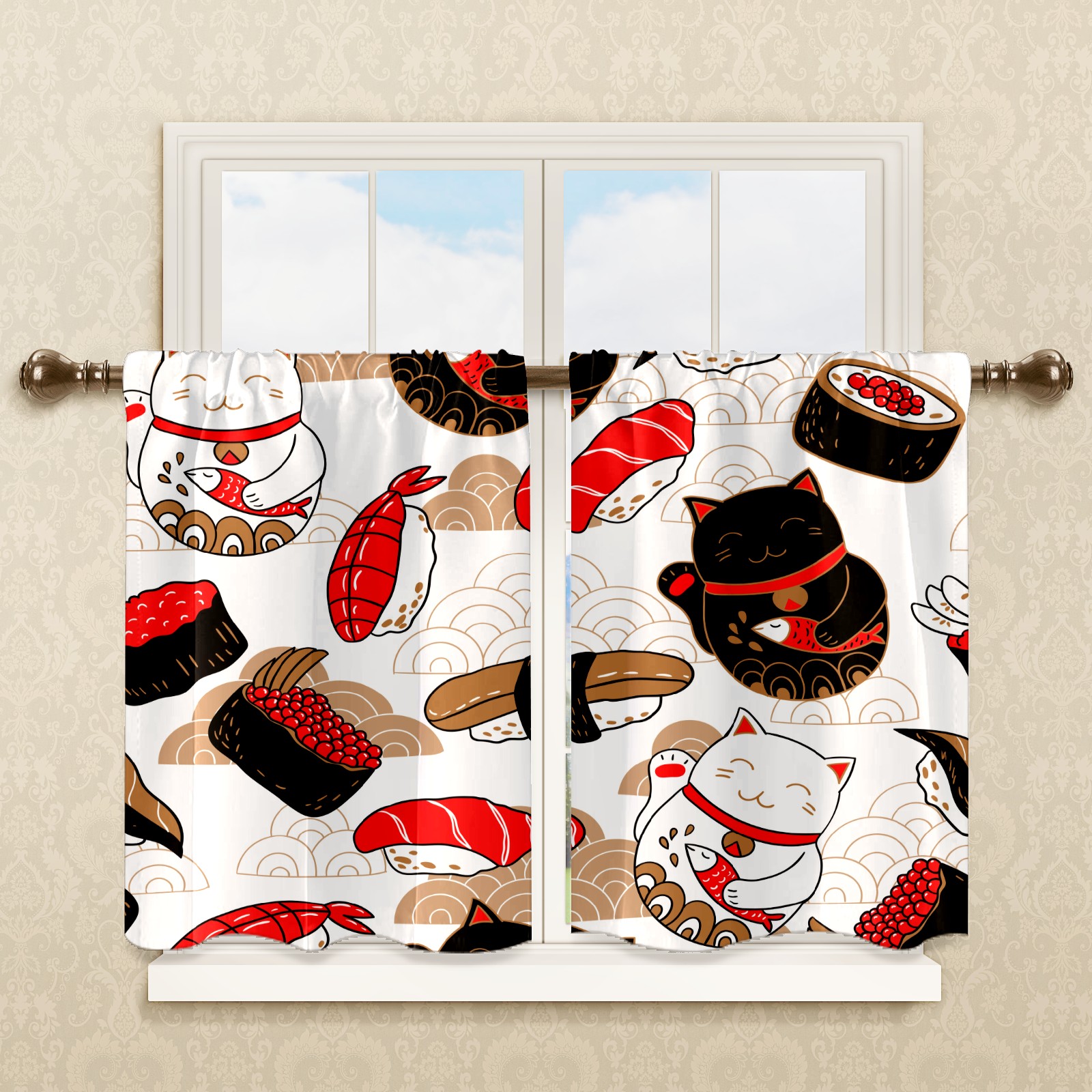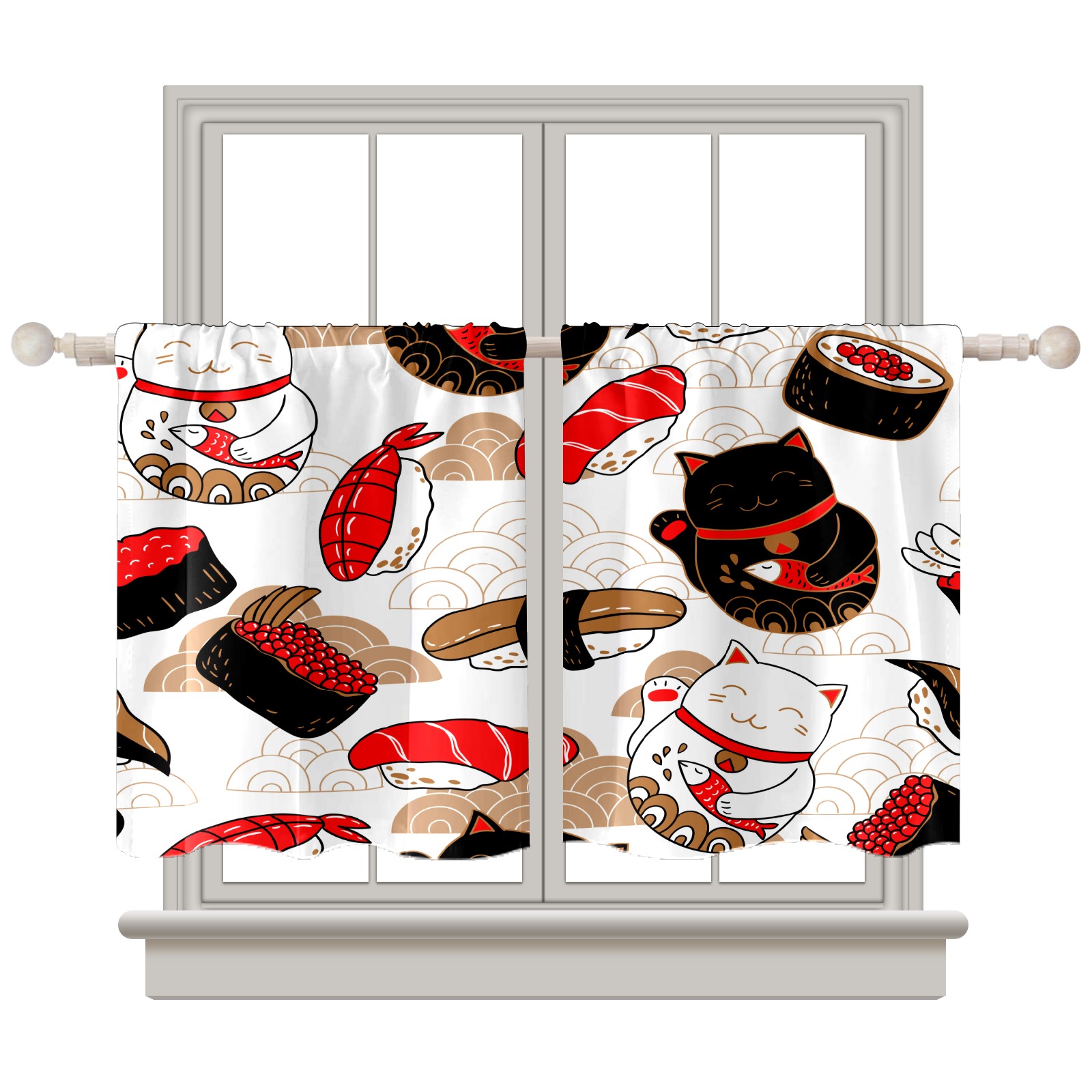 Шторы-панно для дома, декоративные драпировки для гостиной и спальни, легкие и прочные, Japanese Luck Cat Sushi Food Maneki Neko