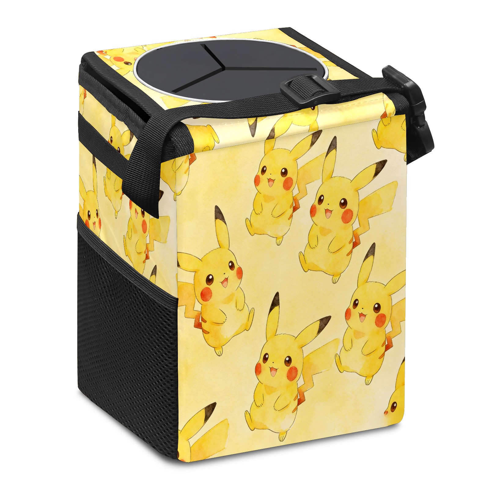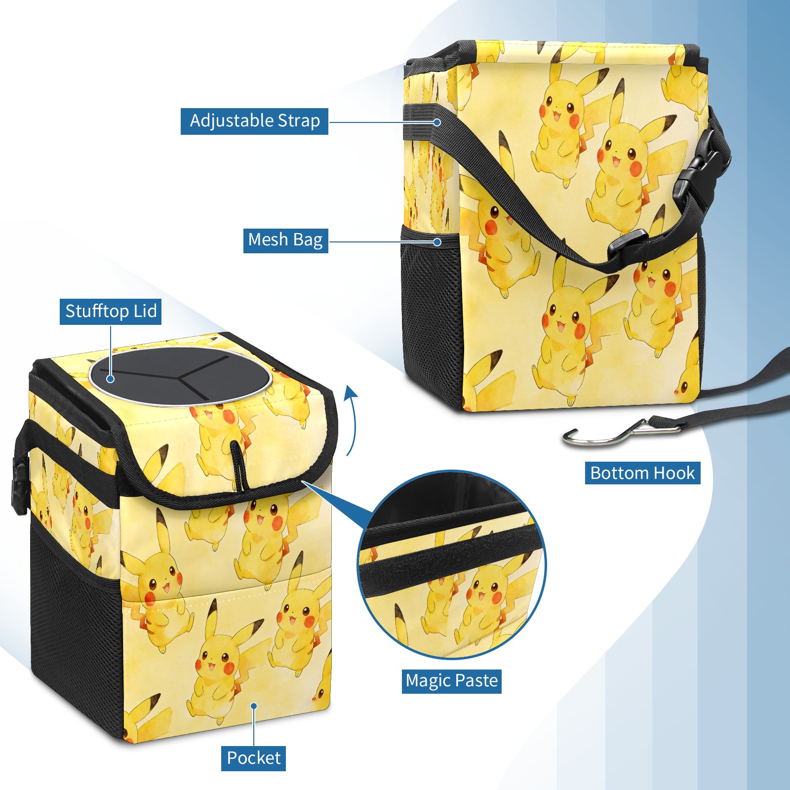 Car Trash Can with Lid, Small Portable Hanging Automotive Garbage Bin for Vehicles, Leakproof Waste Bag Container for SUV Truck Van Interior Auto Travel Road Trips(Pikachu Fun)