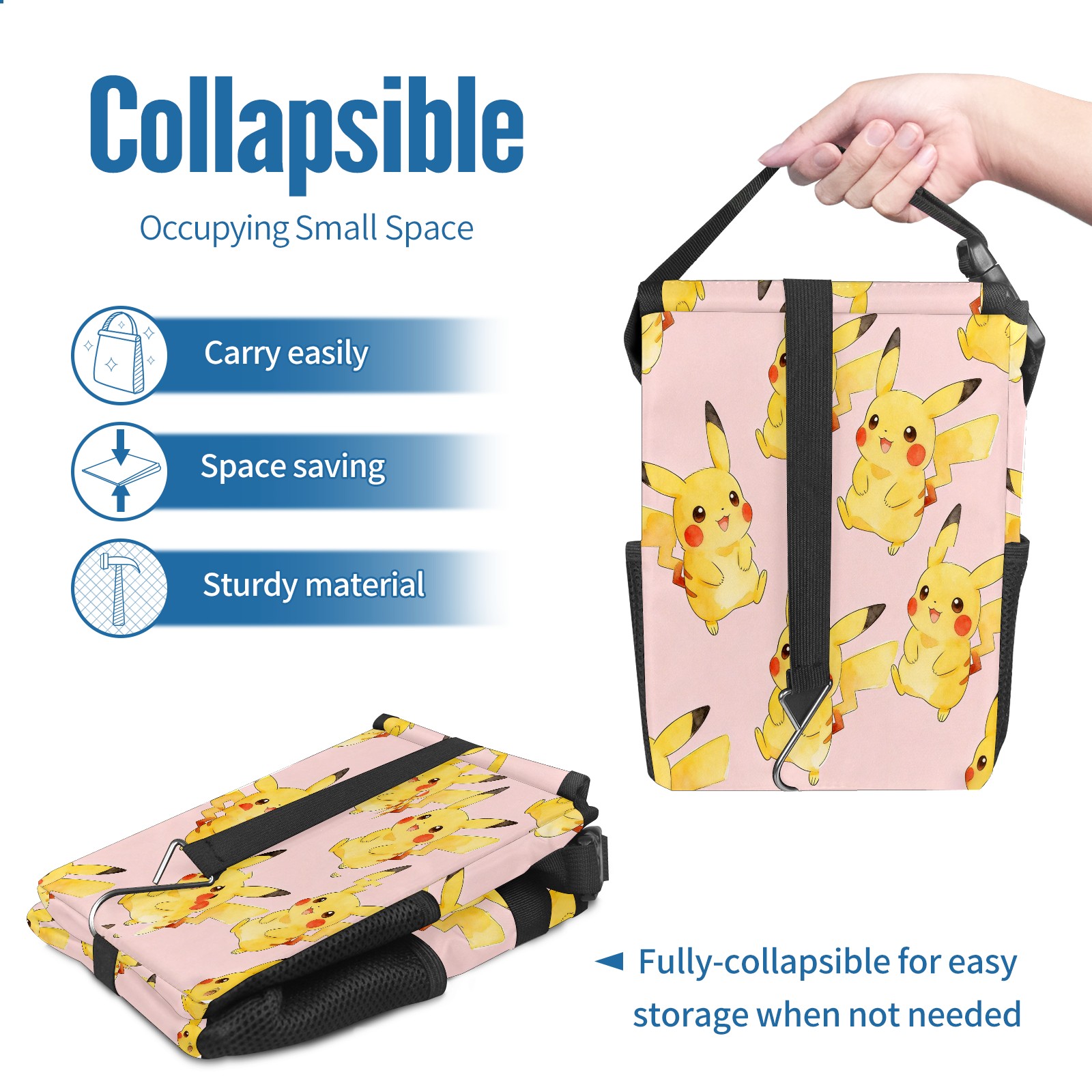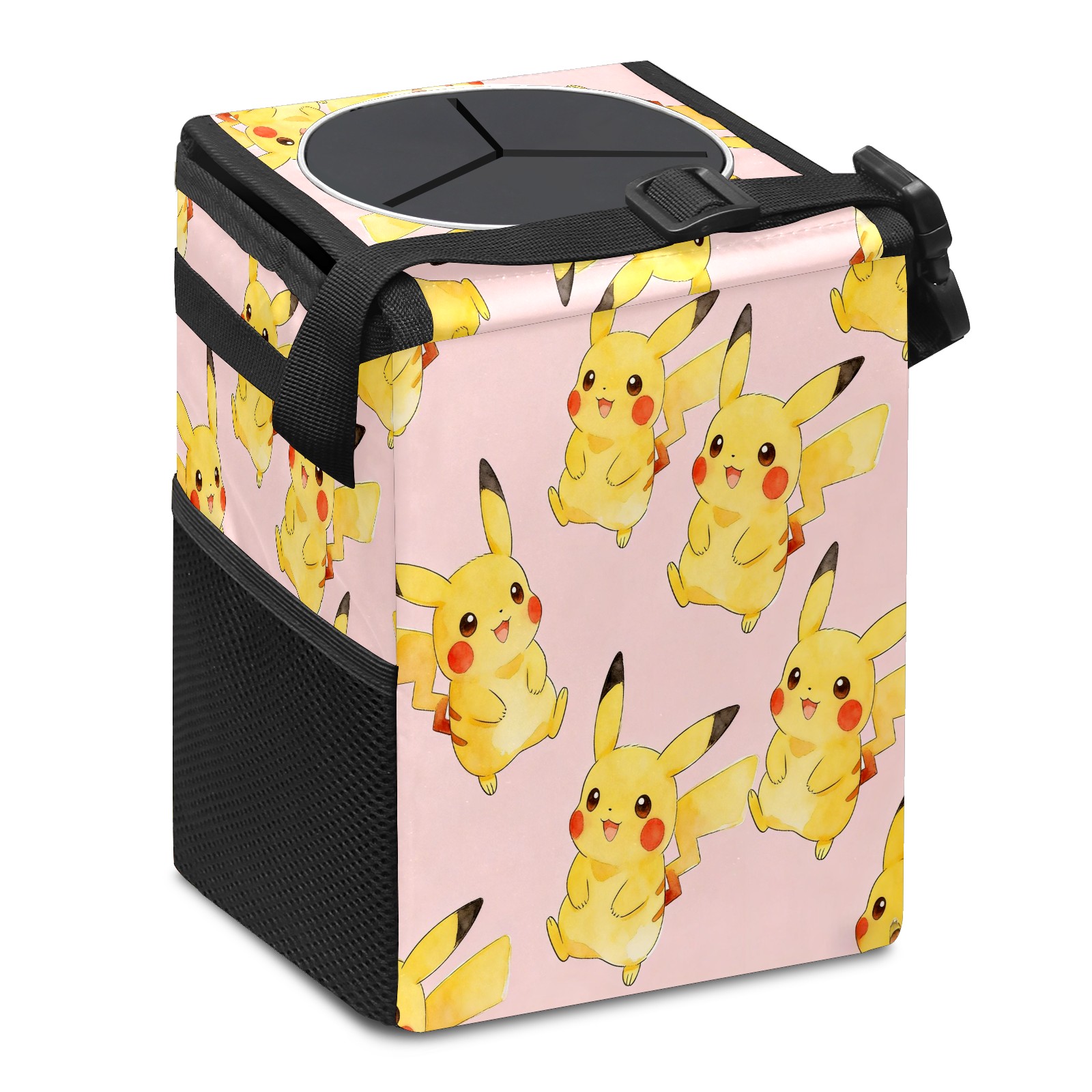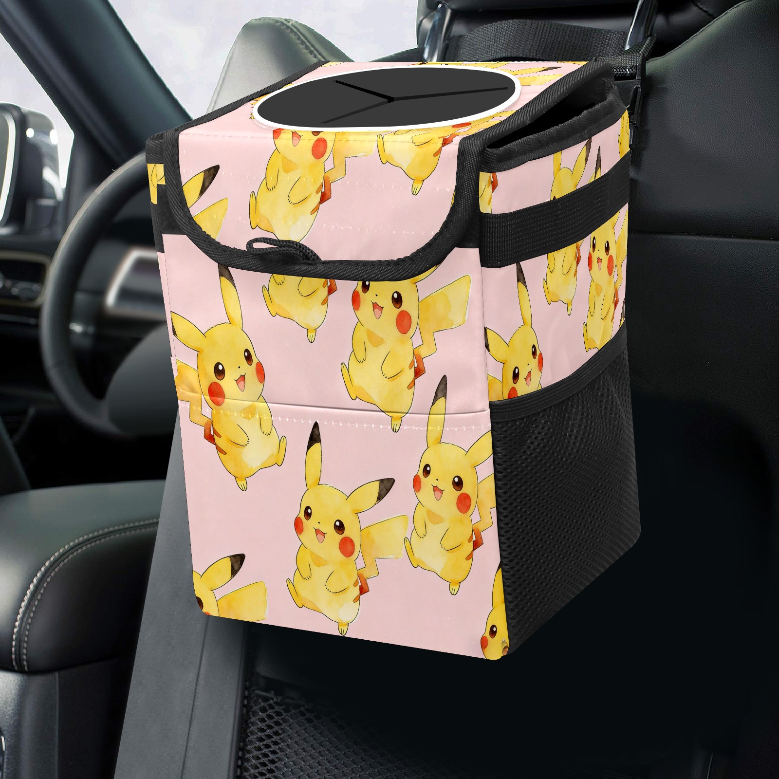 Car Trash Can with Lid, Small Portable Hanging Automotive Garbage Bin for Vehicles, Leakproof Waste Bag Container for SUV Truck Van Interior Auto Travel Road Trips(Pikachu Land)