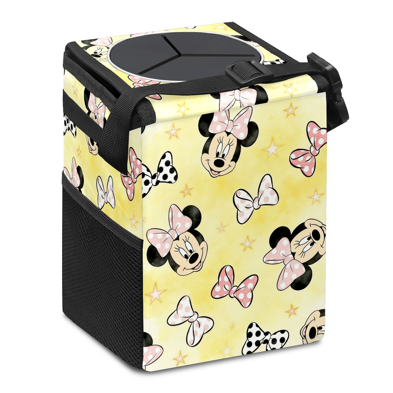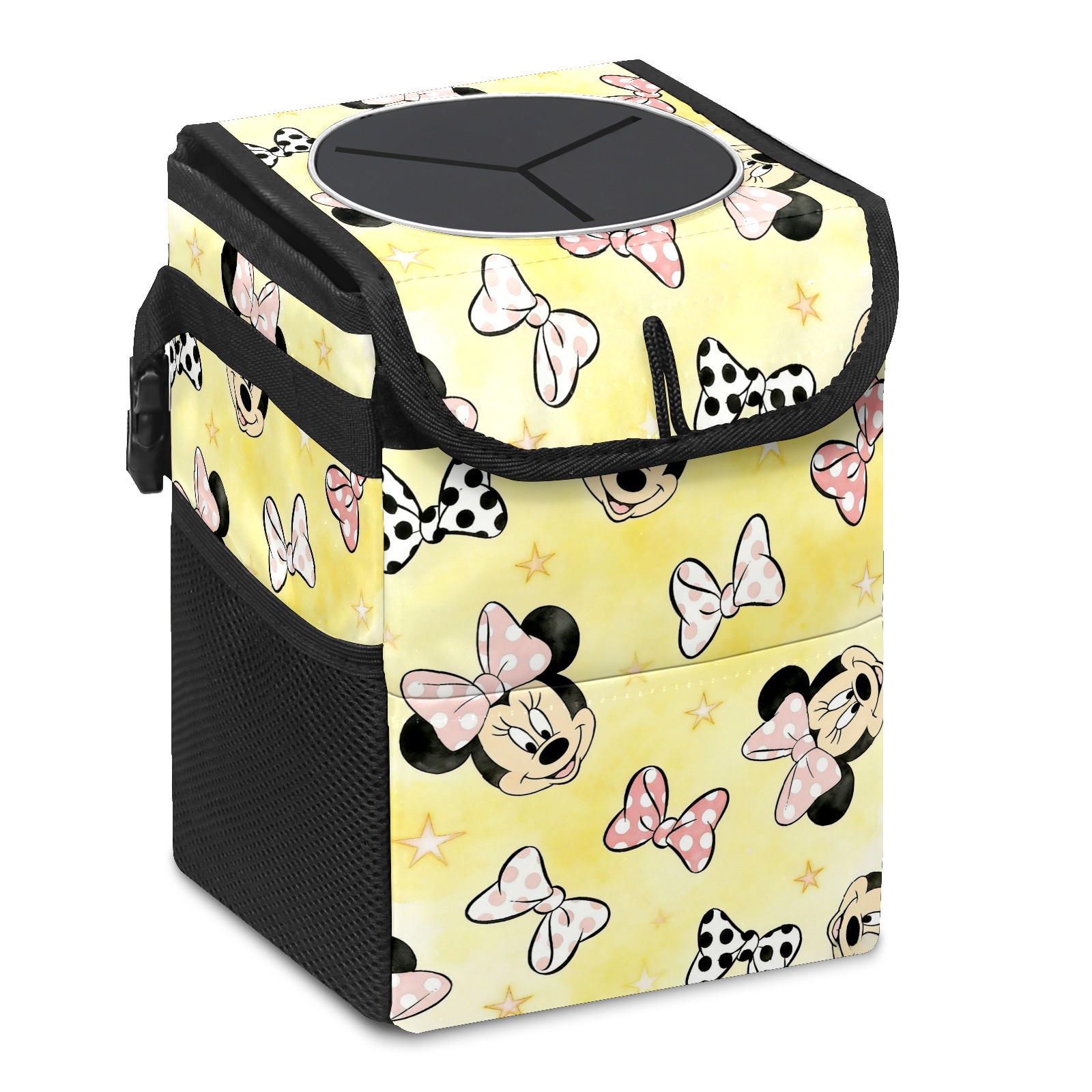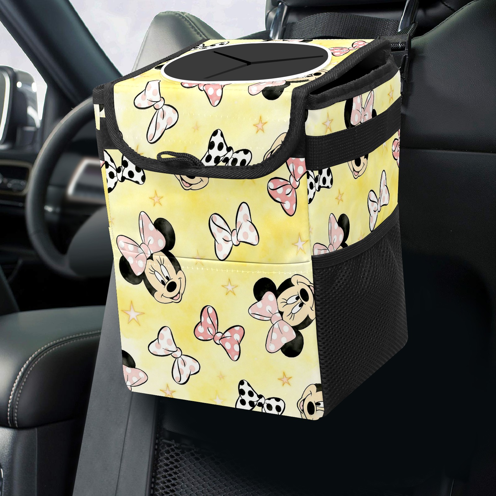 Car Trash Can with Lid, Small Portable Hanging Automotive Garbage Bin for Vehicles, Leakproof Waste Bag Container for SUV Truck Van Interior Auto Travel Road Trips(Mickey Land)