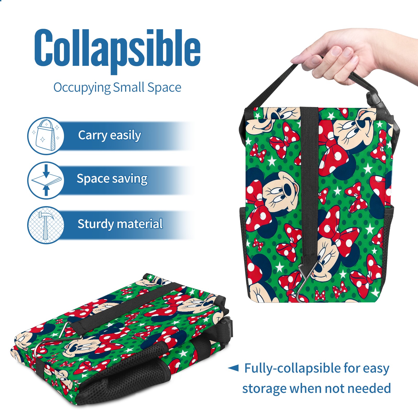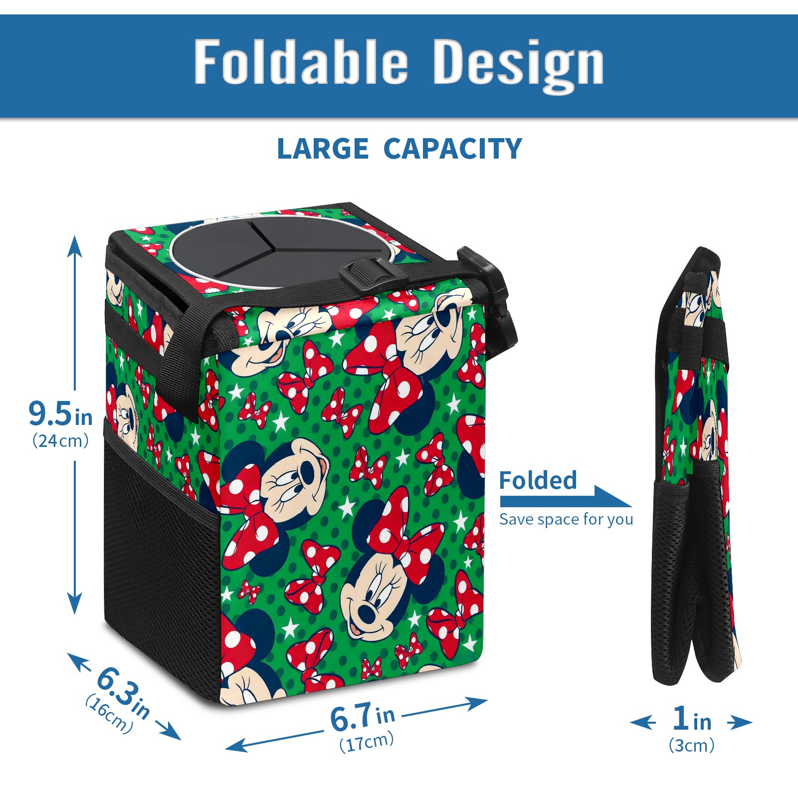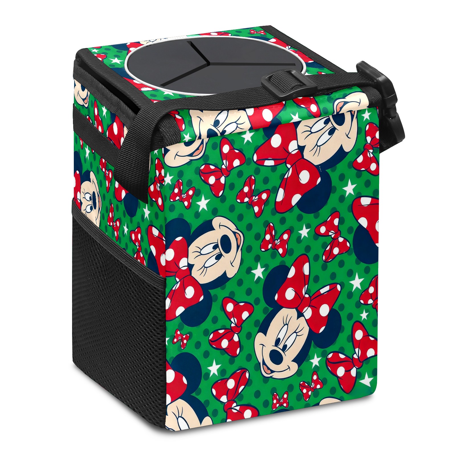 Car Trash Can with Lid, Small Portable Hanging Automotive Garbage Bin for Vehicles, Leakproof Waste Bag Container for SUV Truck Van Interior Auto Travel Road Trips(Mickey Green)