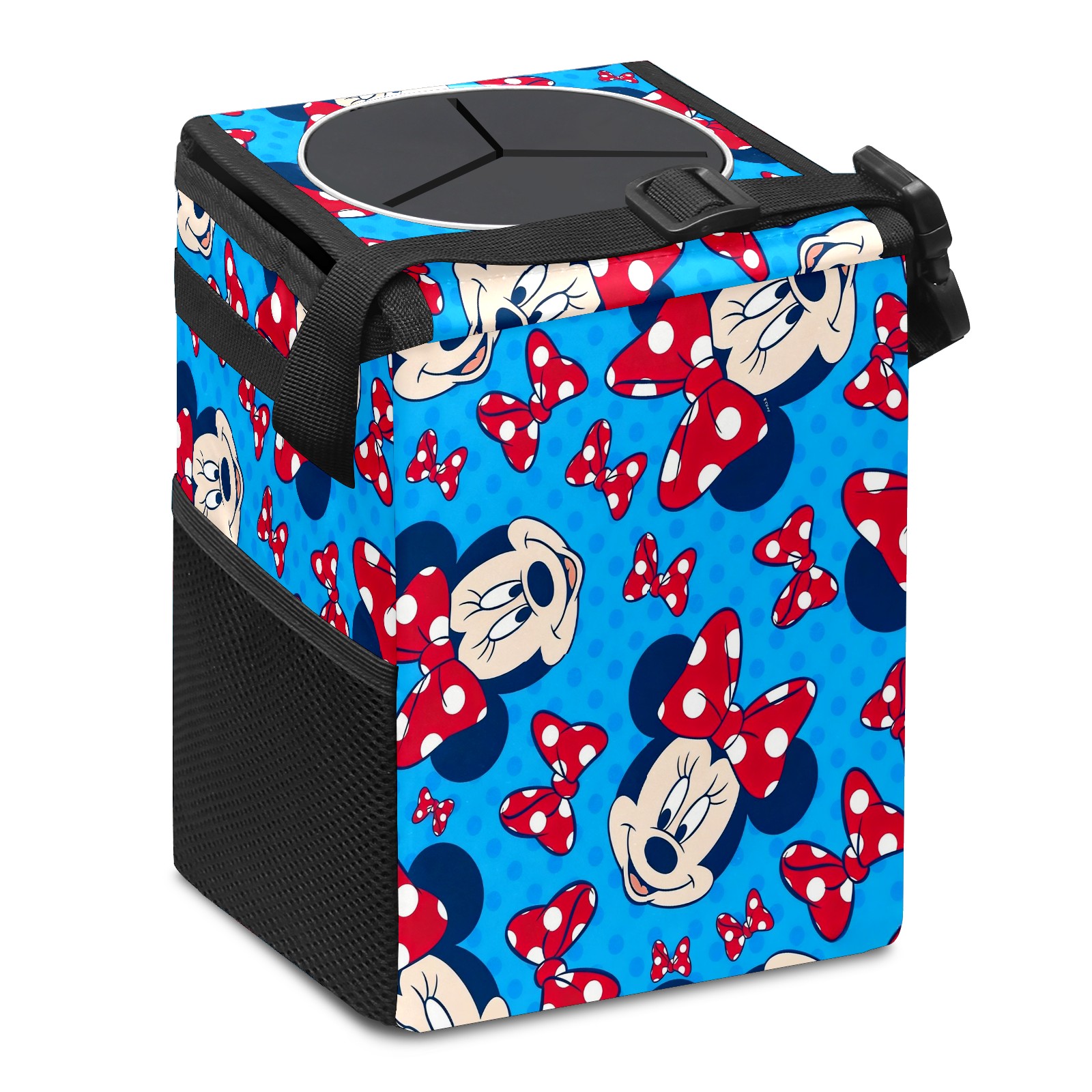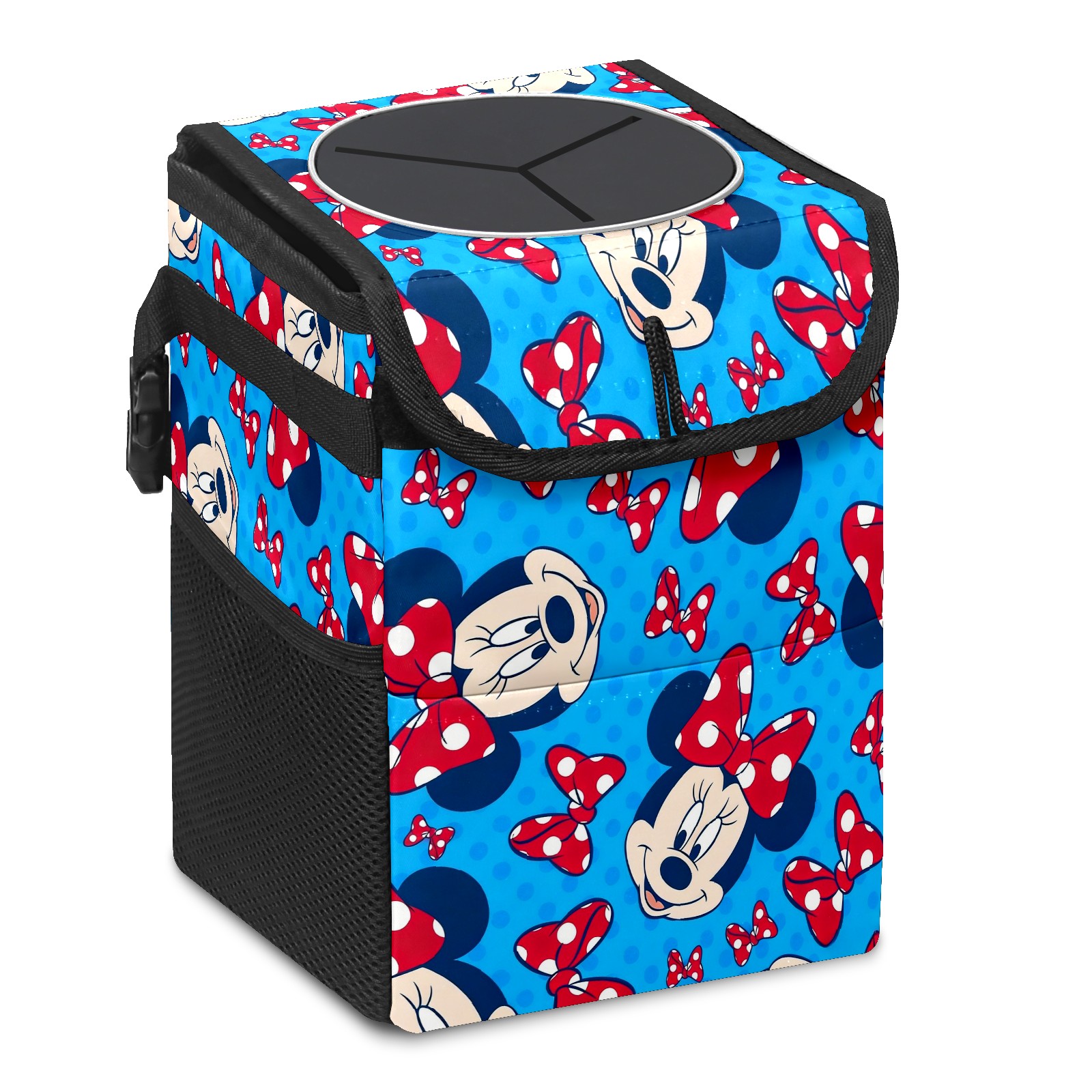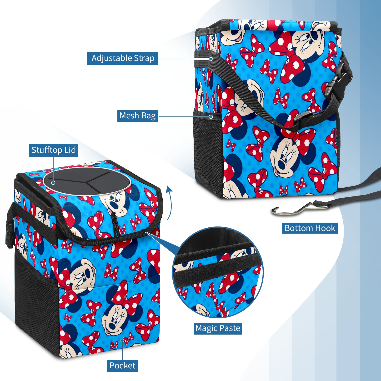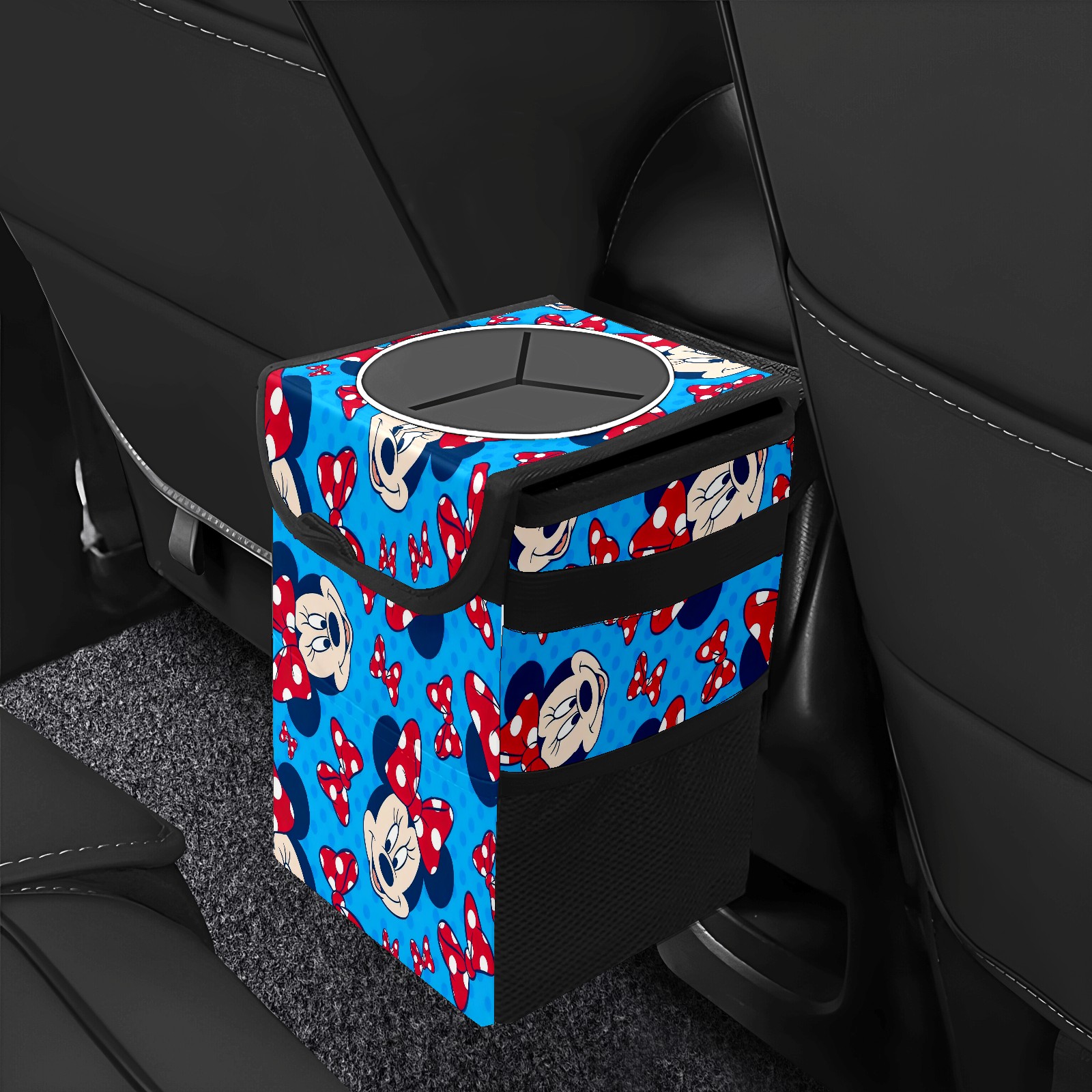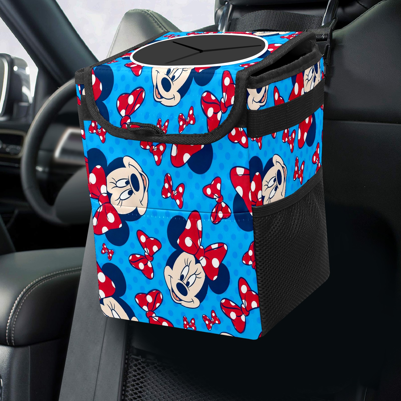 Car Trash Can with Lid, Small Portable Hanging Automotive Garbage Bin for Vehicles, Leakproof Waste Bag Container for SUV Truck Van Interior Auto Travel Road Trips(Mickey Blue)