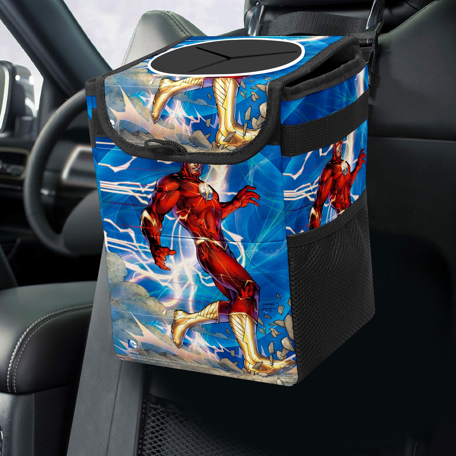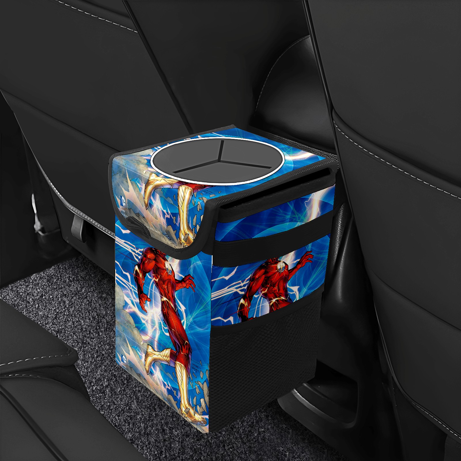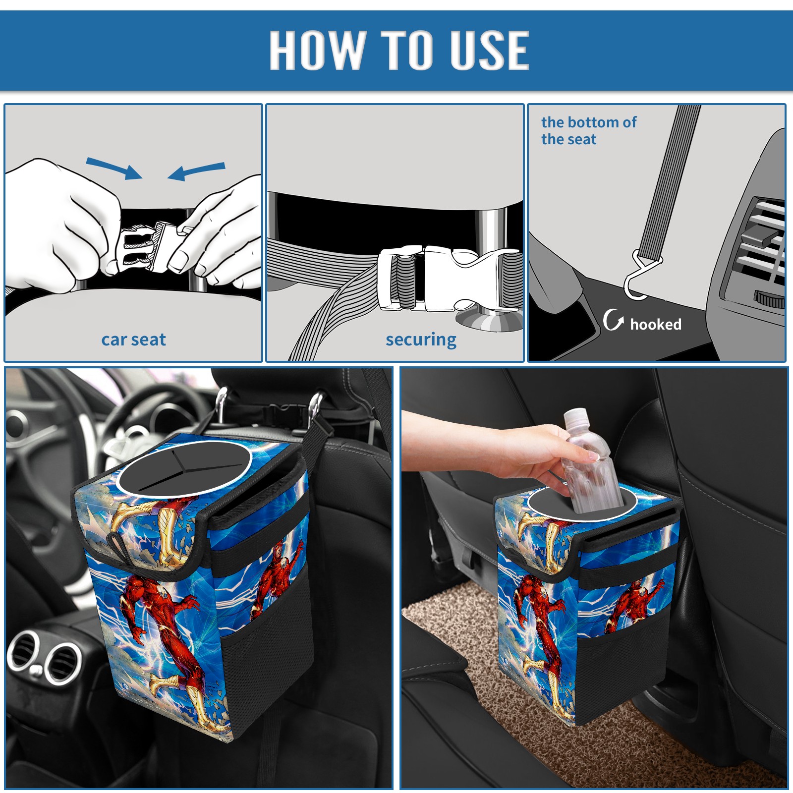 Car Trash Can with Lid, Small Portable Hanging Automotive Garbage Bin for Vehicles, Leakproof Waste Bag Container for SUV Truck Van Interior Auto Travel Road Trips(漫威 (1187))