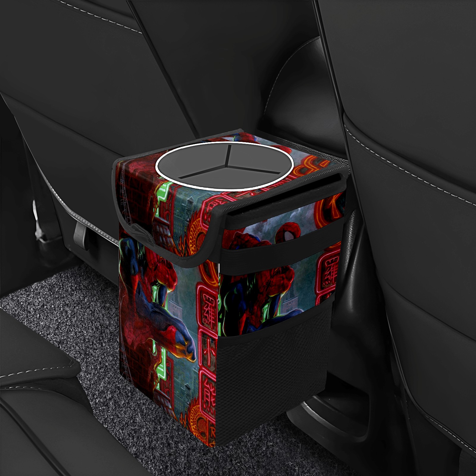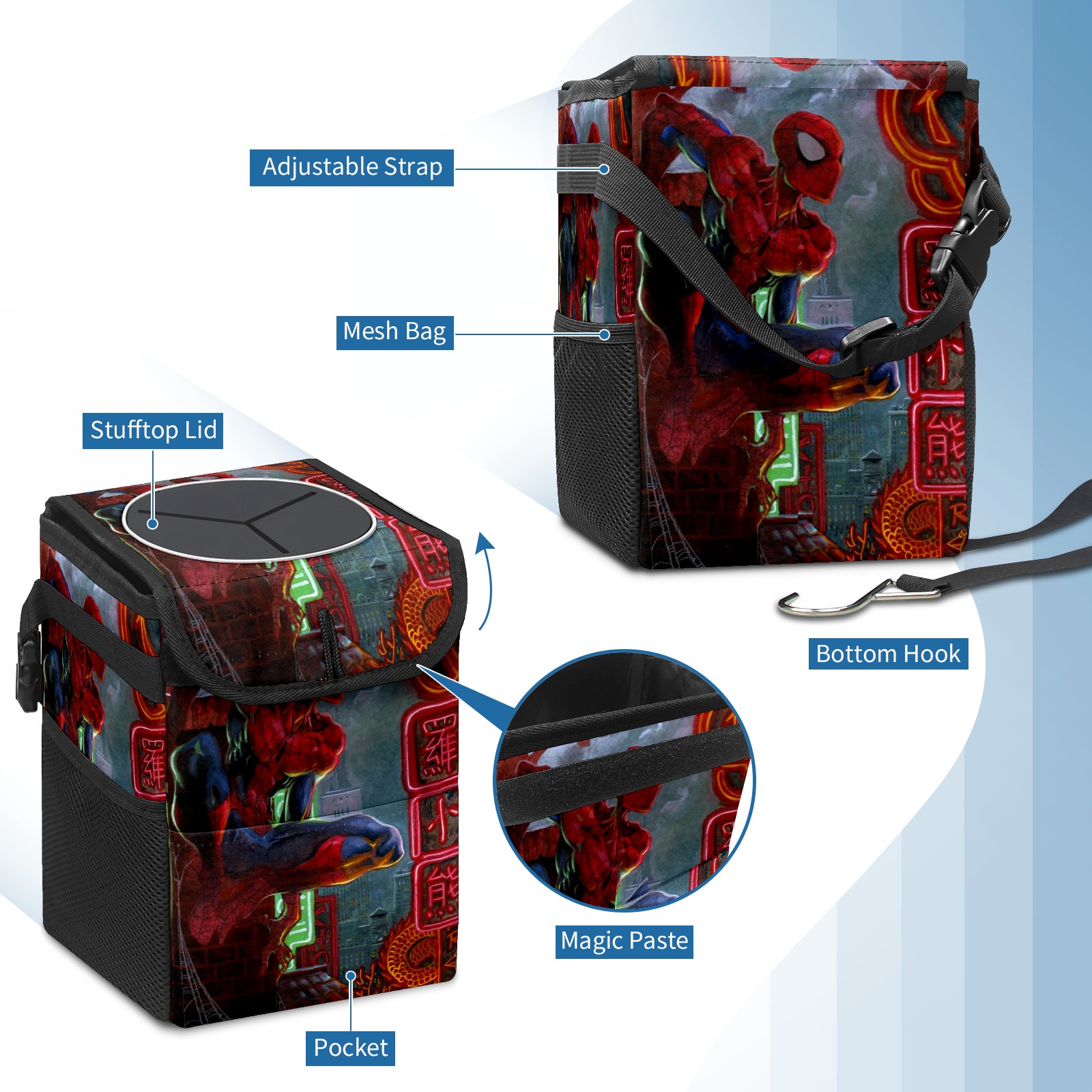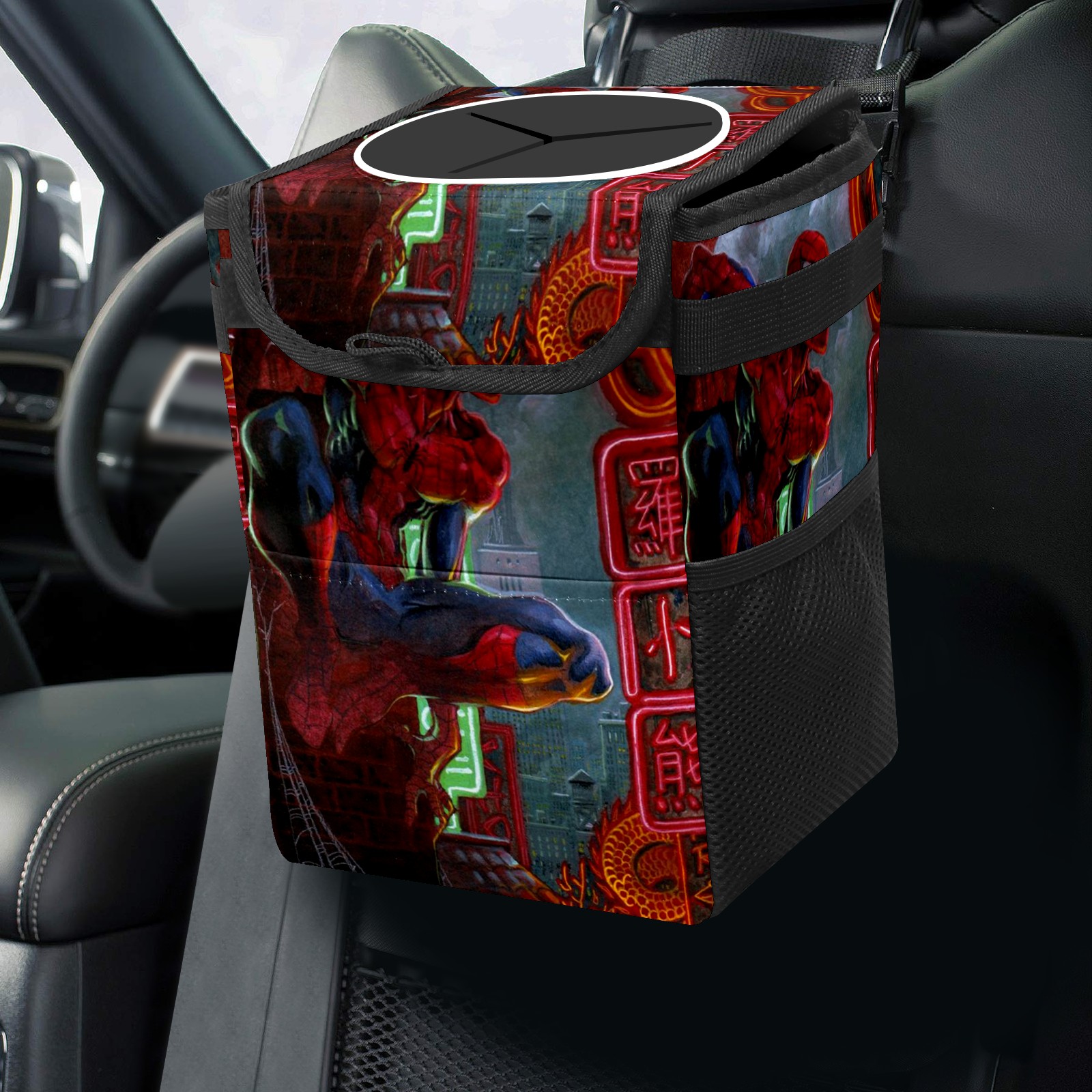 Car Trash Can with Lid, Small Portable Hanging Automotive Garbage Bin for Vehicles, Leakproof Waste Bag Container for SUV Truck Van Interior Auto Travel Road Trips(漫威 (1167))