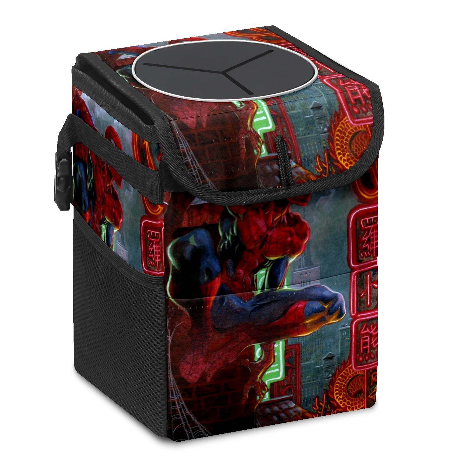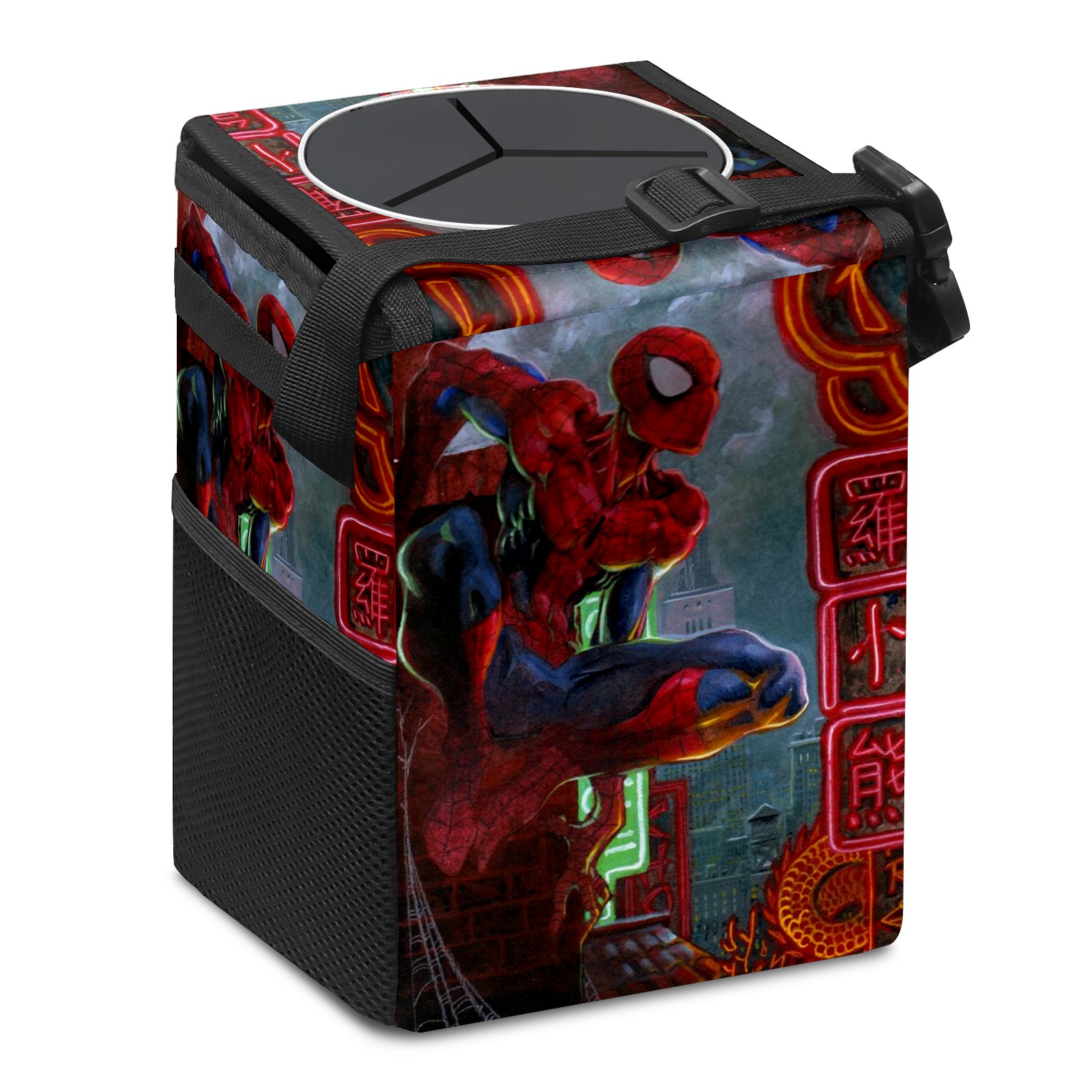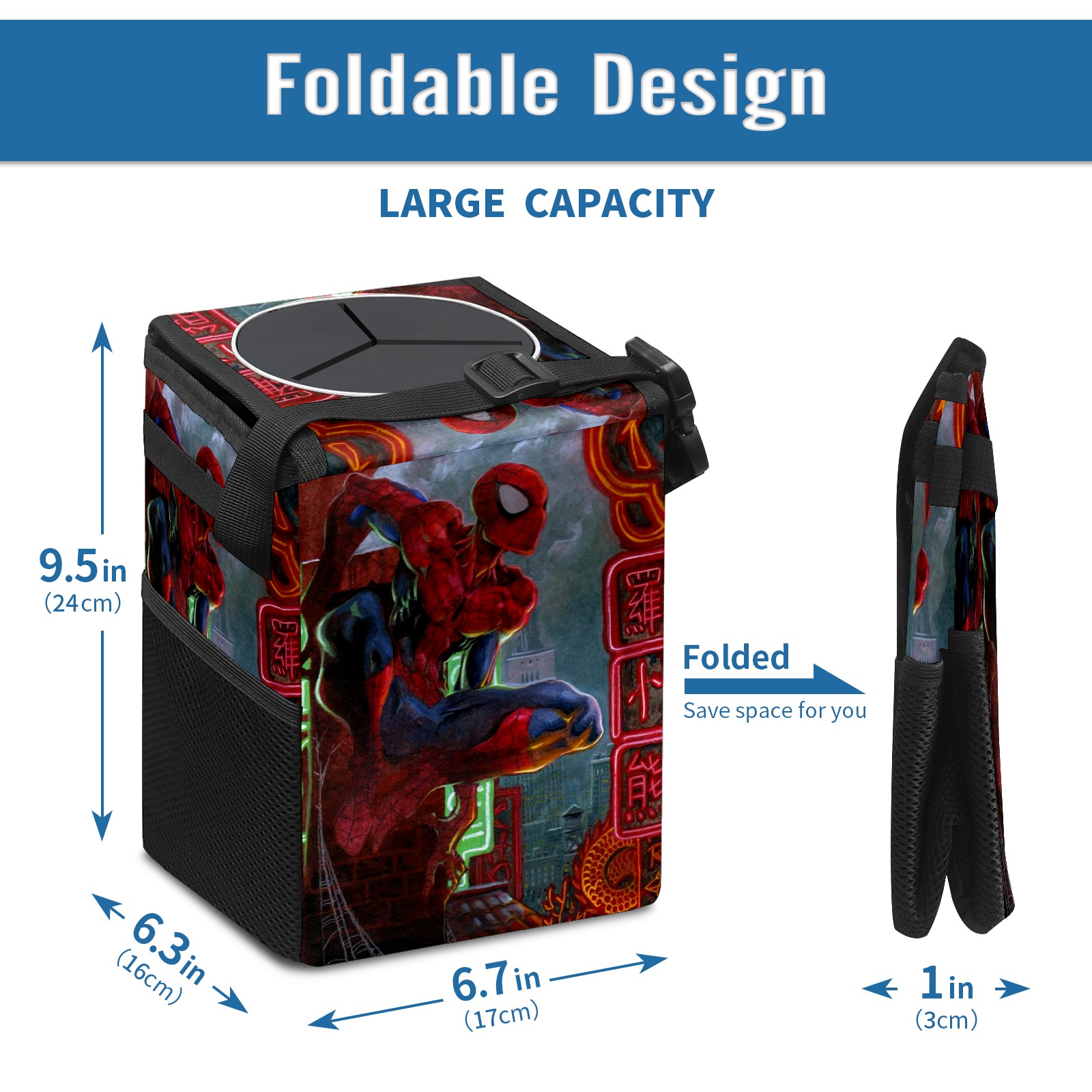 Car Trash Can with Lid, Small Portable Hanging Automotive Garbage Bin for Vehicles, Leakproof Waste Bag Container for SUV Truck Van Interior Auto Travel Road Trips(漫威 (1167))