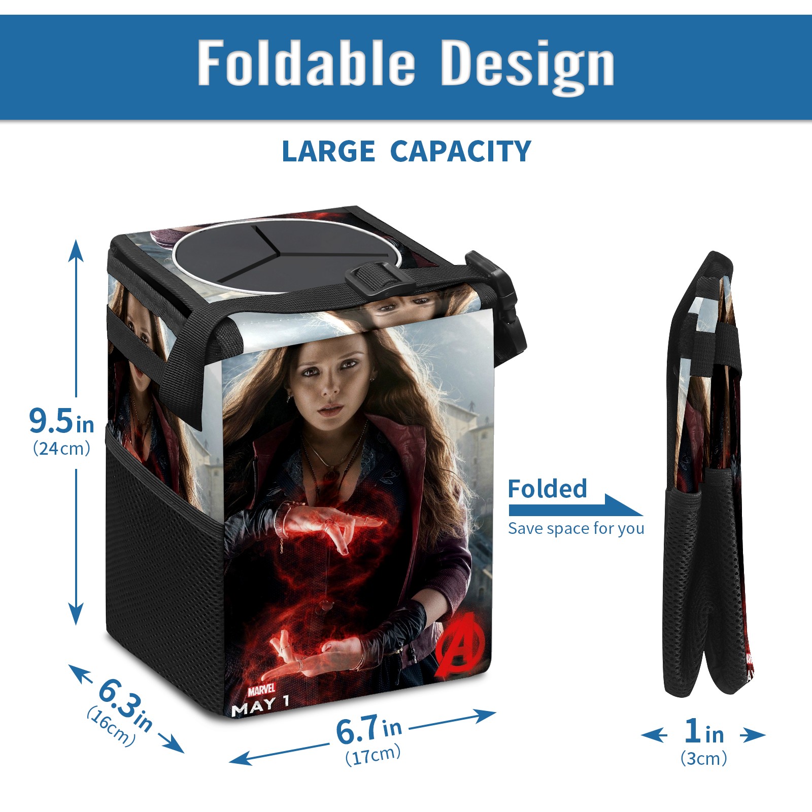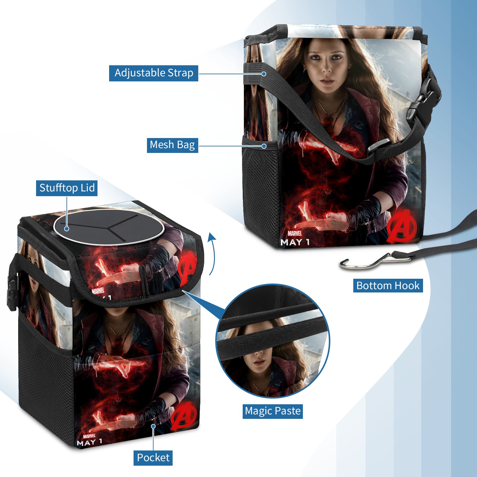 Car Trash Can with Lid, Small Portable Hanging Automotive Garbage Bin for Vehicles, Leakproof Waste Bag Container for SUV Truck Van Interior Auto Travel Road Trips(漫威 (1145))