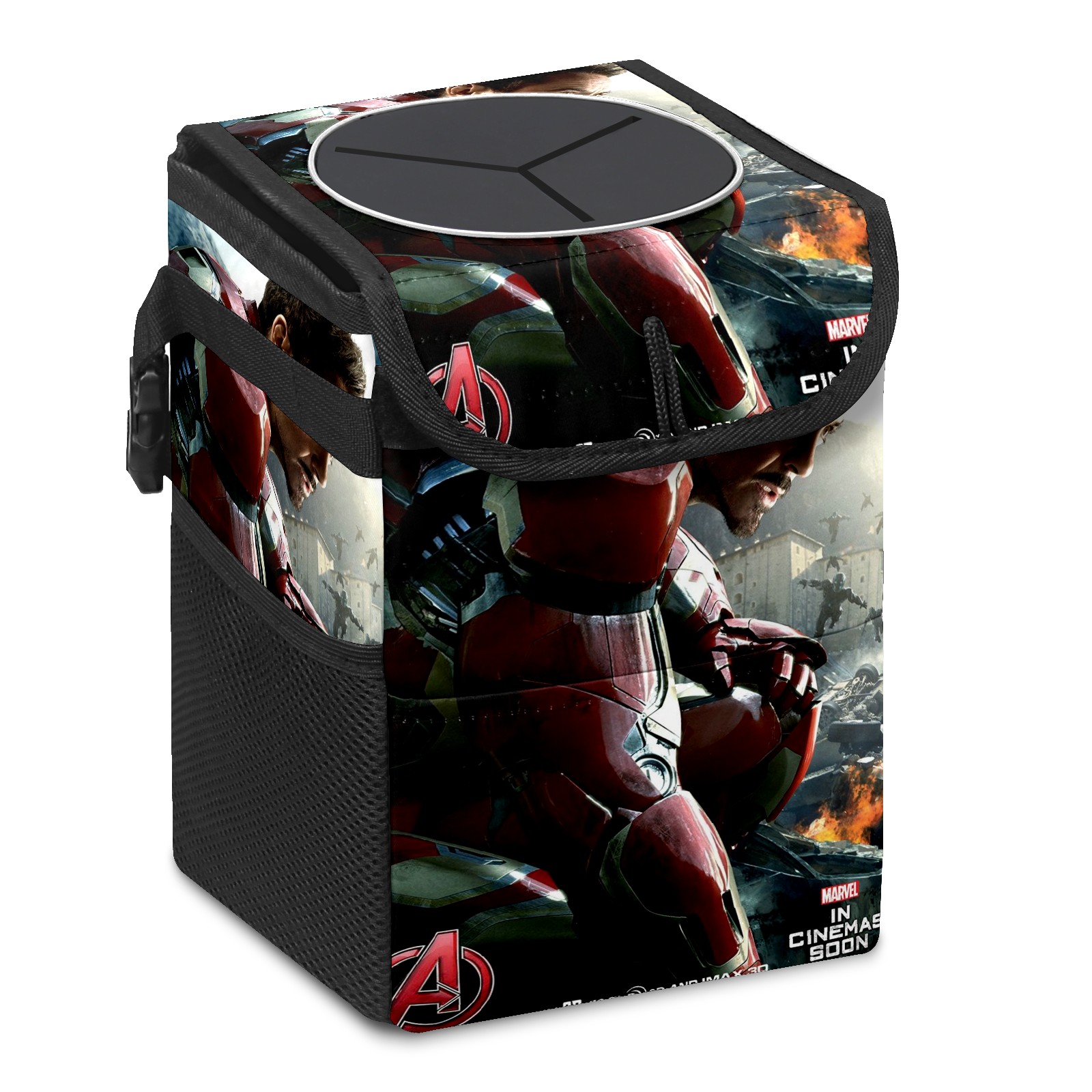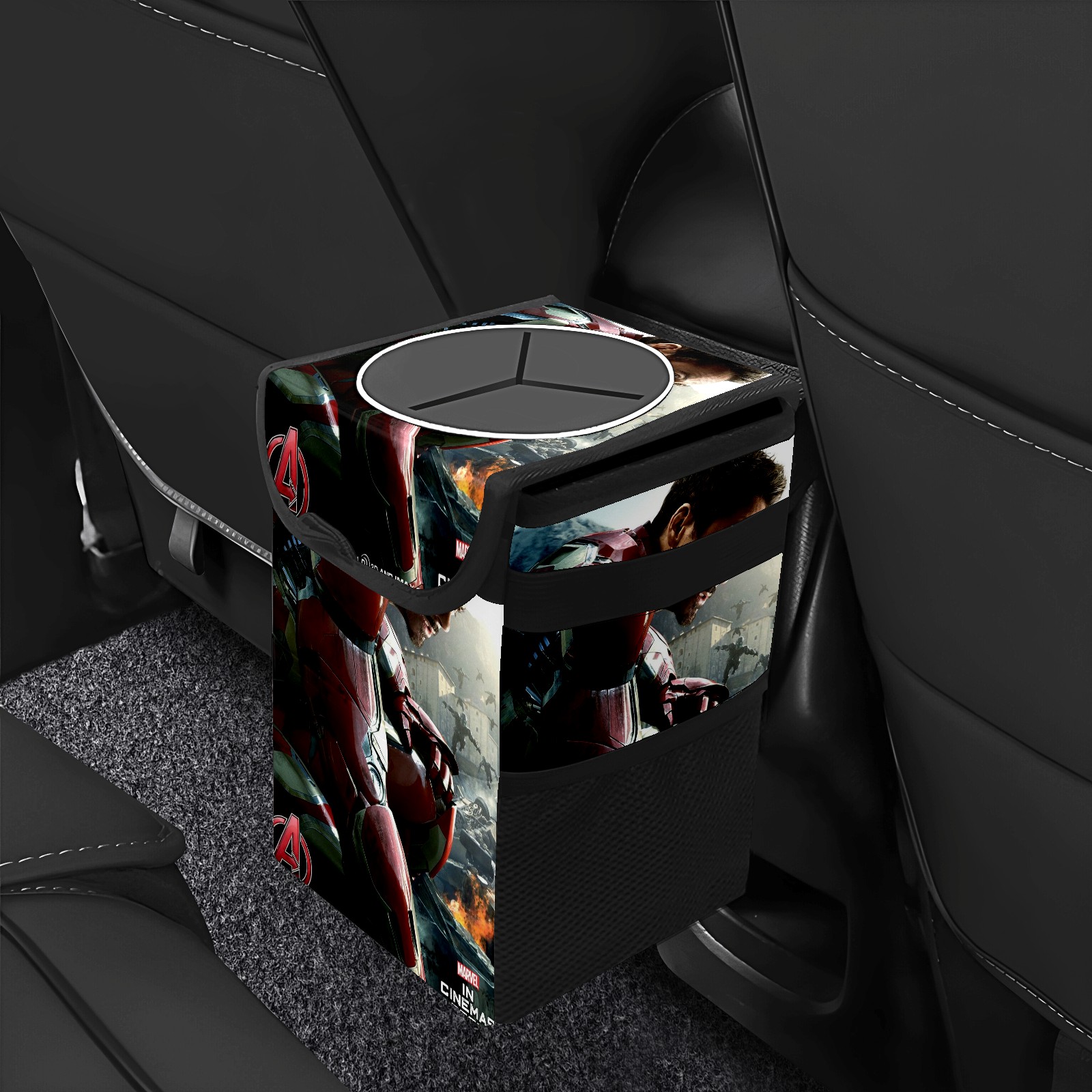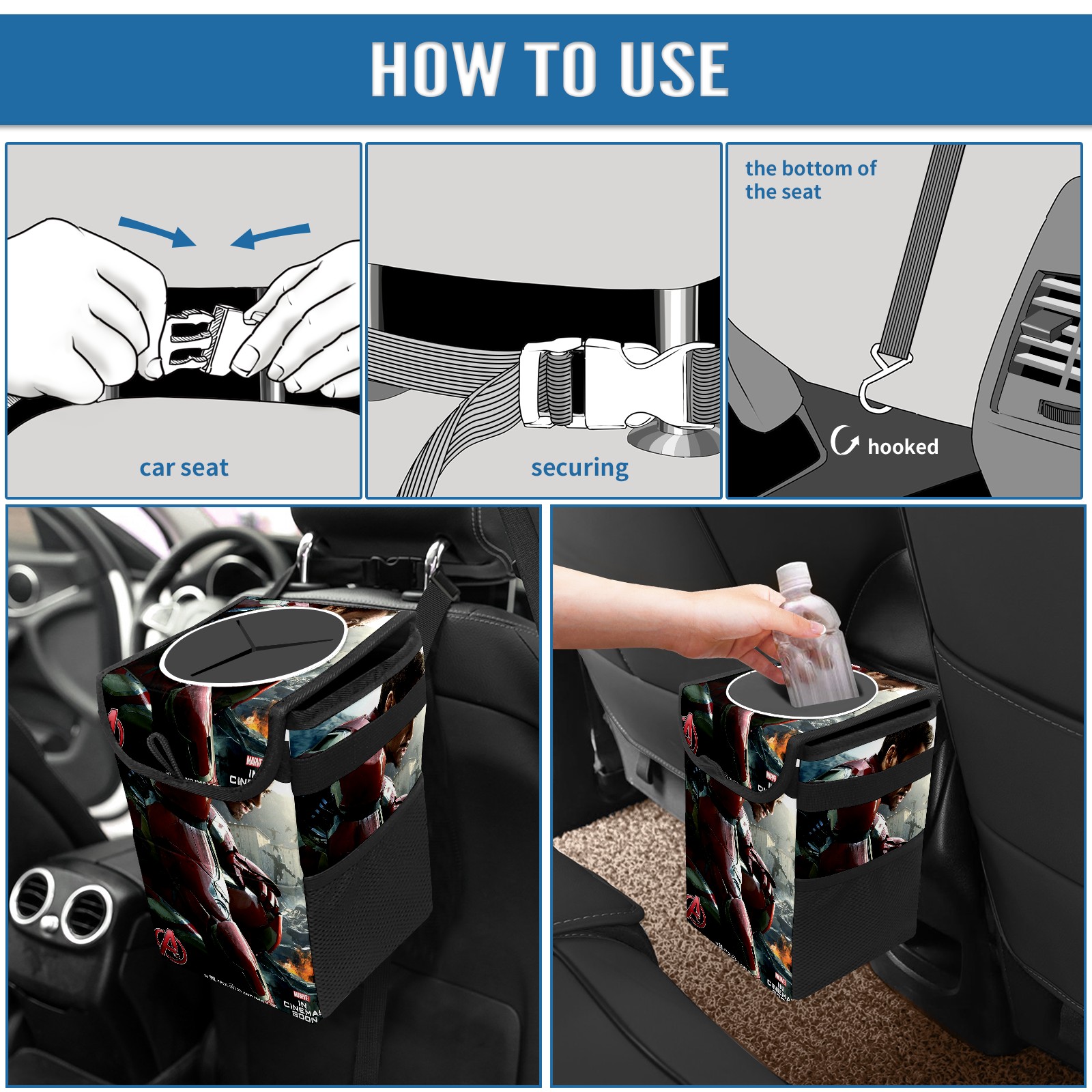 Car Trash Can with Lid, Small Portable Hanging Automotive Garbage Bin for Vehicles, Leakproof Waste Bag Container for SUV Truck Van Interior Auto Travel Road Trips(漫威 (1144))