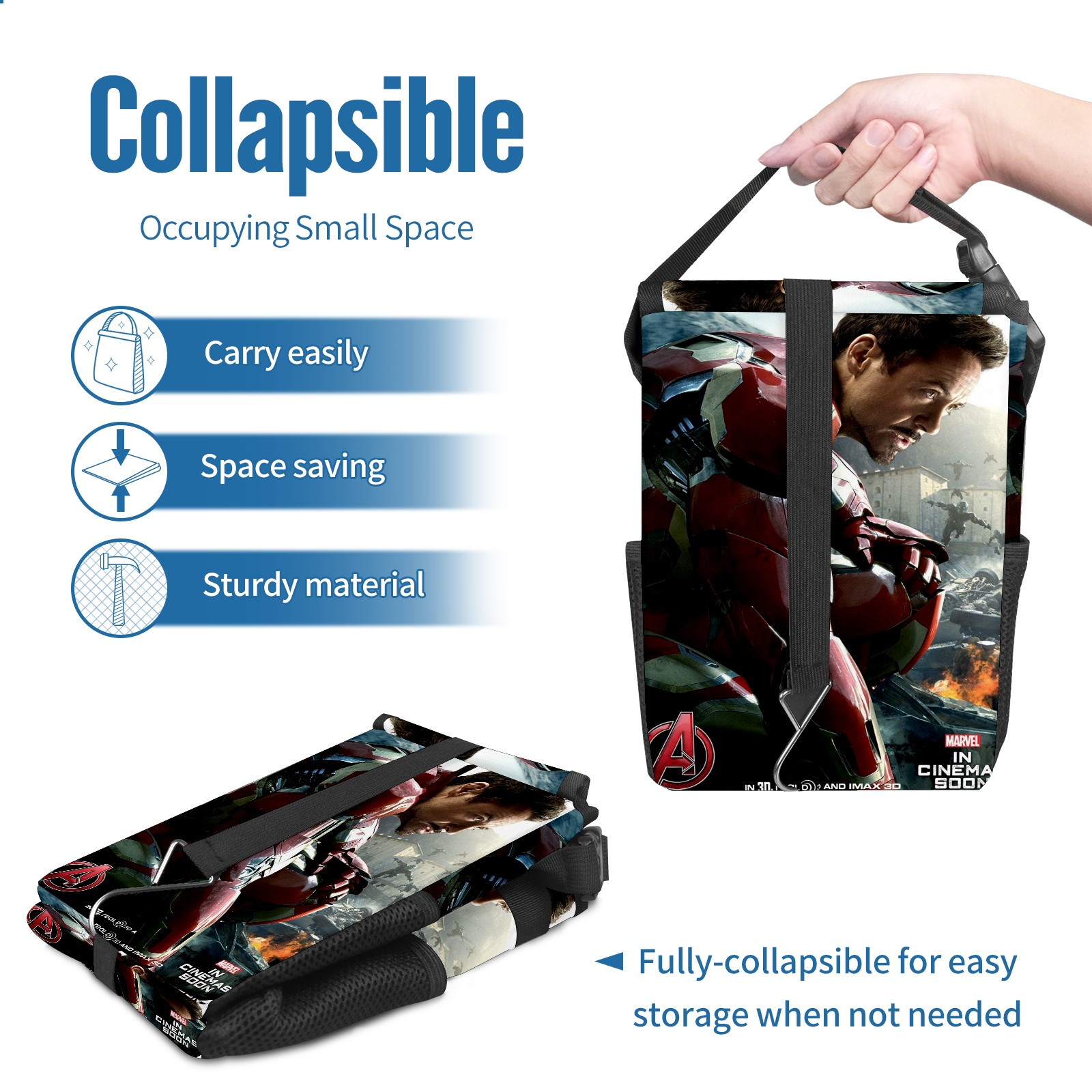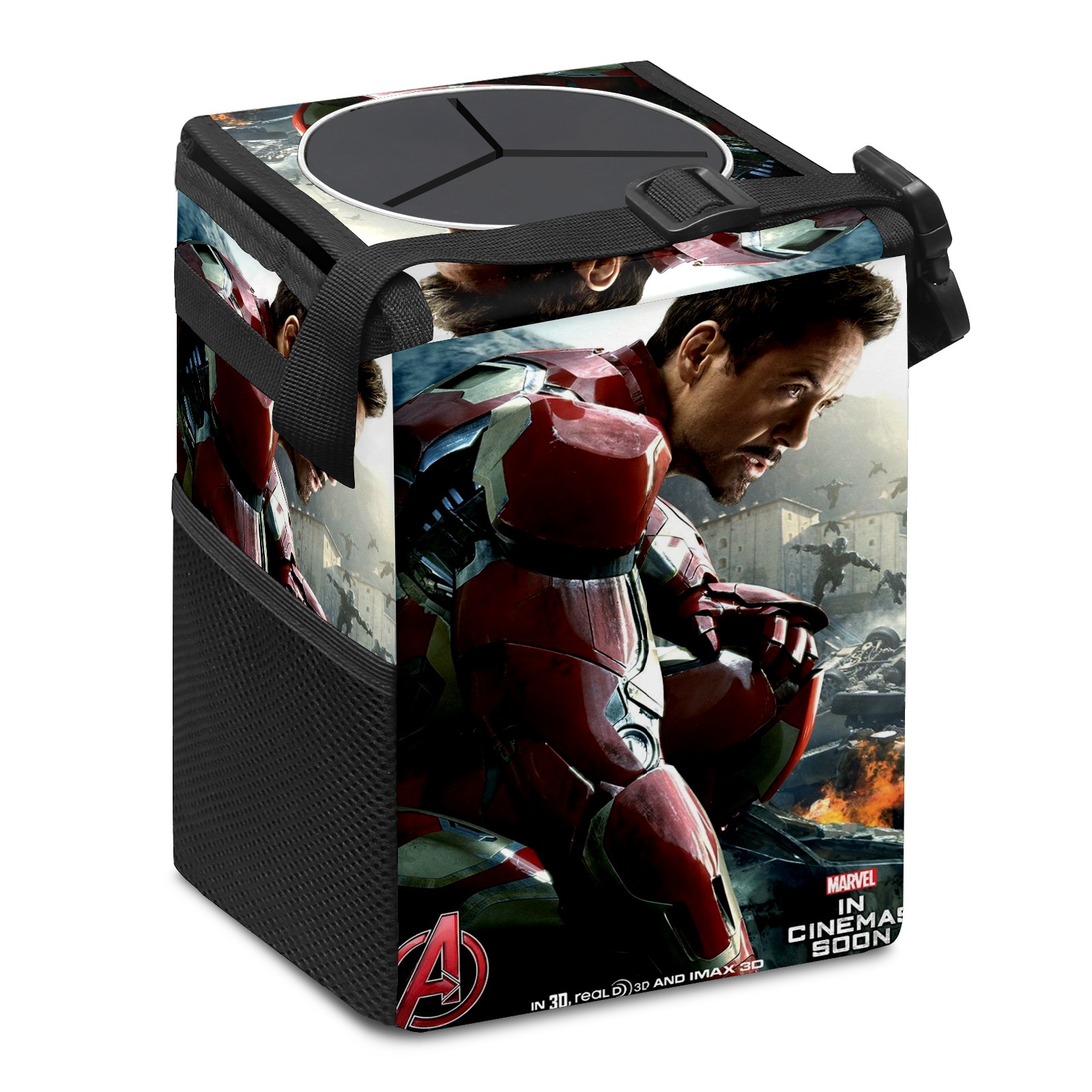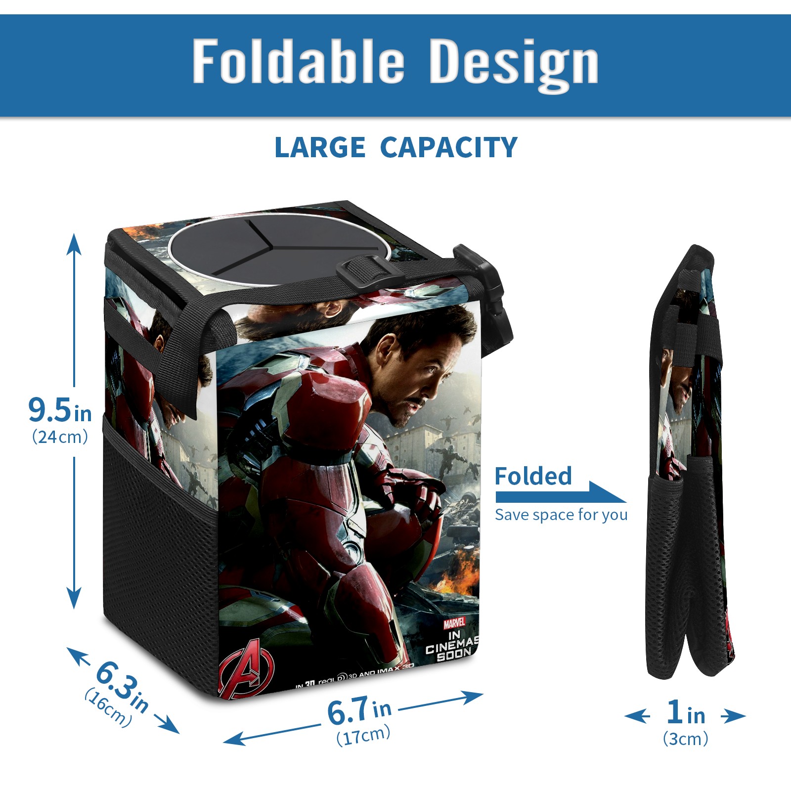 Car Trash Can with Lid, Small Portable Hanging Automotive Garbage Bin for Vehicles, Leakproof Waste Bag Container for SUV Truck Van Interior Auto Travel Road Trips(漫威 (1144))