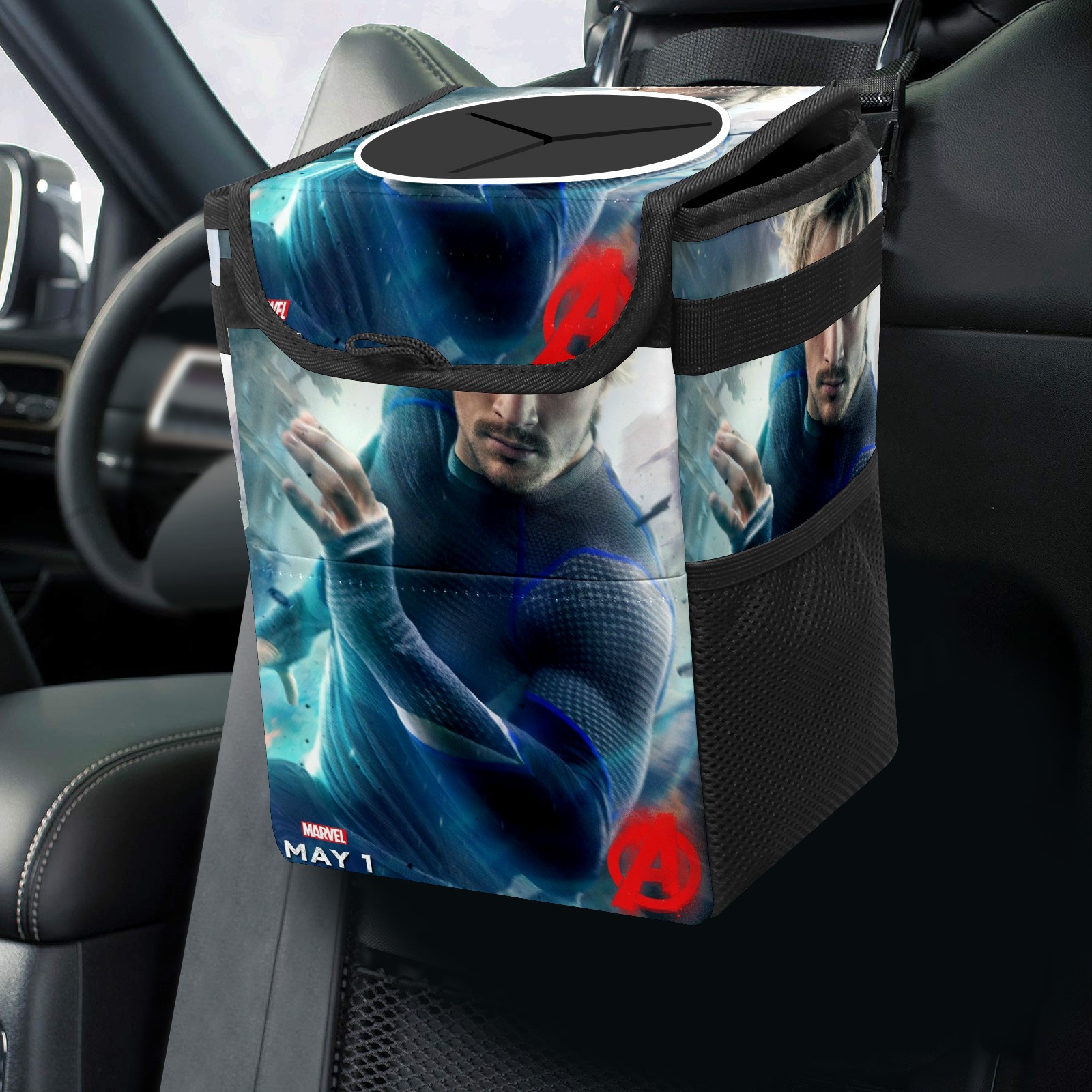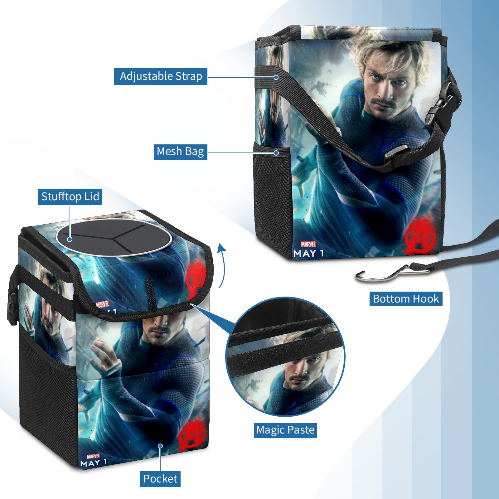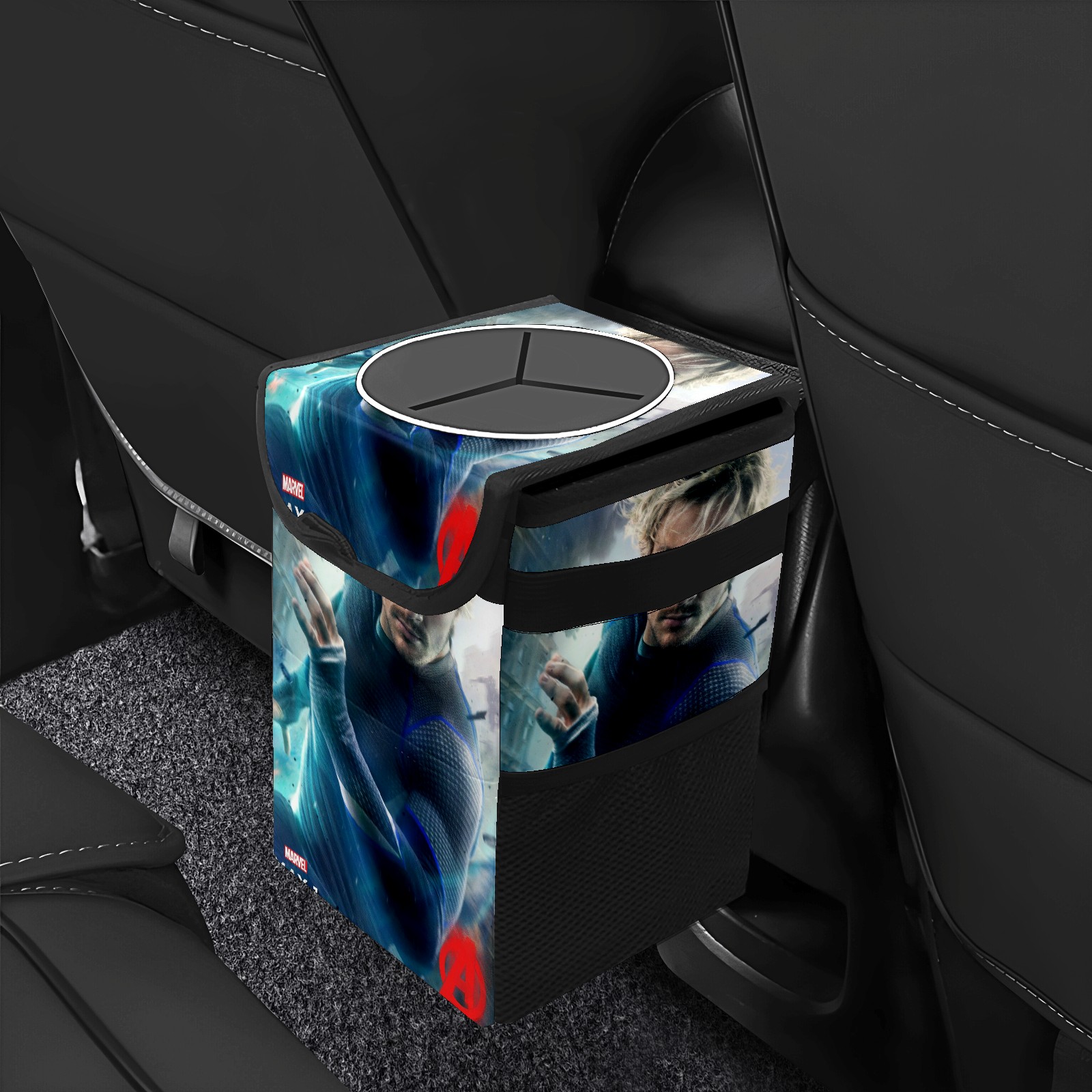 Car Trash Can with Lid, Small Portable Hanging Automotive Garbage Bin for Vehicles, Leakproof Waste Bag Container for SUV Truck Van Interior Auto Travel Road Trips(漫威 (1138))