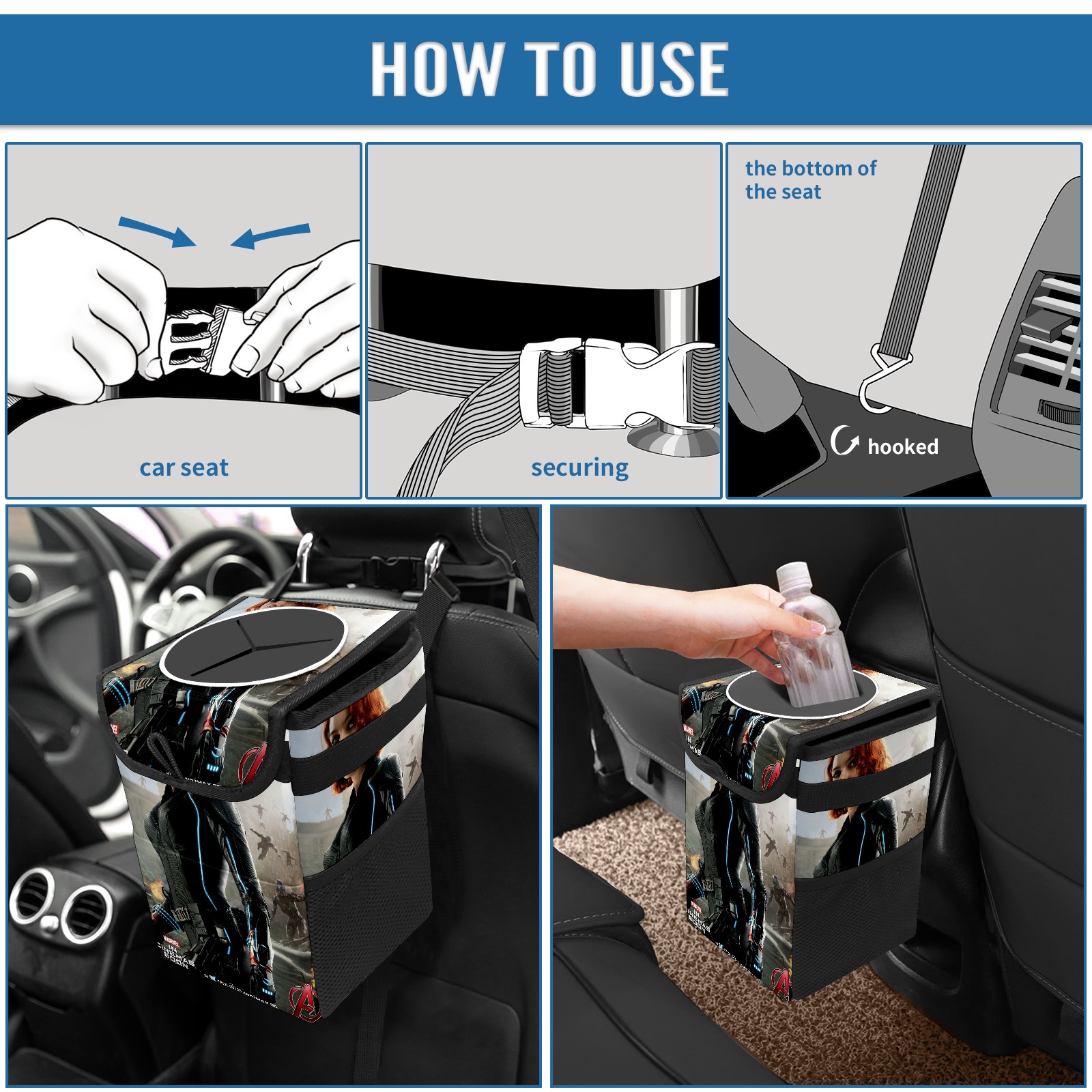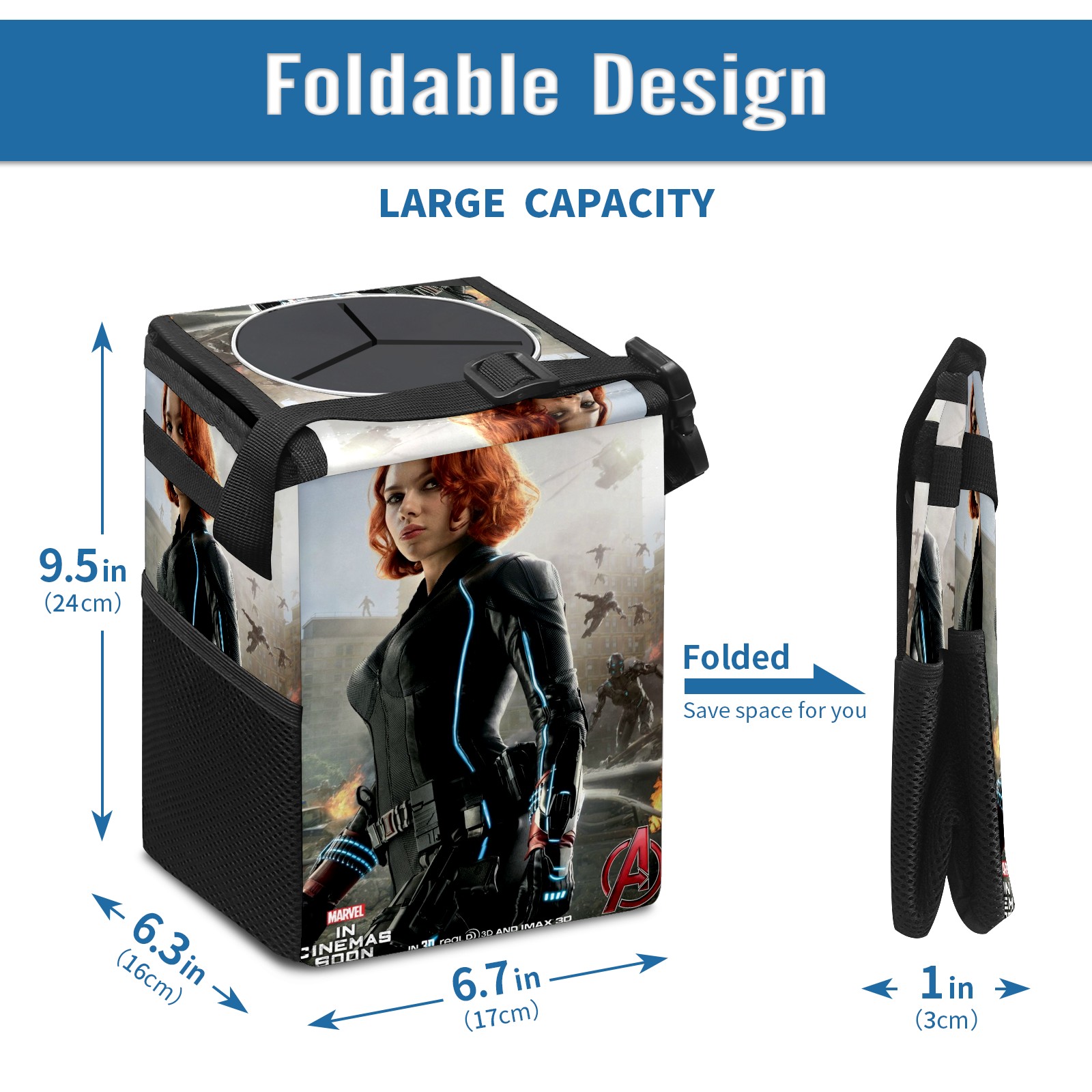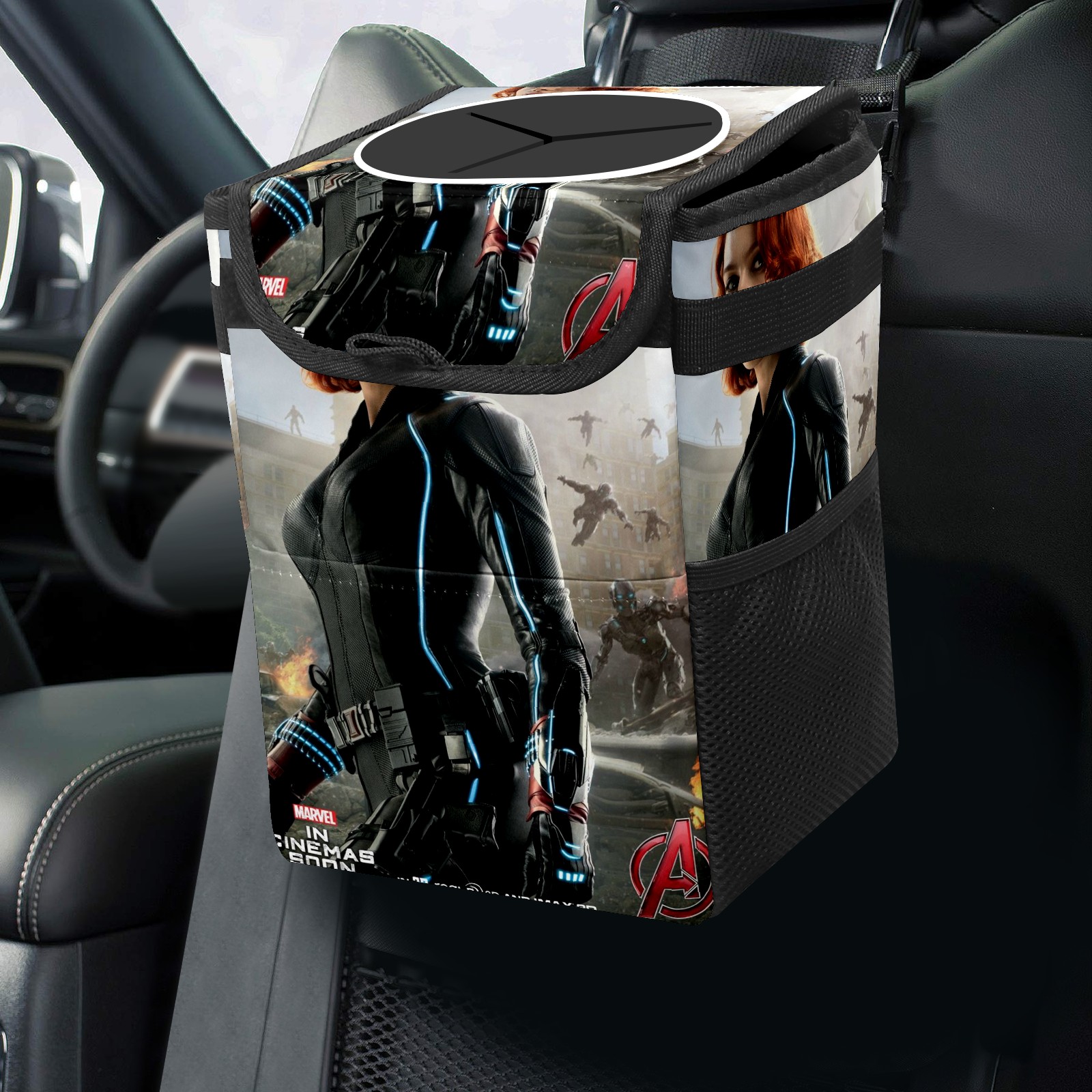 Car Trash Can with Lid, Small Portable Hanging Automotive Garbage Bin for Vehicles, Leakproof Waste Bag Container for SUV Truck Van Interior Auto Travel Road Trips(漫威 (1139))