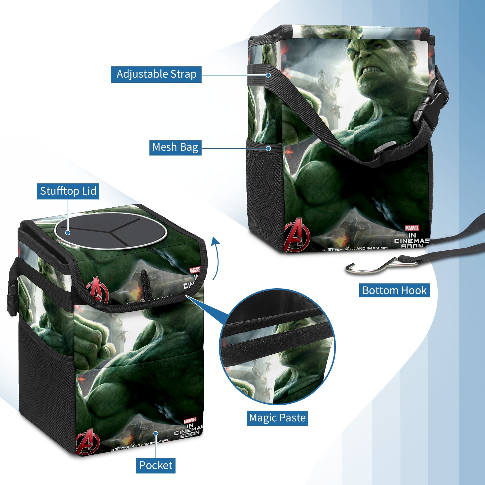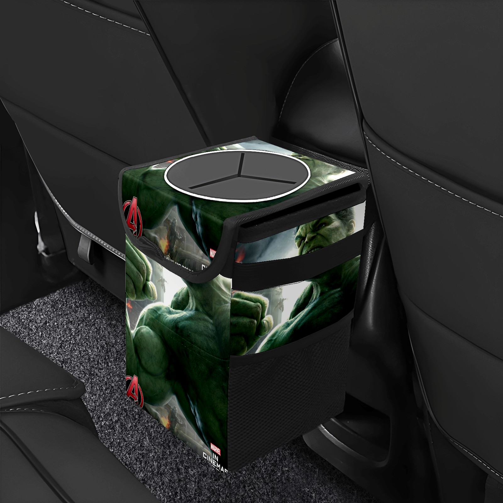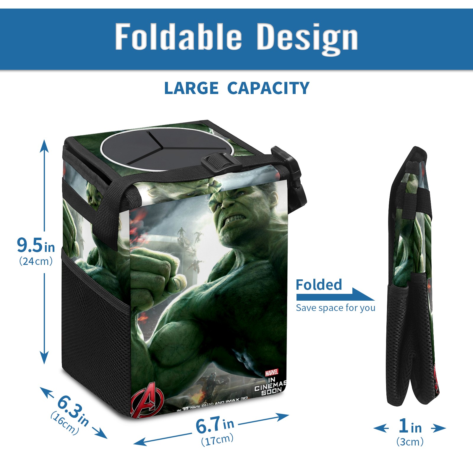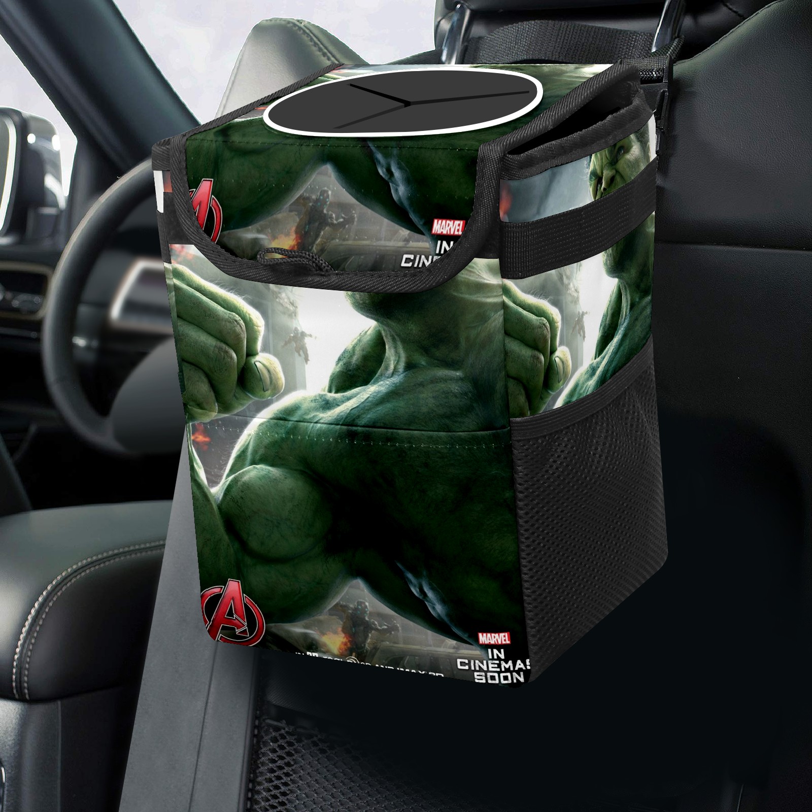 Car Trash Can with Lid, Small Portable Hanging Automotive Garbage Bin for Vehicles, Leakproof Waste Bag Container for SUV Truck Van Interior Auto Travel Road Trips(漫威 (1137))