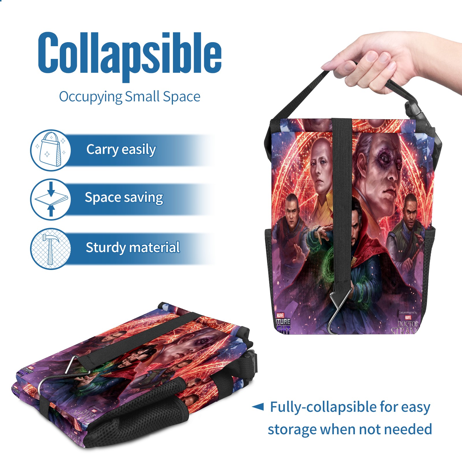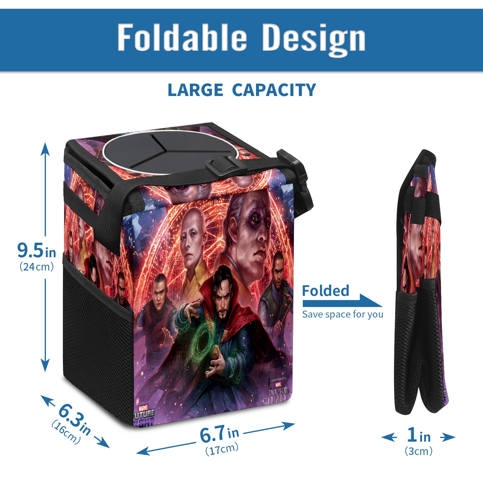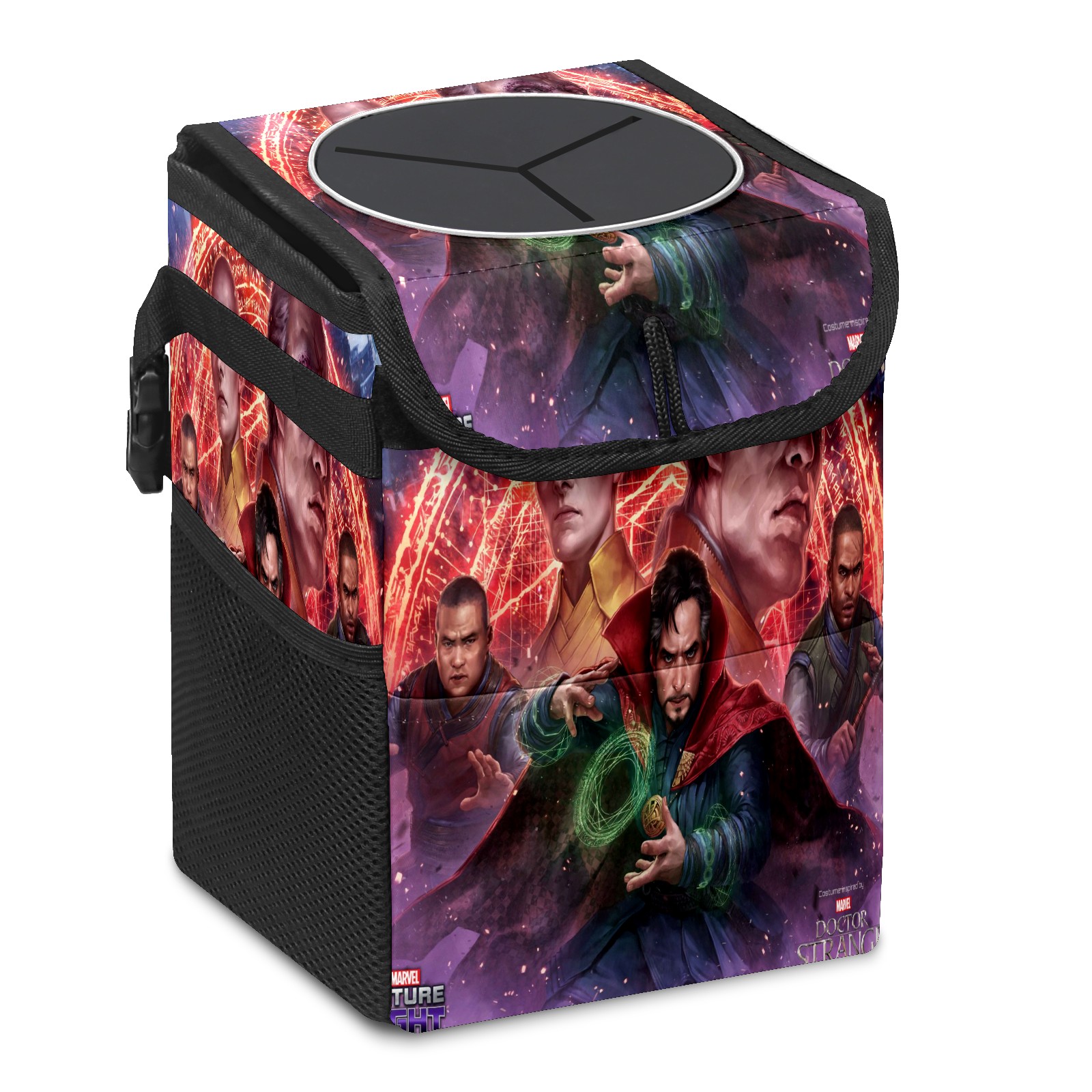 Car Trash Can with Lid, Small Portable Hanging Automotive Garbage Bin for Vehicles, Leakproof Waste Bag Container for SUV Truck Van Interior Auto Travel Road Trips(漫威 (1101))