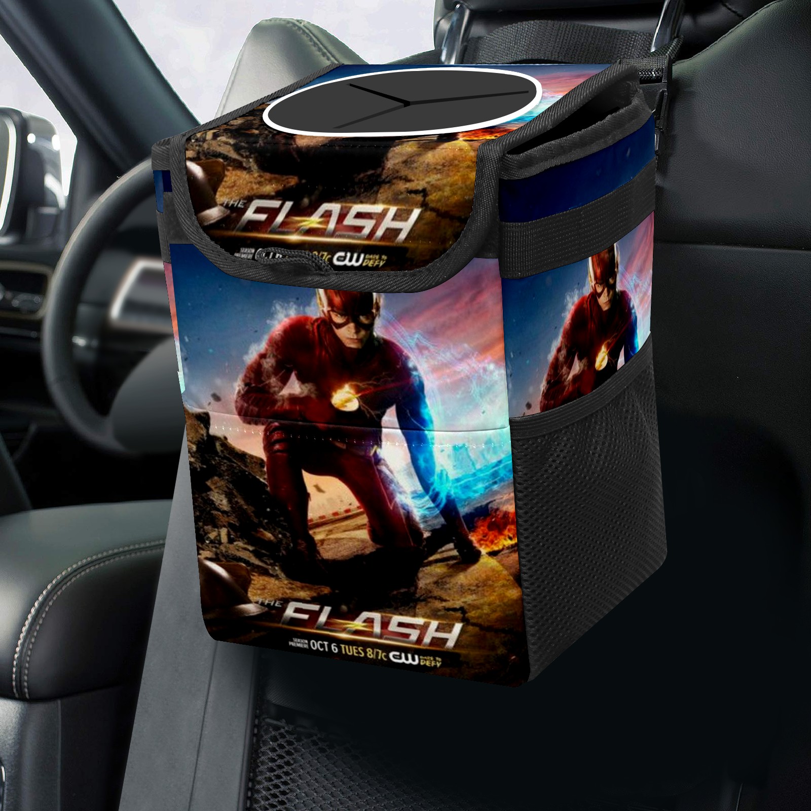 Car Trash Can with Lid, Small Portable Hanging Automotive Garbage Bin for Vehicles, Leakproof Waste Bag Container for SUV Truck Van Interior Auto Travel Road Trips(漫威 (1110))