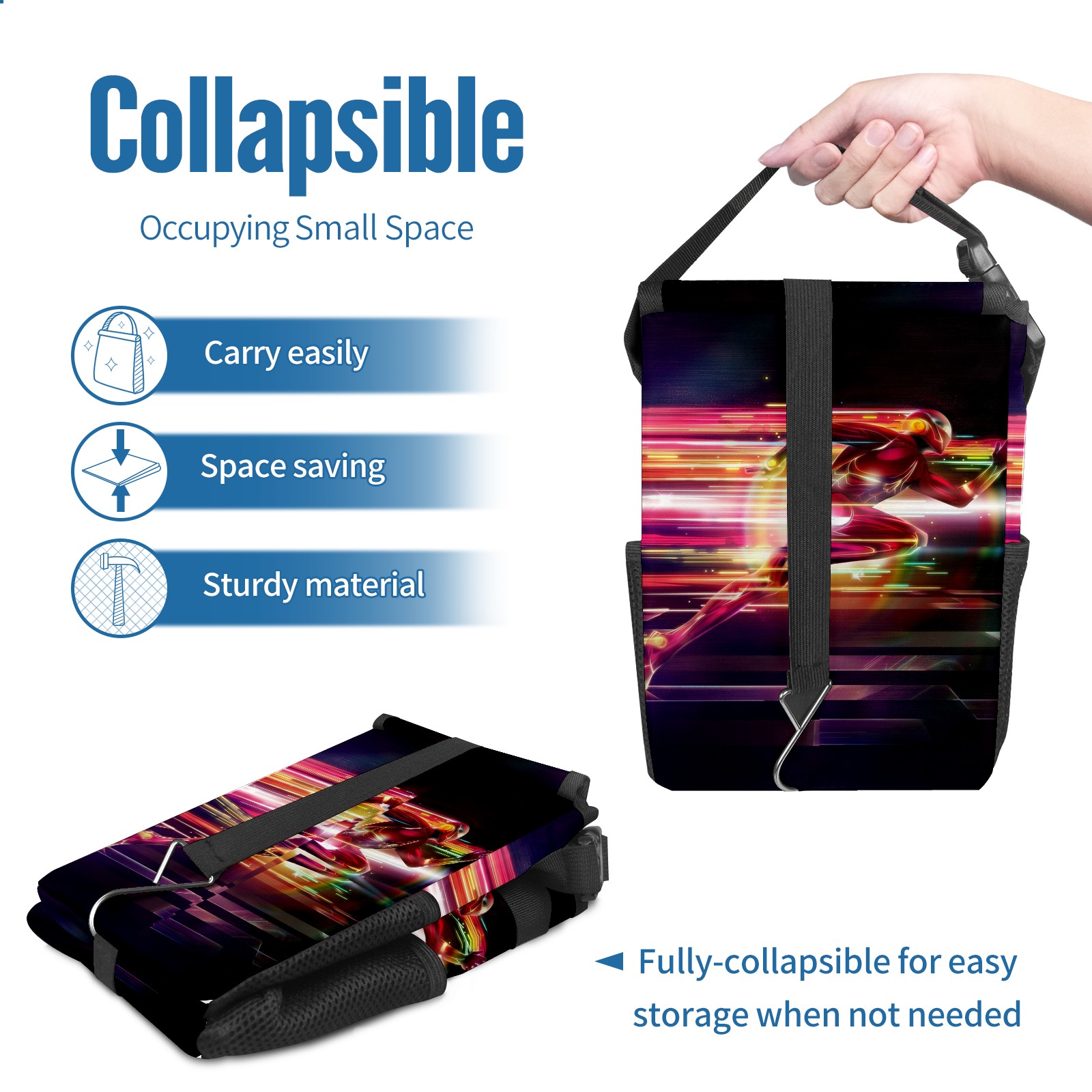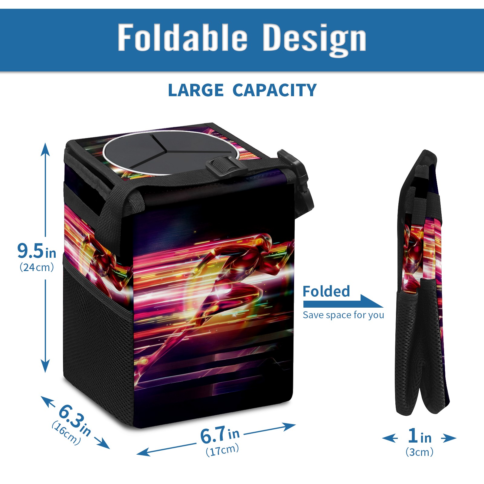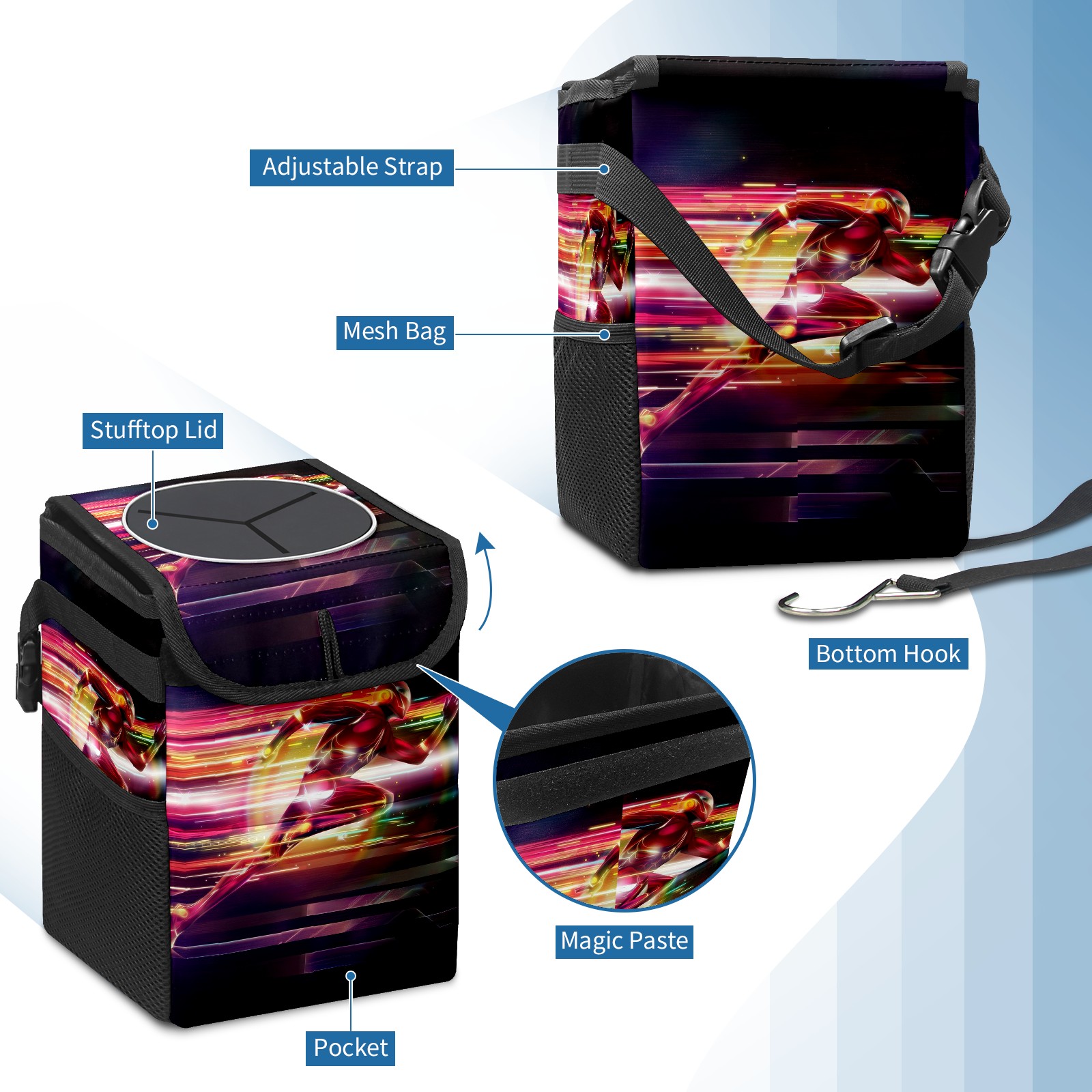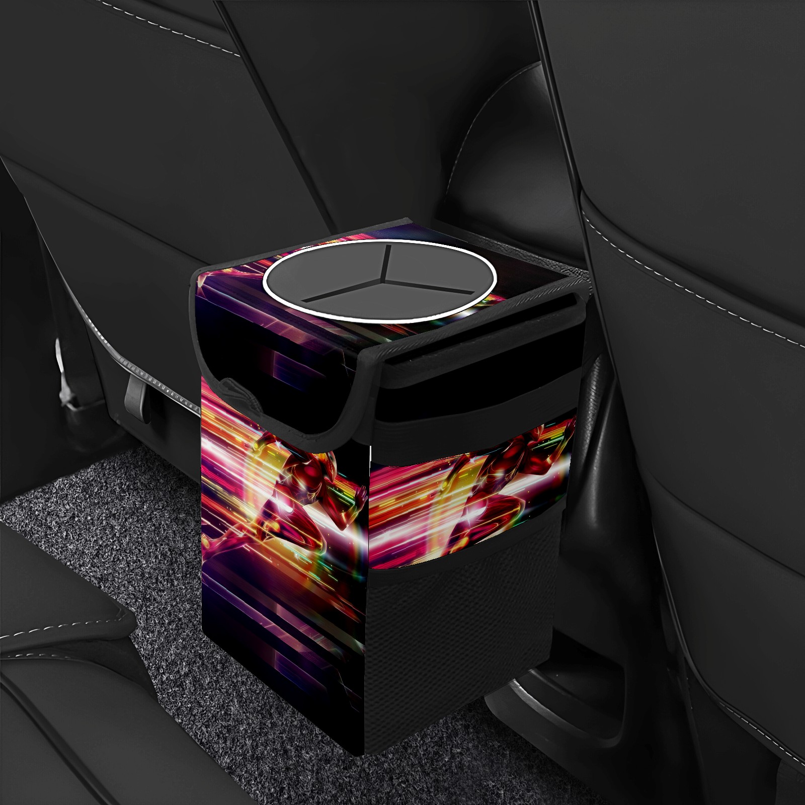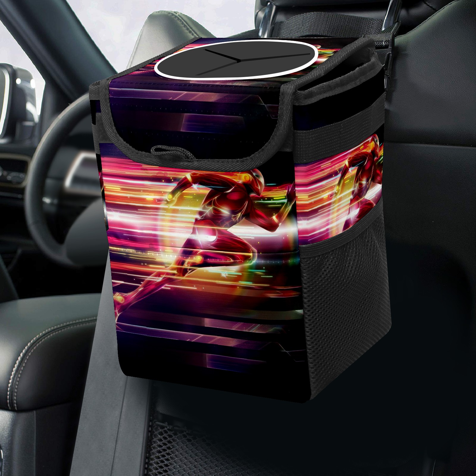 Car Trash Can with Lid, Small Portable Hanging Automotive Garbage Bin for Vehicles, Leakproof Waste Bag Container for SUV Truck Van Interior Auto Travel Road Trips(漫威 (1098))