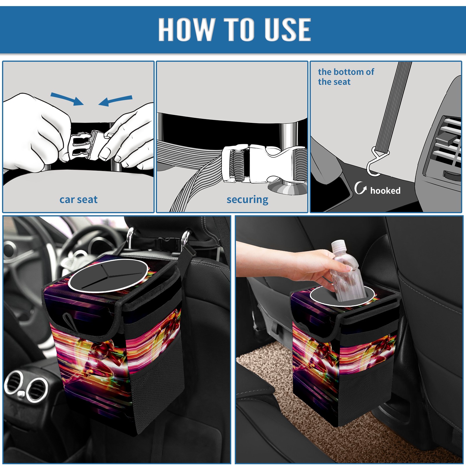 <p><b>Keep Your Car Clean &amp; Organized</b></p> <p>Tired of car clutter? Our durable car trash can is the perfect solution. This compact, leak-proof bin fits perfectly in cup holders, door pockets, or between seats.</p> <p>Ideal for commutes, road trips, and school runs, it’s a must-have car accessory. Use it as a hanging trash bag or a sturdy garbage bin for your SUV, truck, or back seat.</p> <p>Made from tough, easy-clean material, this portable trash container keeps your vehicle spotless. Get your essential car organizer today and enjoy a cleaner ride!</p>