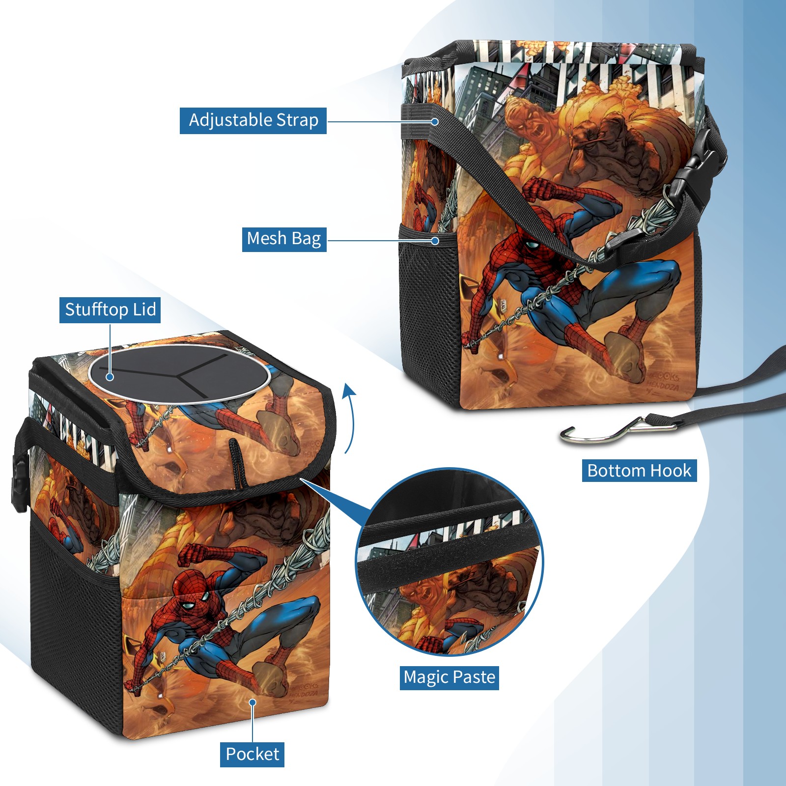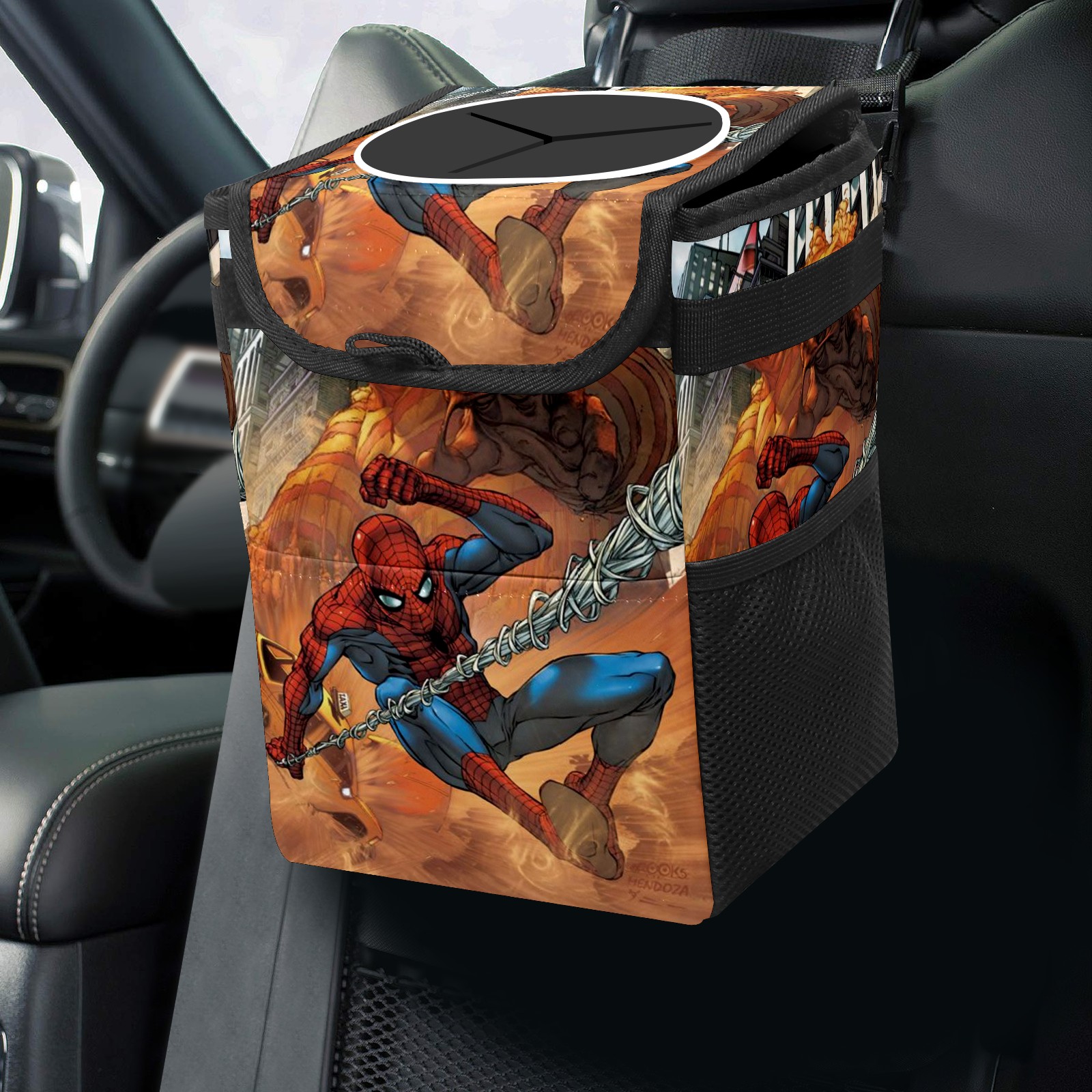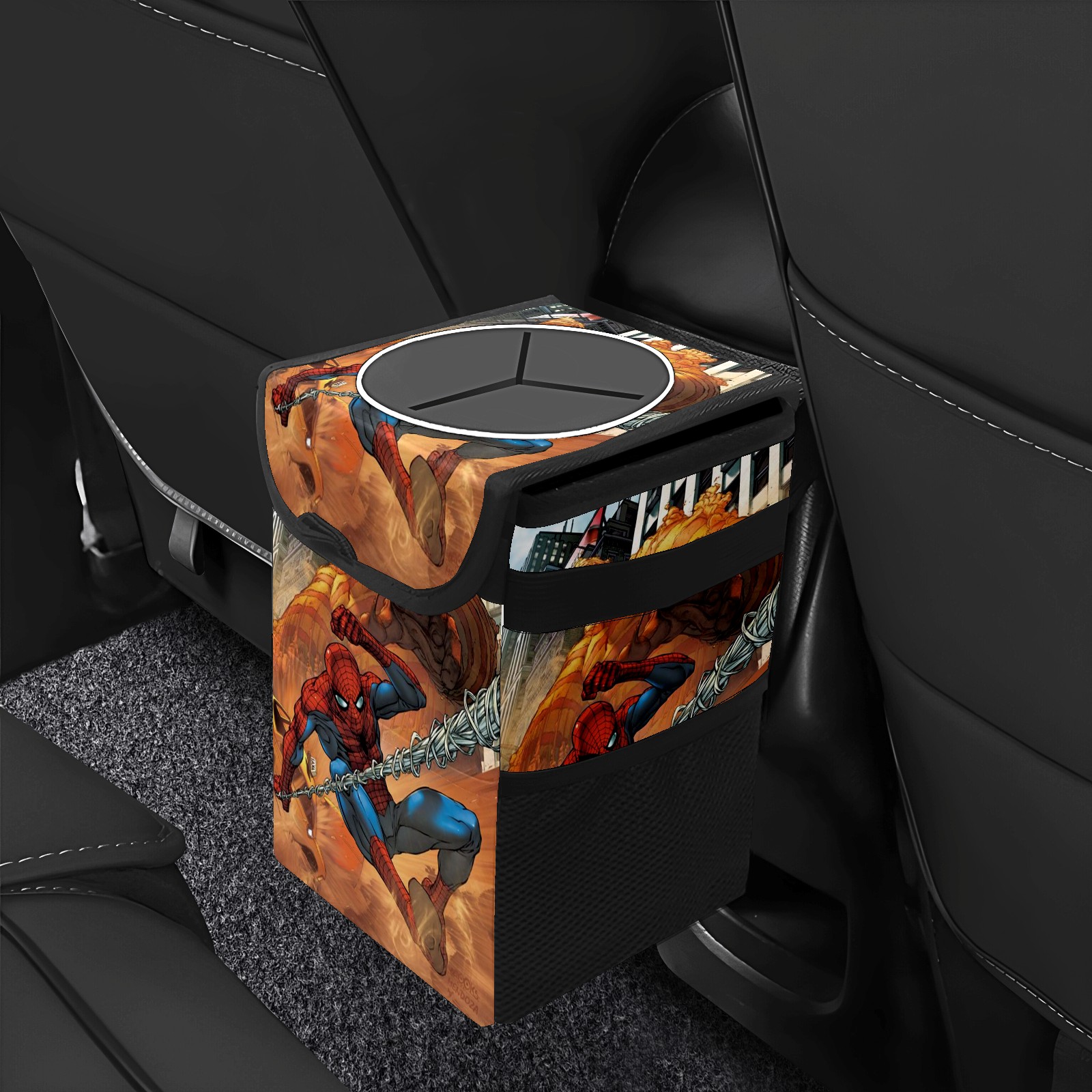 Car Trash Can with Lid, Small Portable Hanging Automotive Garbage Bin for Vehicles, Leakproof Waste Bag Container for SUV Truck Van Interior Auto Travel Road Trips(漫威 (1097))