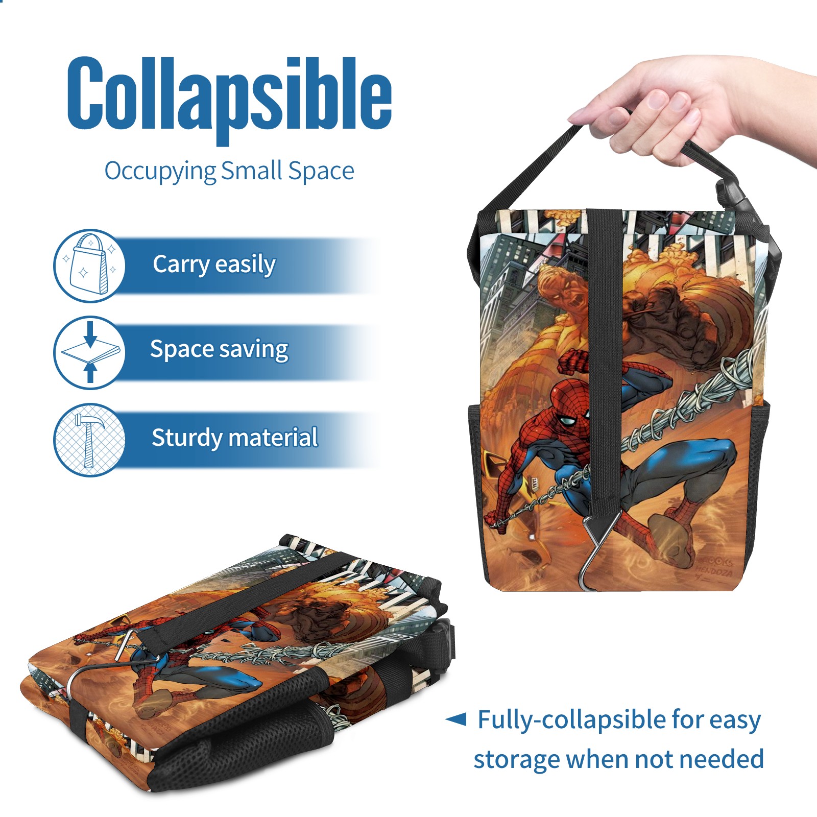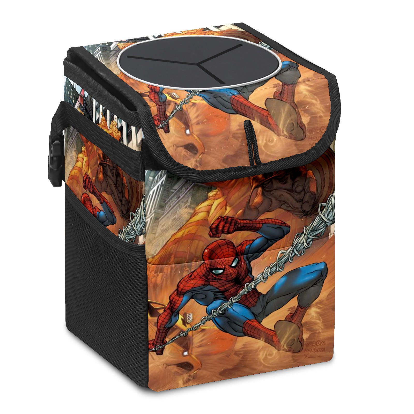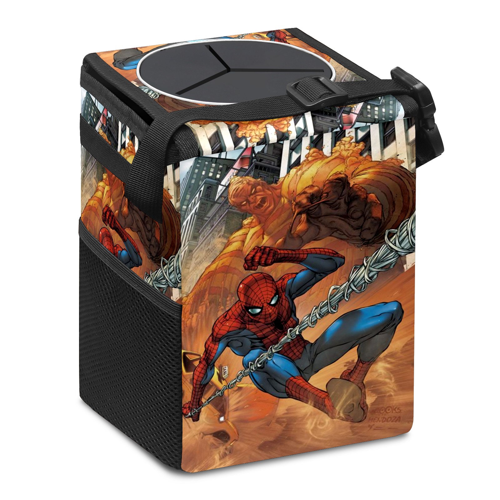 Car Trash Can with Lid, Small Portable Hanging Automotive Garbage Bin for Vehicles, Leakproof Waste Bag Container for SUV Truck Van Interior Auto Travel Road Trips(漫威 (1097))