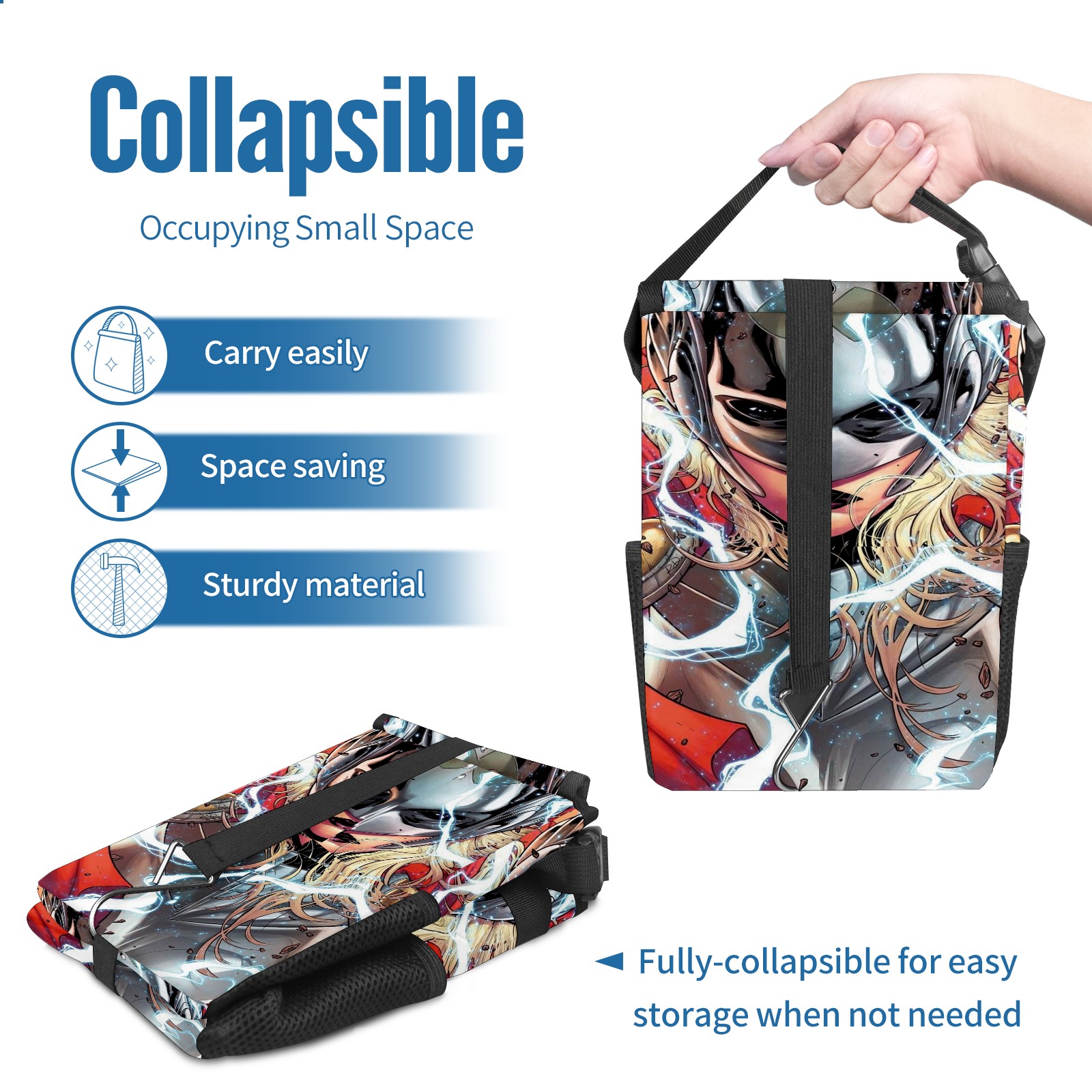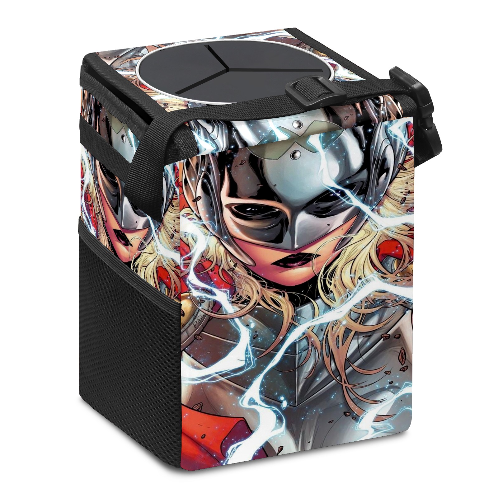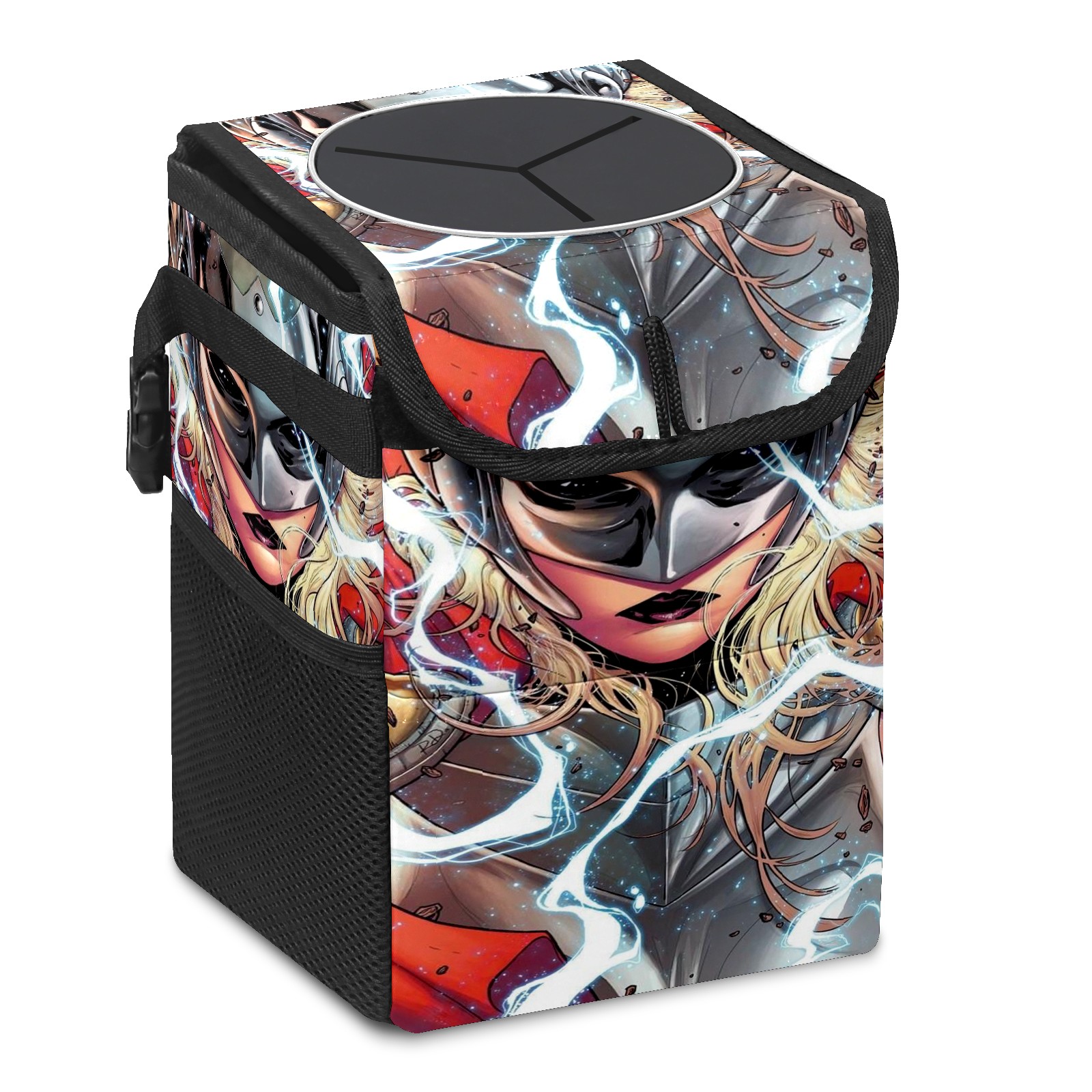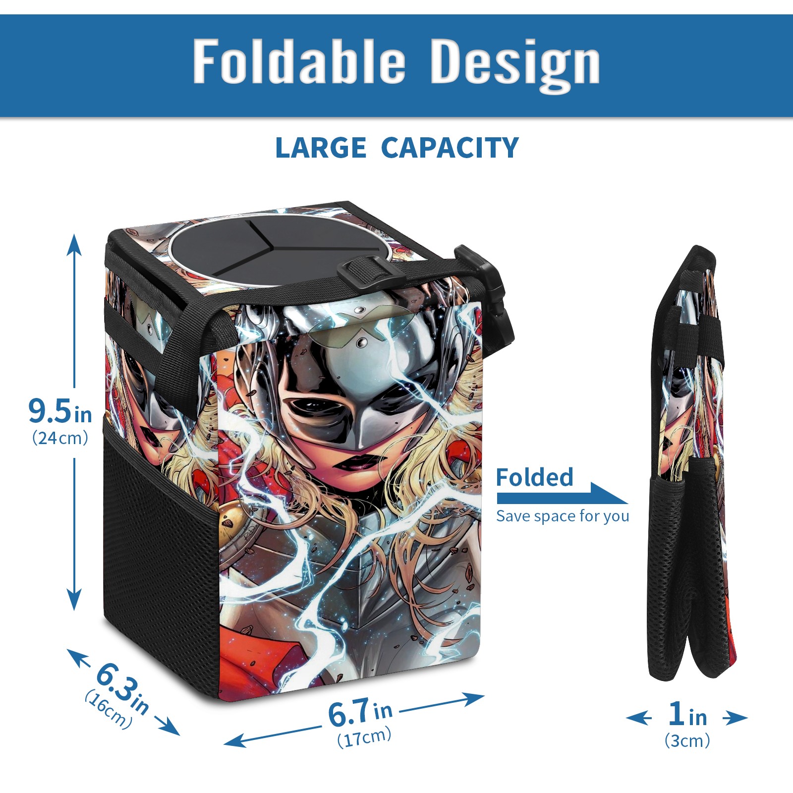 Car Trash Can with Lid, Small Portable Hanging Automotive Garbage Bin for Vehicles, Leakproof Waste Bag Container for SUV Truck Van Interior Auto Travel Road Trips(漫威 (1093))