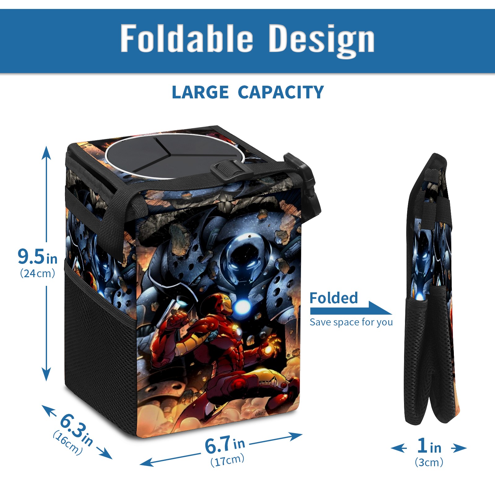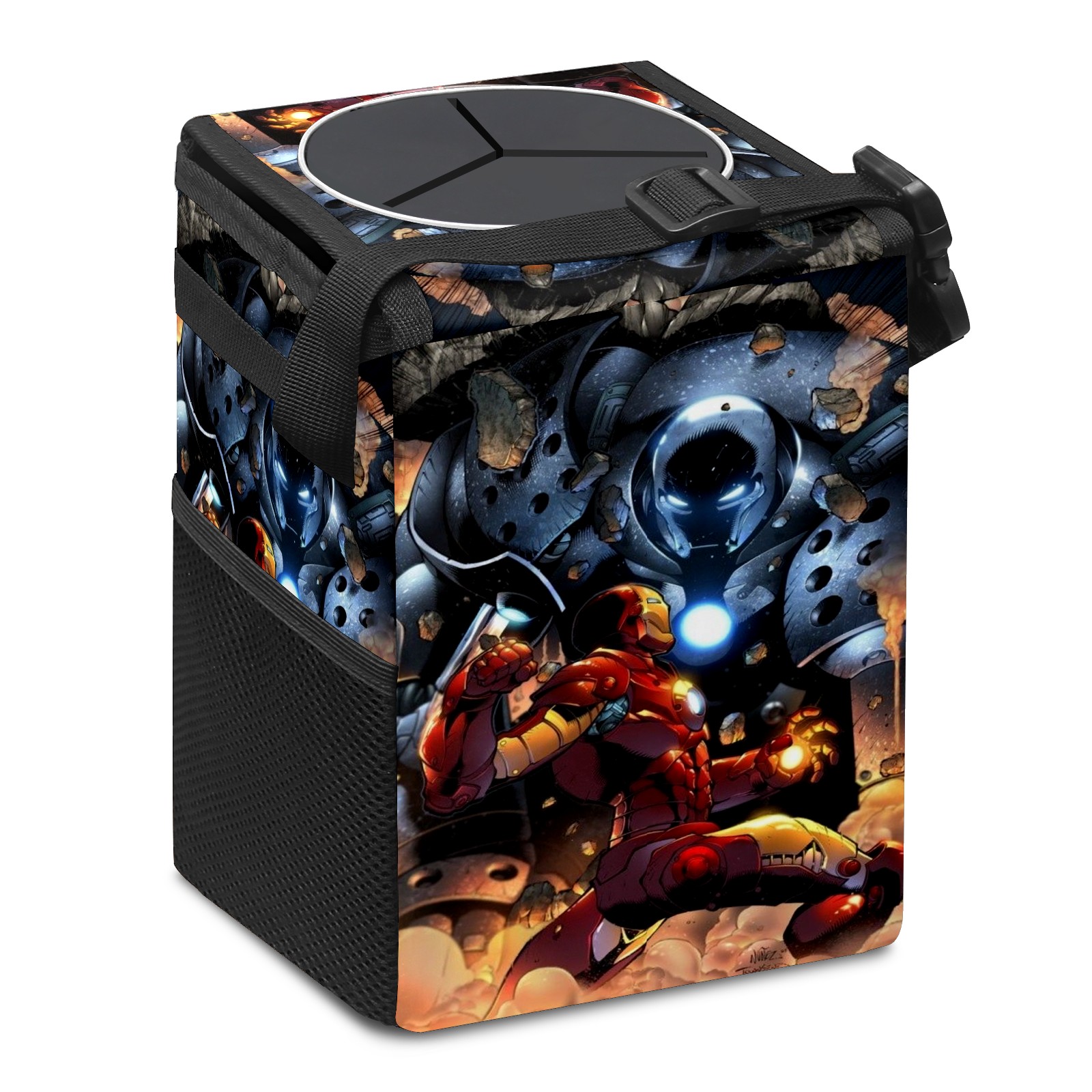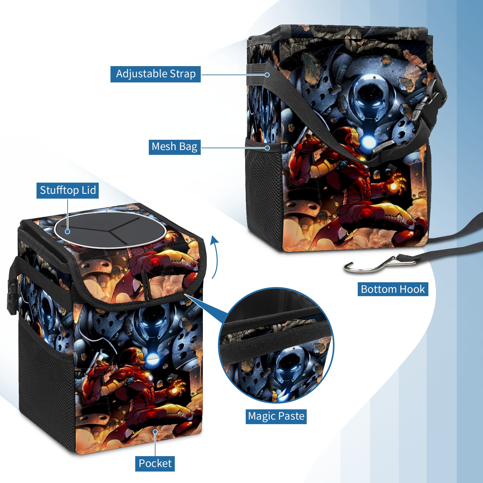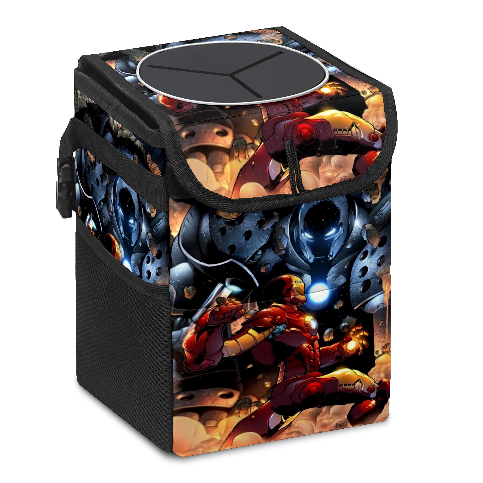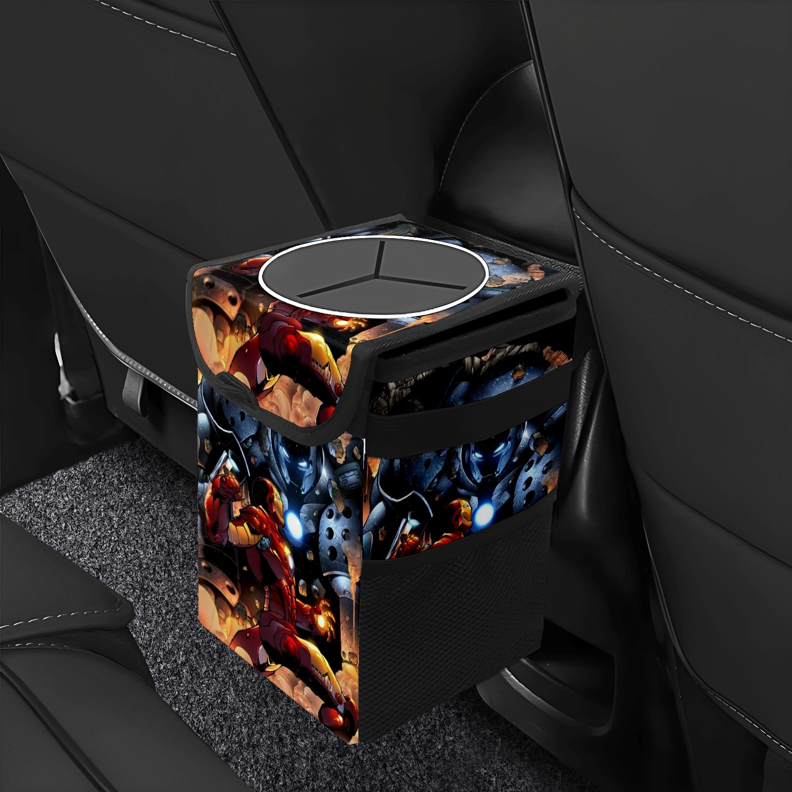 Car Trash Can with Lid, Small Portable Hanging Automotive Garbage Bin for Vehicles, Leakproof Waste Bag Container for SUV Truck Van Interior Auto Travel Road Trips(漫威 (1084))