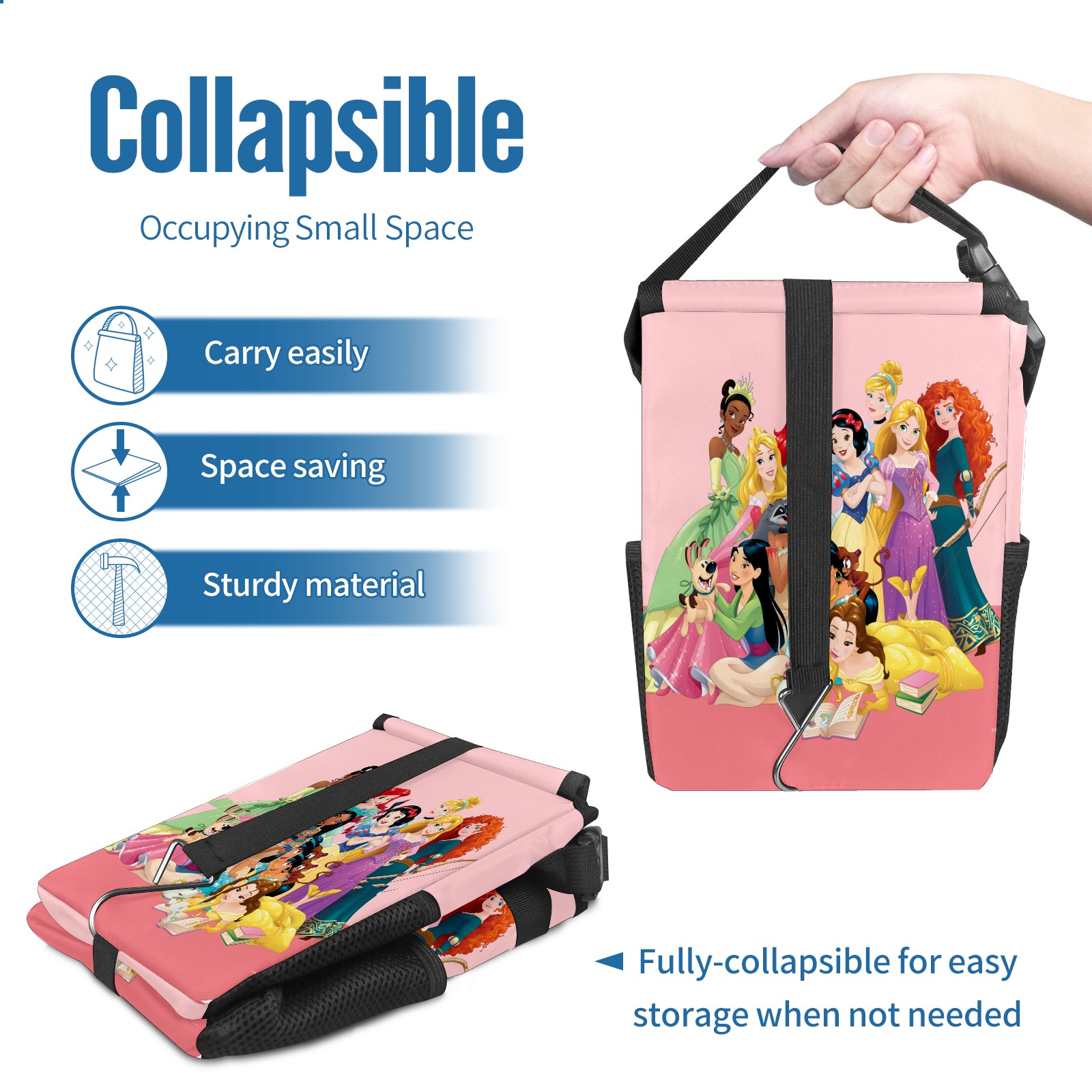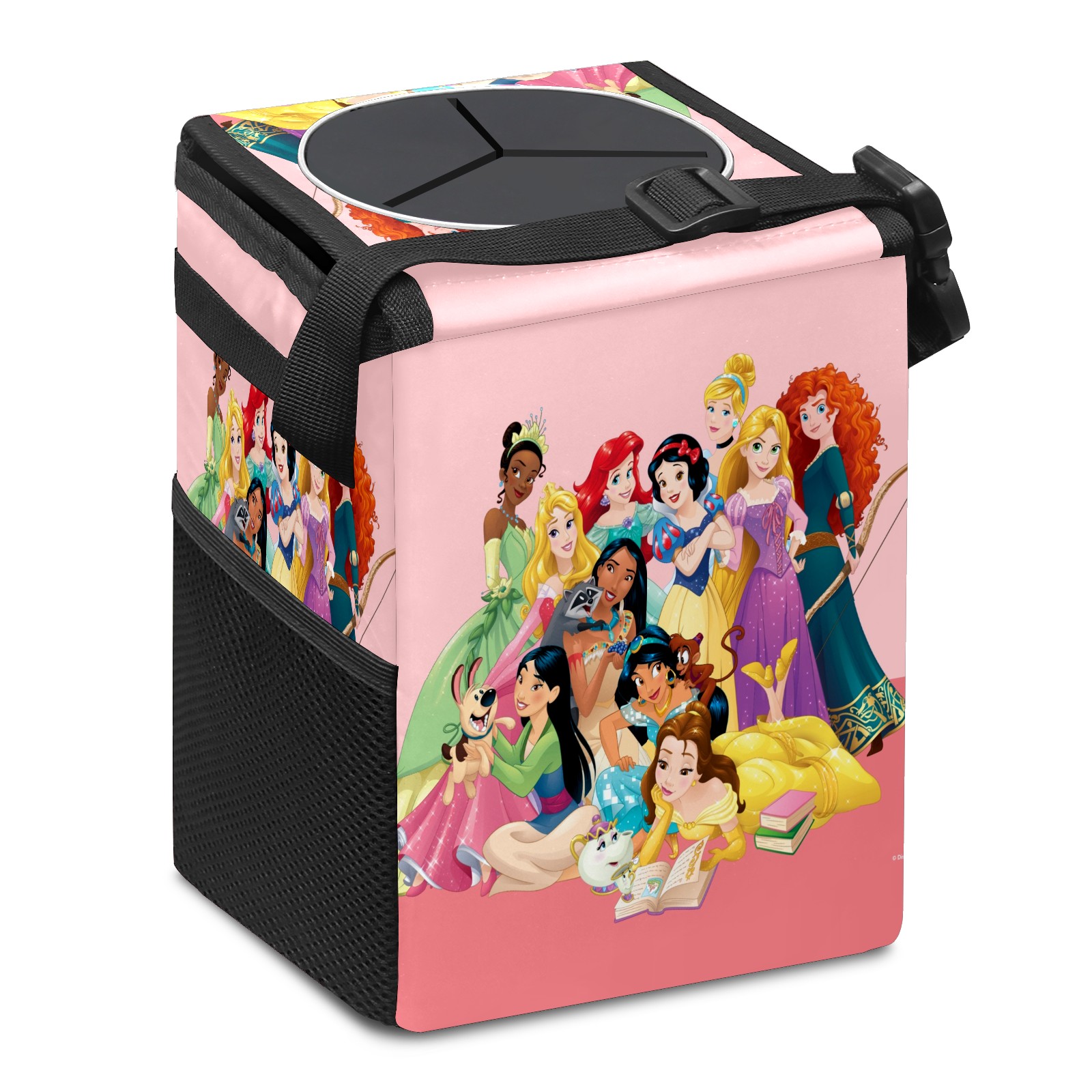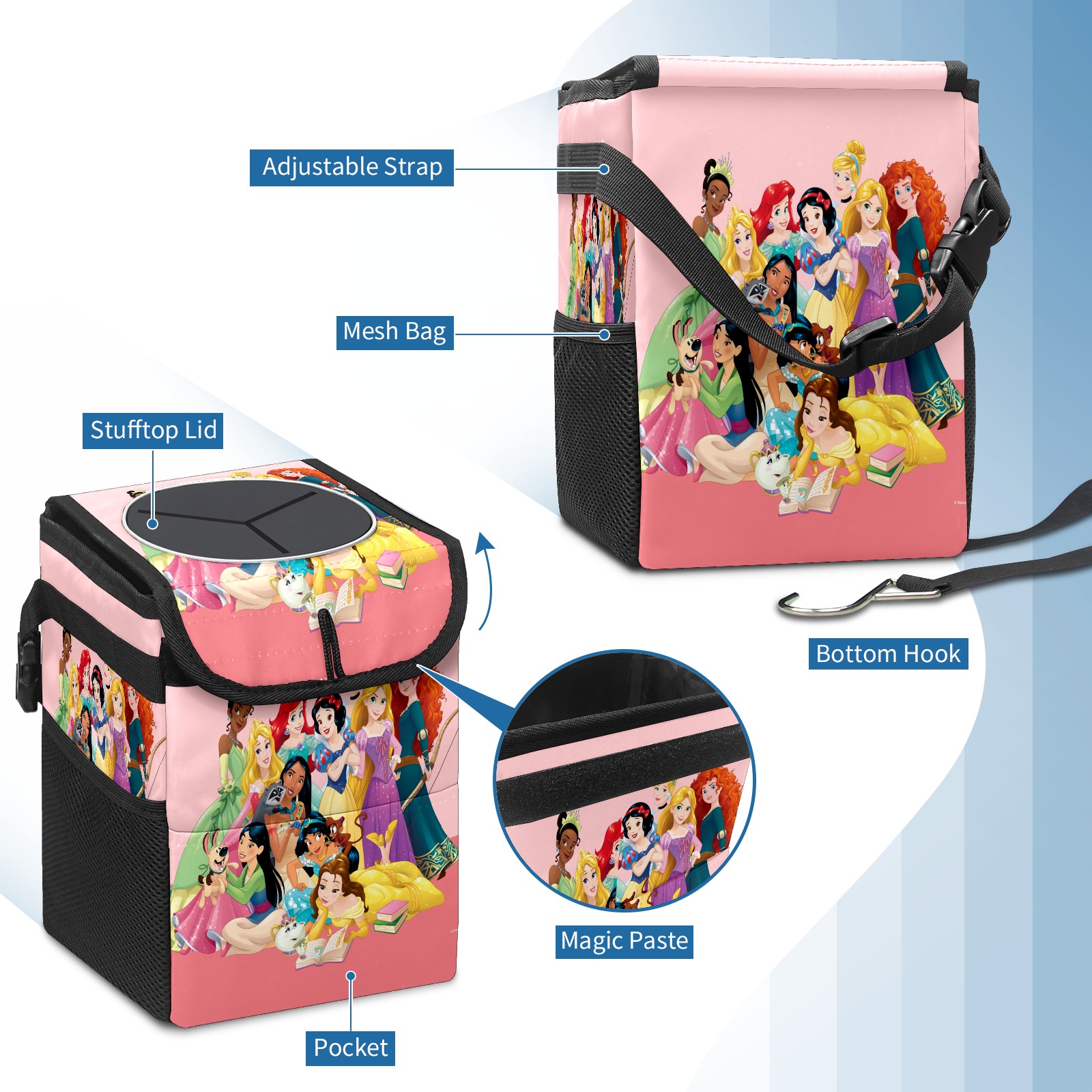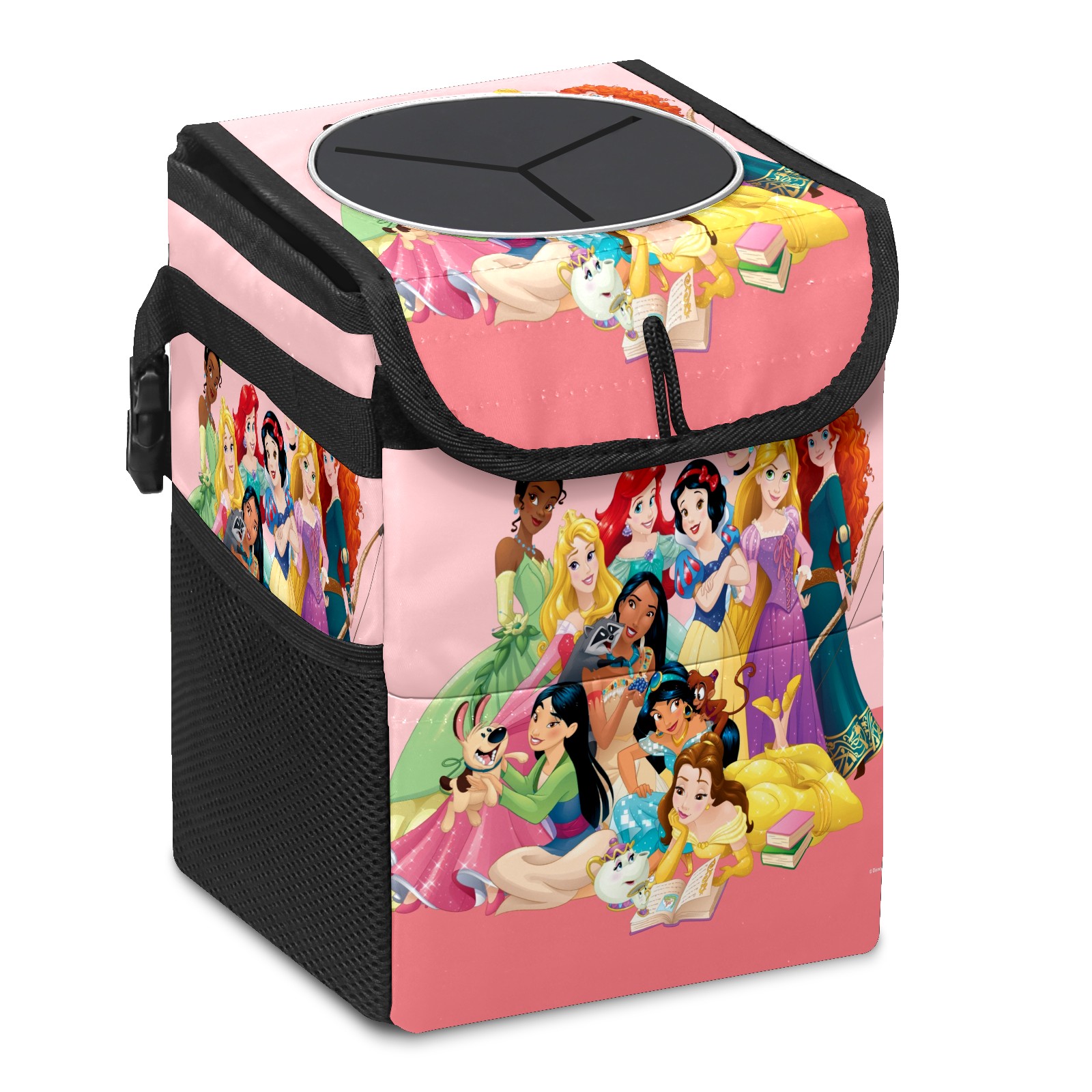 Car Trash Can with Lid, Small Portable Hanging Automotive Garbage Bin for Vehicles, Leakproof Waste Bag Container for SUV Truck Van Interior Auto Travel Road Trips(Disney Princess Friends)
