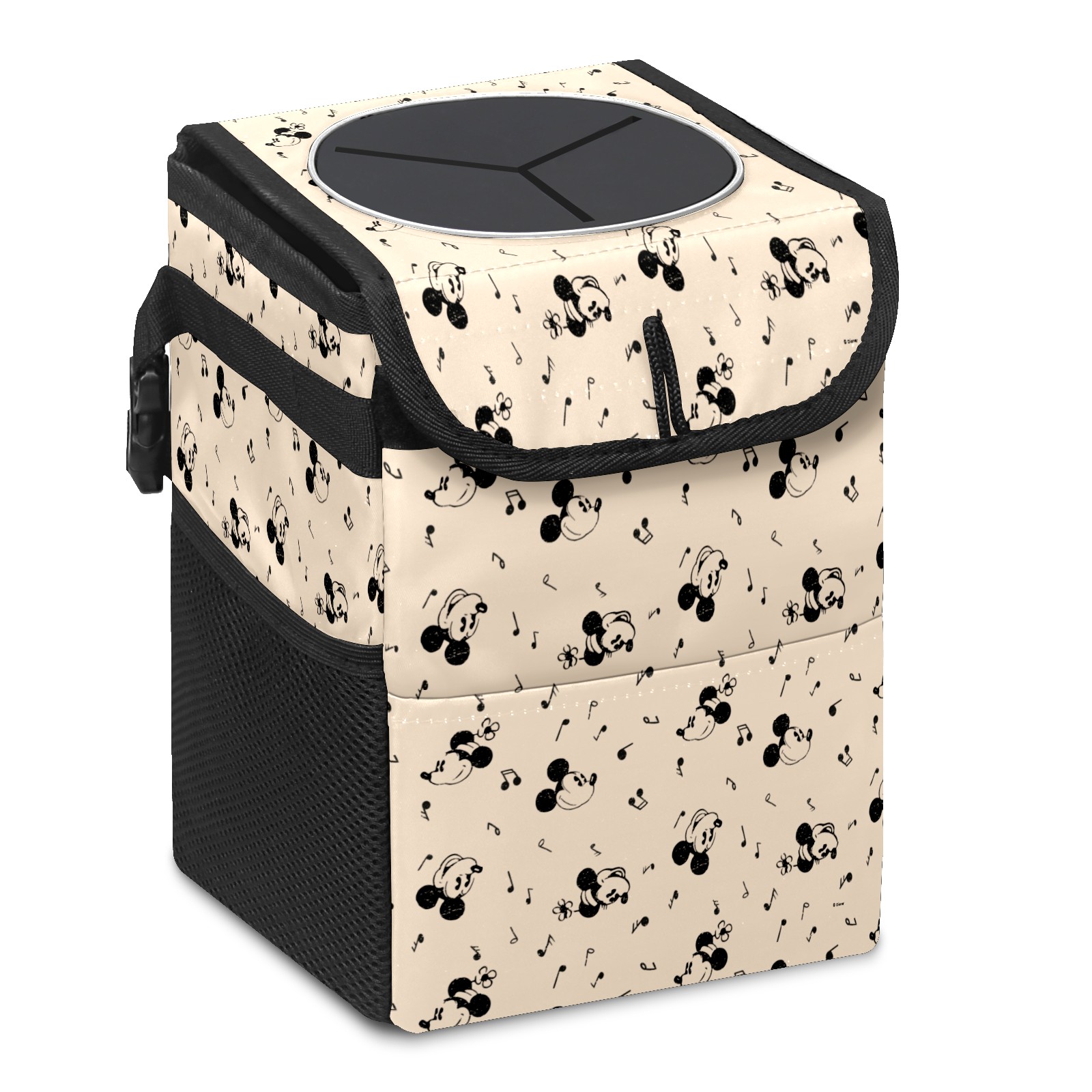 Car Trash Can with Lid, Small Portable Hanging Automotive Garbage Bin for Vehicles, Leakproof Waste Bag Container for SUV Truck Van Interior Auto Travel Road Trips(Vintage Mickey Minnie Music Pattern)