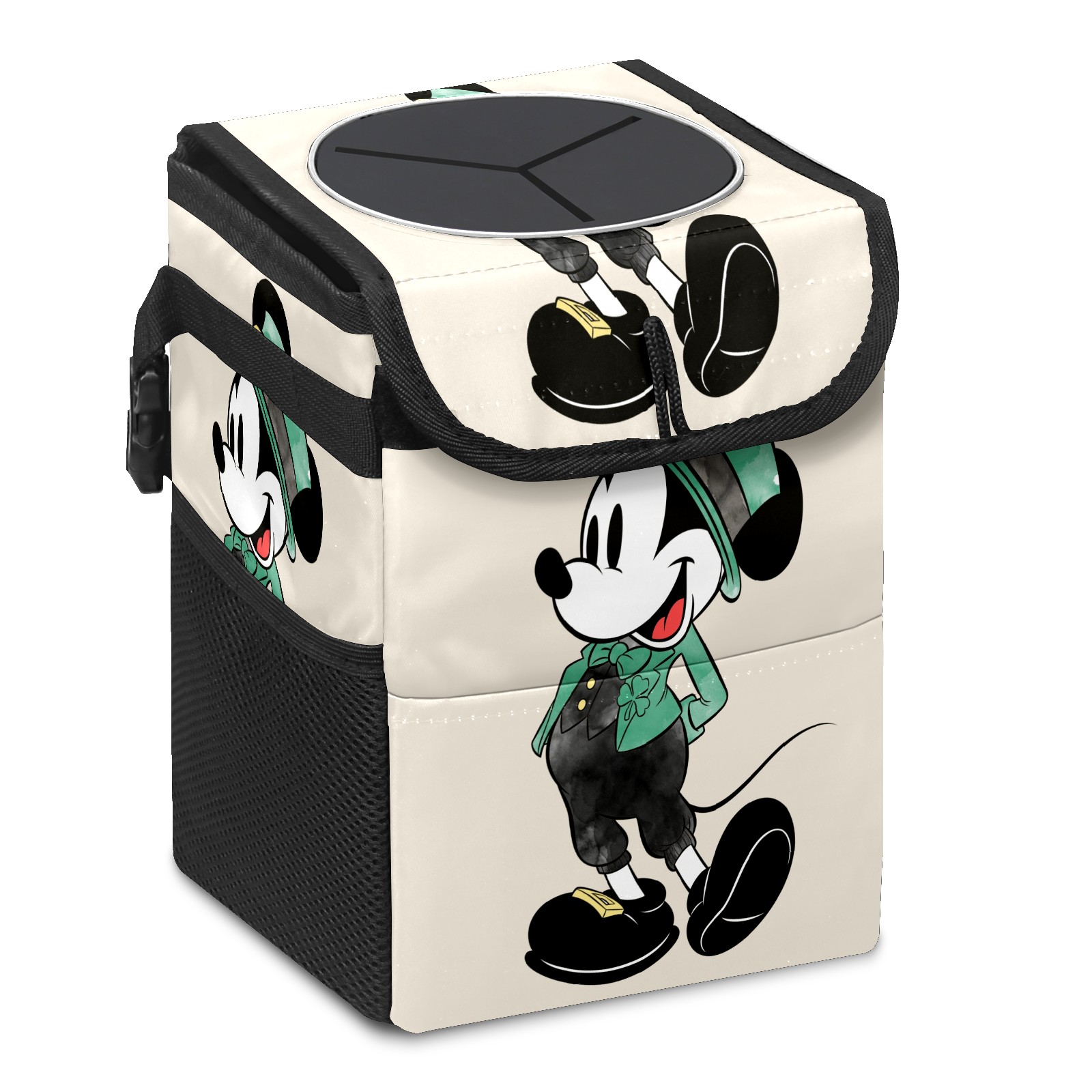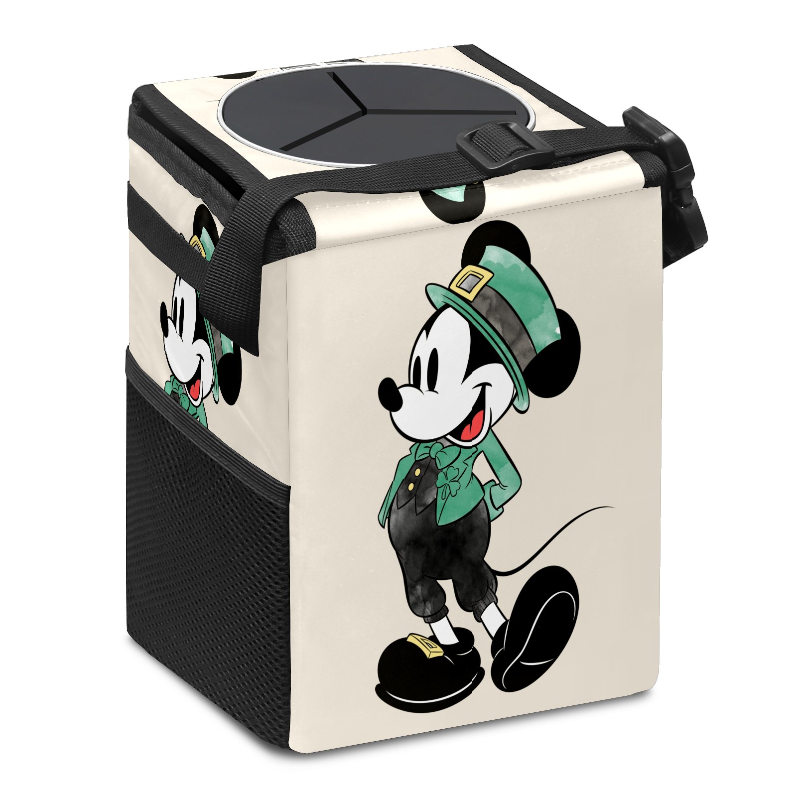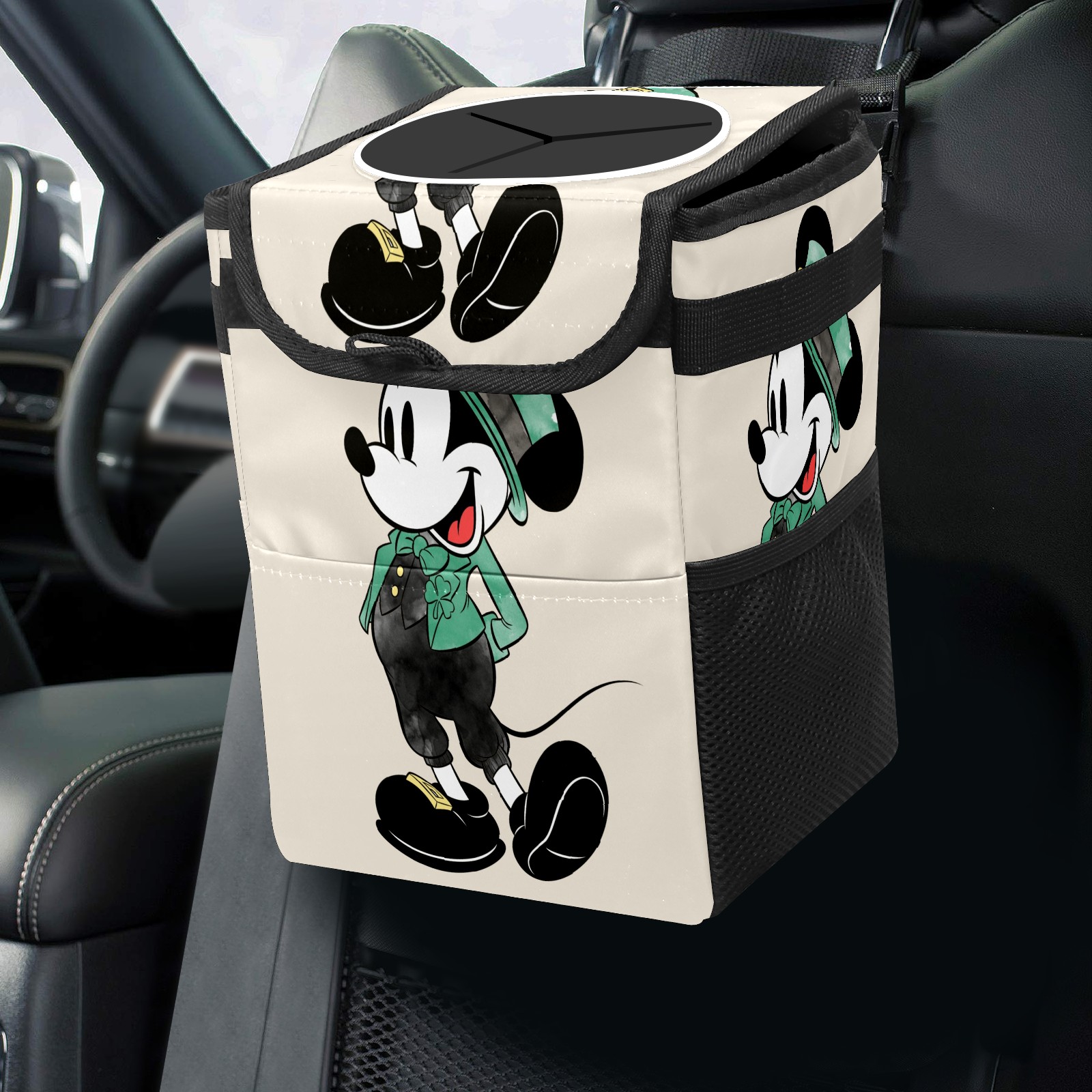 Car Trash Can with Lid, Small Portable Hanging Automotive Garbage Bin for Vehicles, Leakproof Waste Bag Container for SUV Truck Van Interior Auto Travel Road Trips(Mickey Mouse Watercolor St. Patrick's Day)