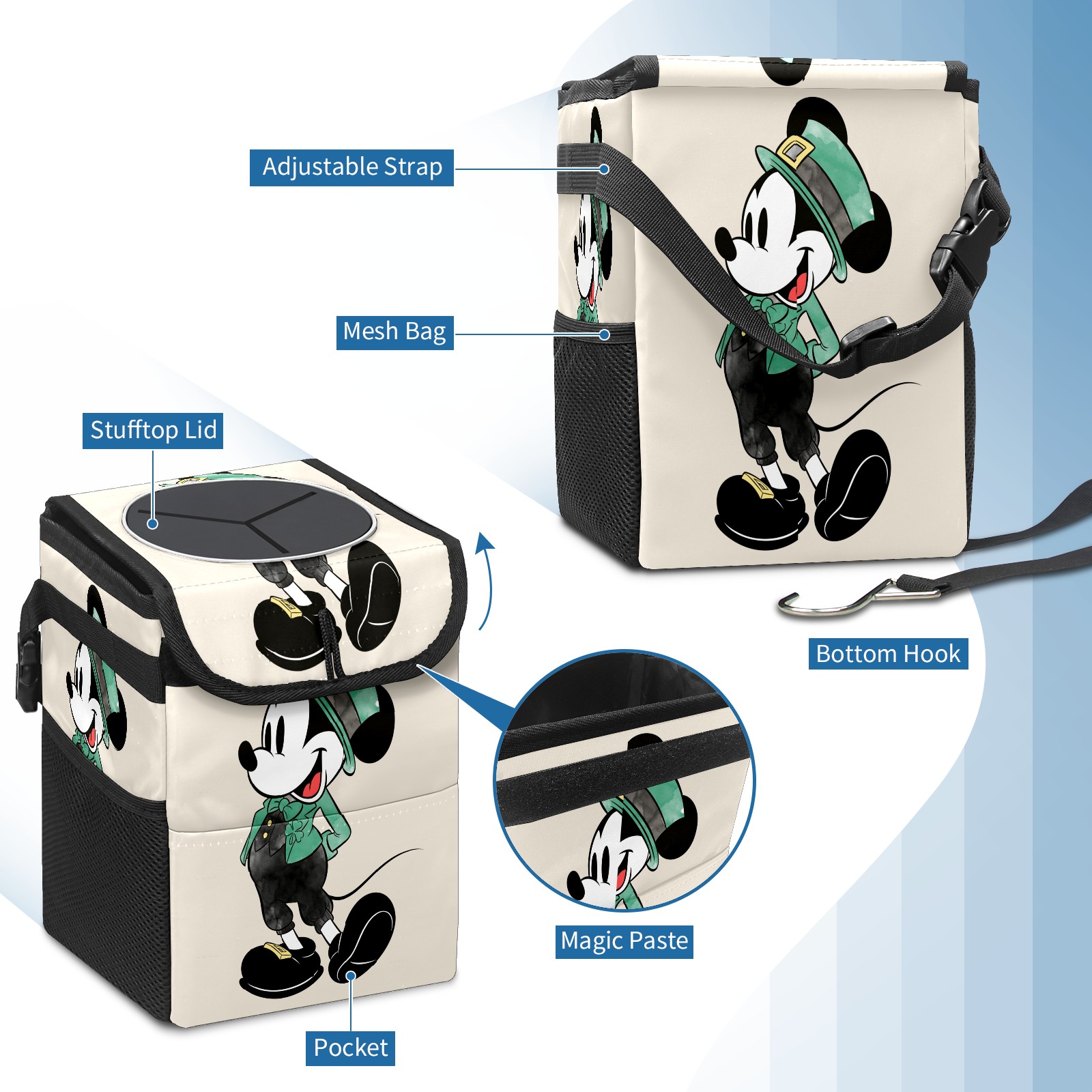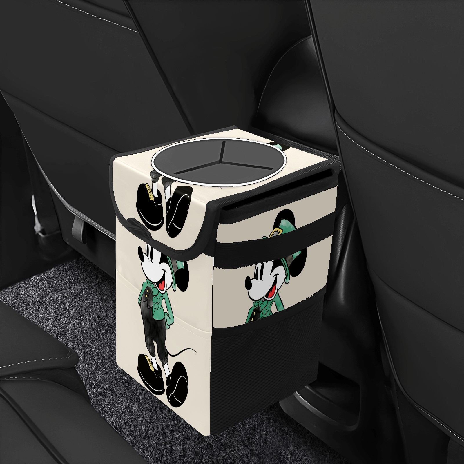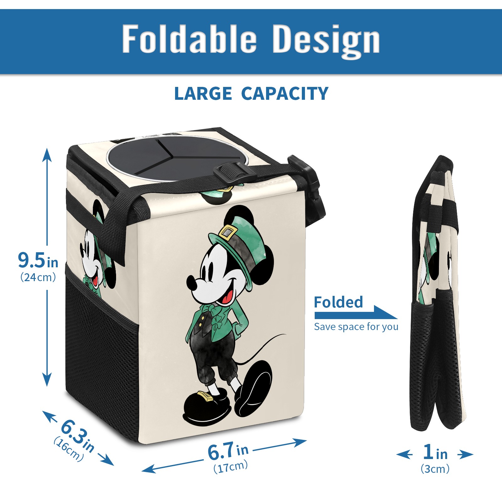 Car Trash Can with Lid, Small Portable Hanging Automotive Garbage Bin for Vehicles, Leakproof Waste Bag Container for SUV Truck Van Interior Auto Travel Road Trips(Mickey Mouse Watercolor St. Patrick's Day)