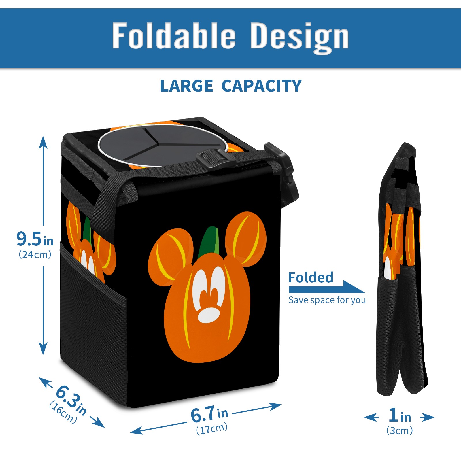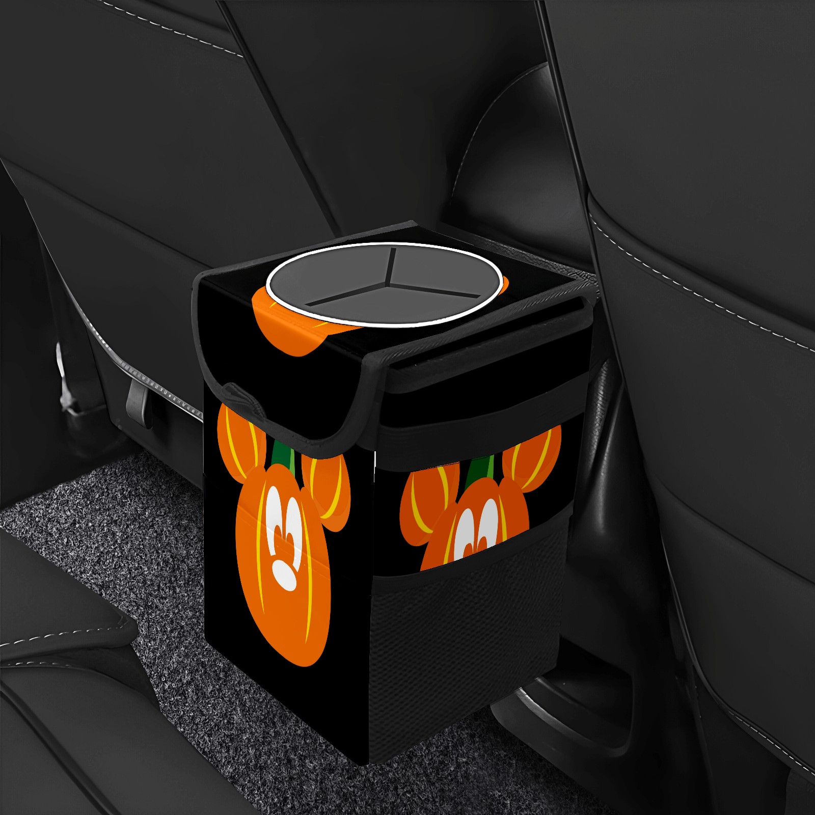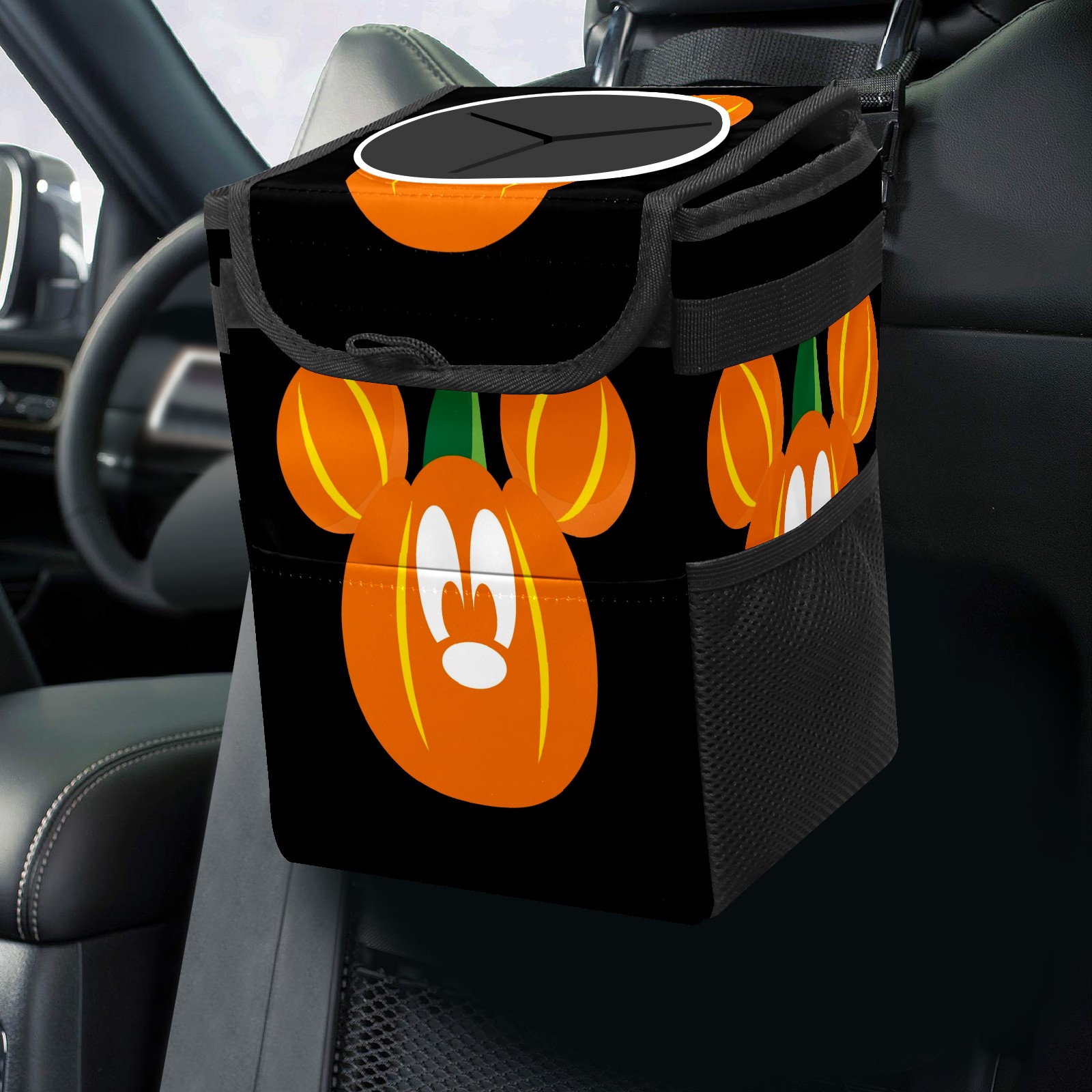 Car Trash Can with Lid, Small Portable Hanging Automotive Garbage Bin for Vehicles, Leakproof Waste Bag Container for SUV Truck Van Interior Auto Travel Road Trips(Mickey Mouse Pumpkin)