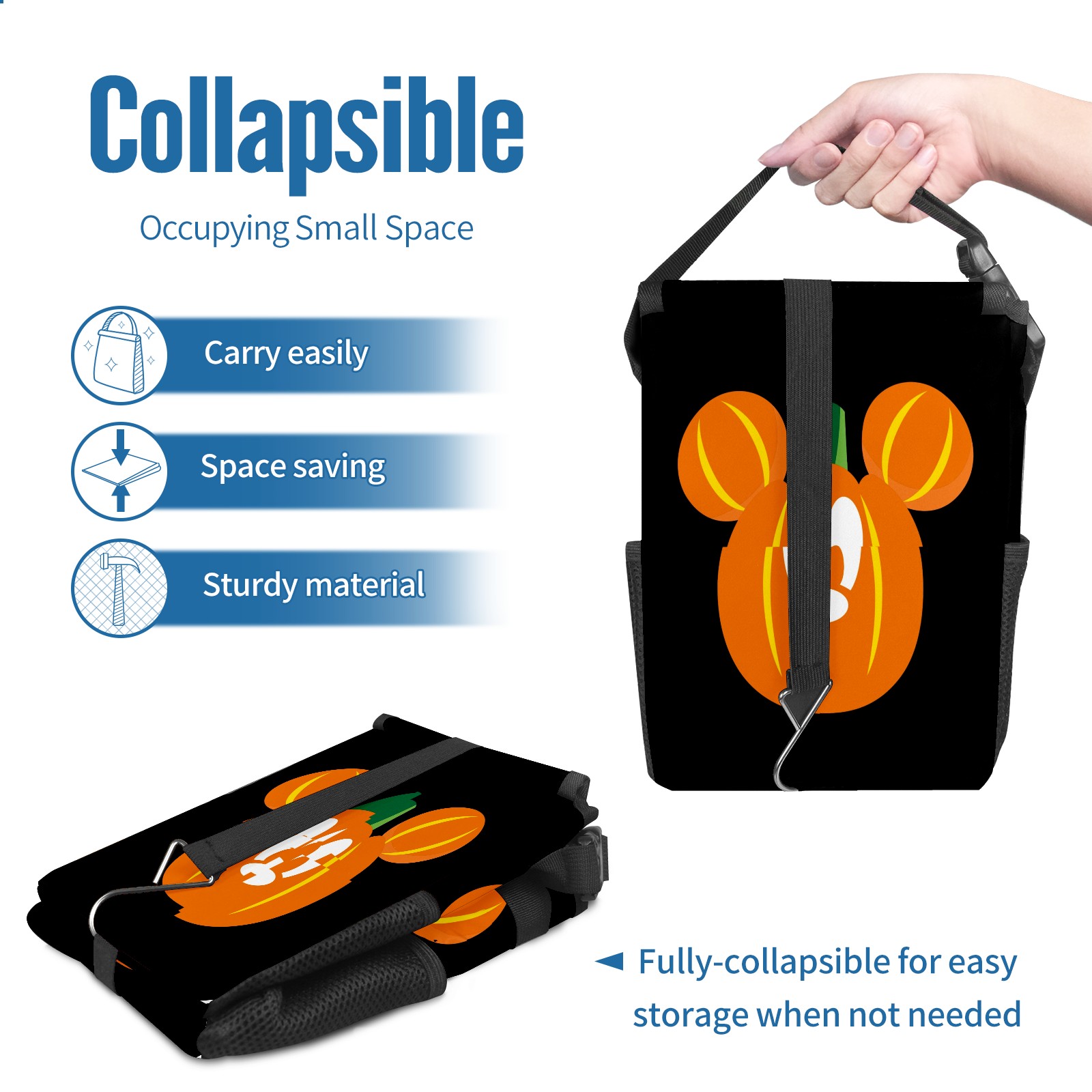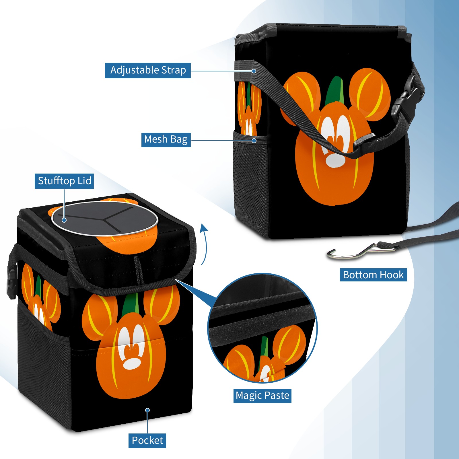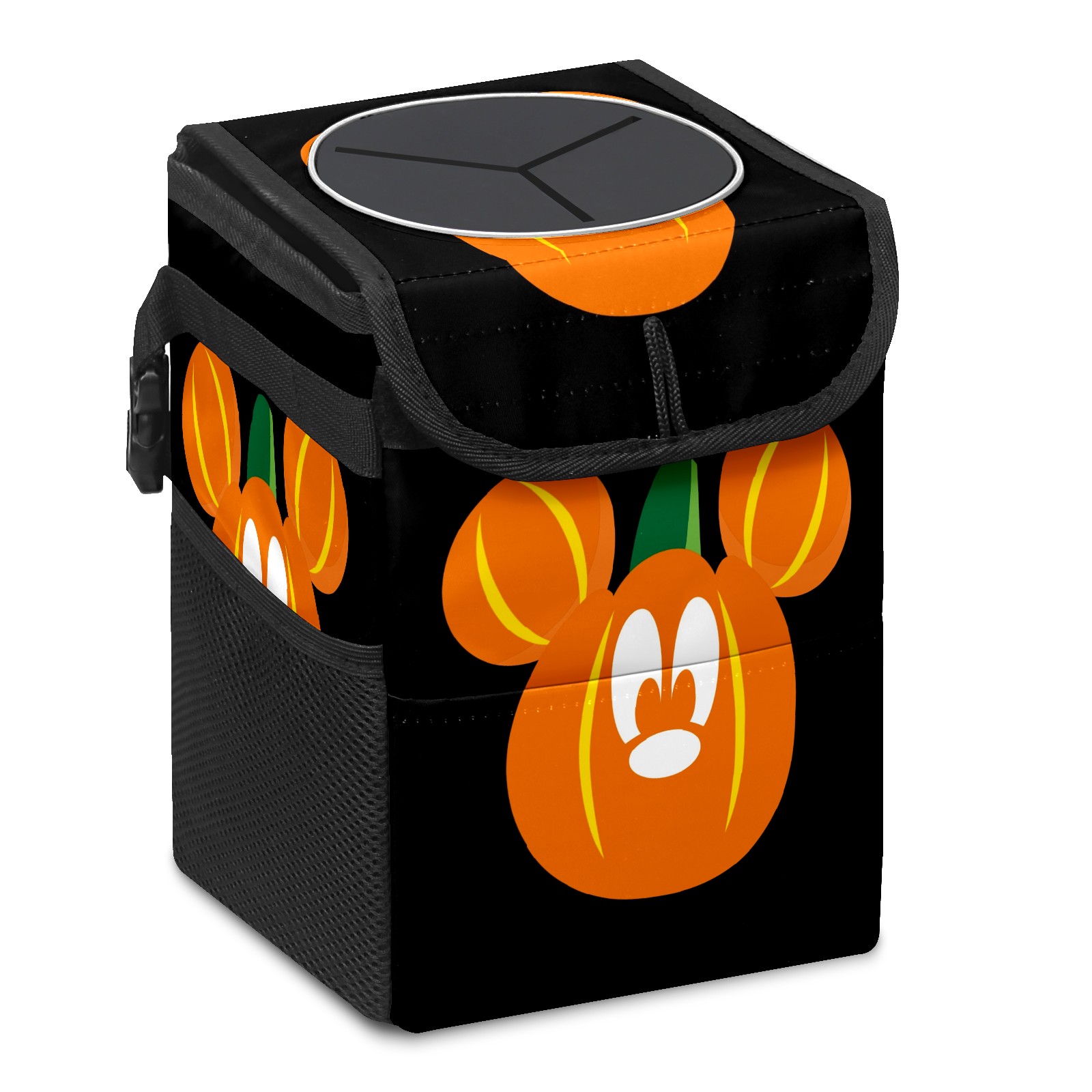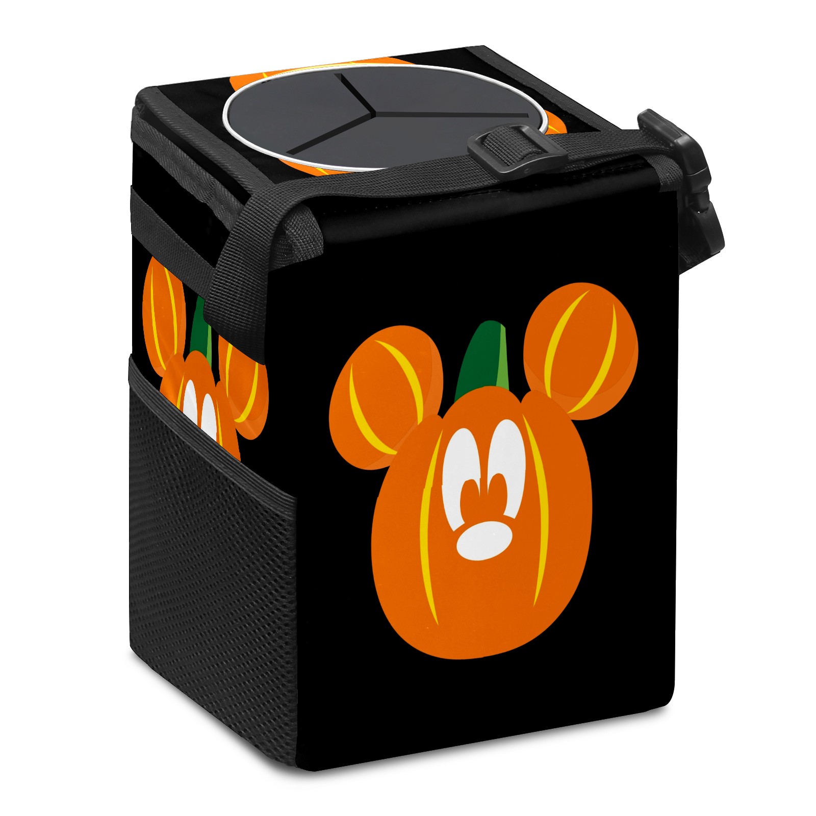 Car Trash Can with Lid, Small Portable Hanging Automotive Garbage Bin for Vehicles, Leakproof Waste Bag Container for SUV Truck Van Interior Auto Travel Road Trips(Mickey Mouse Pumpkin)