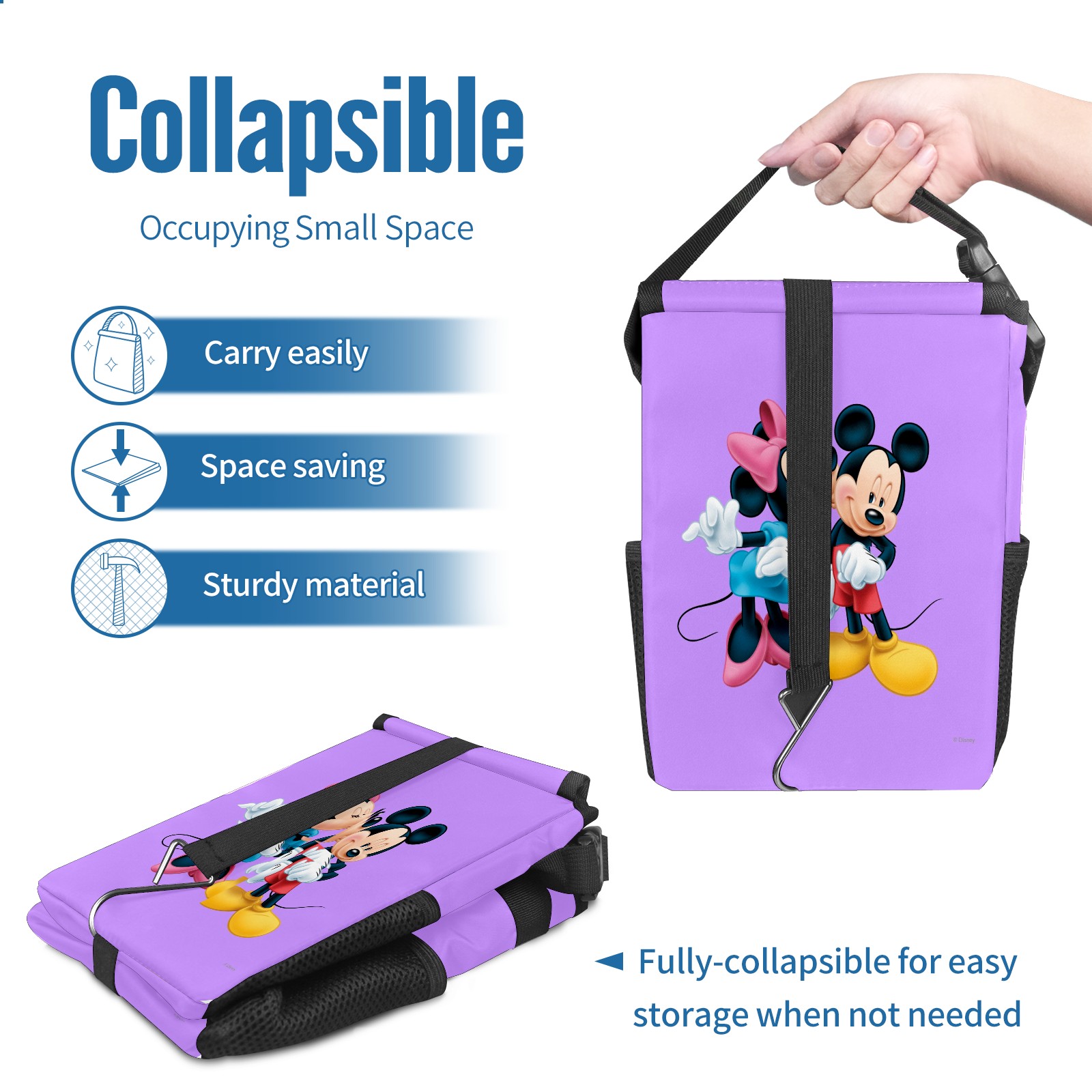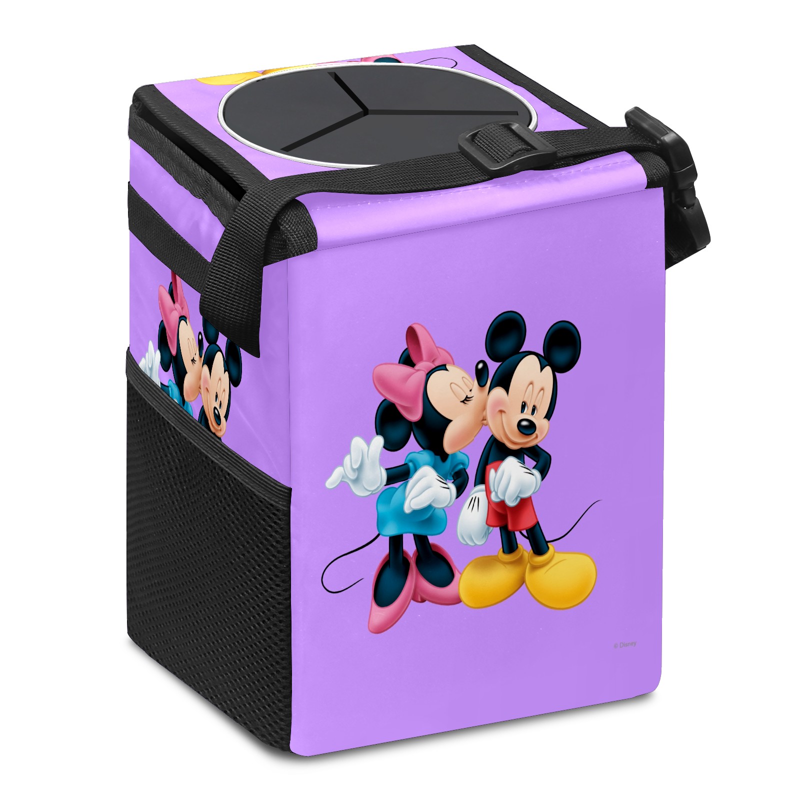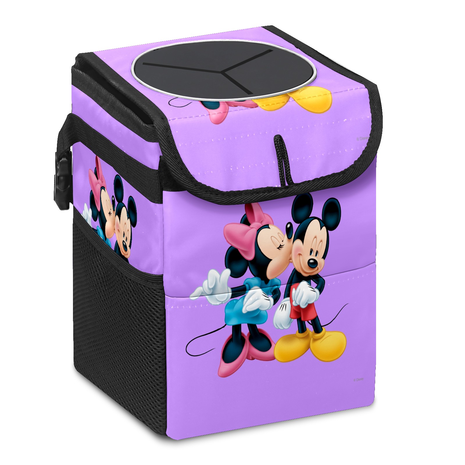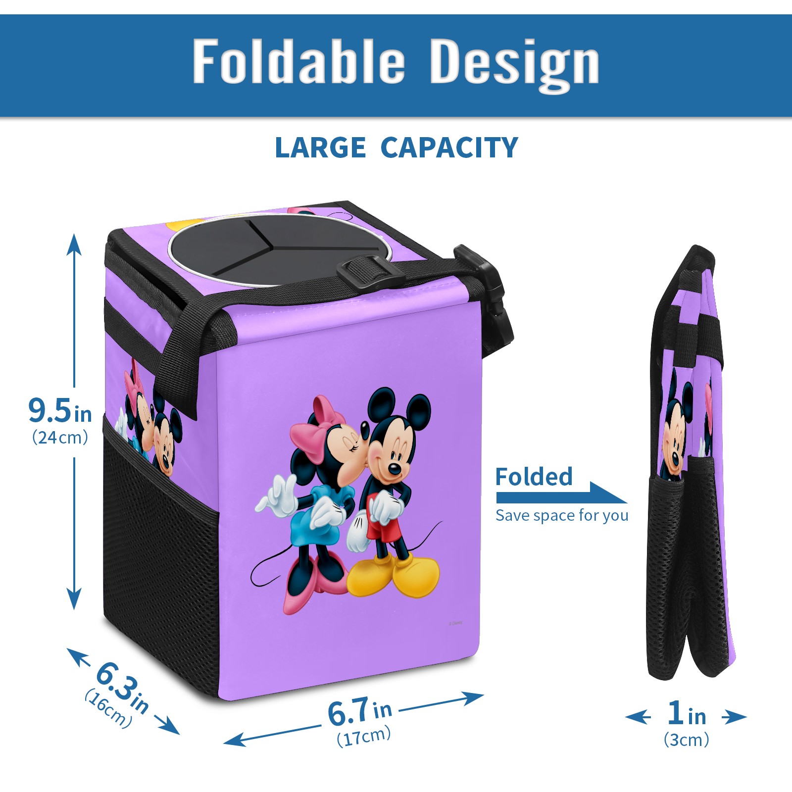 Car Trash Can with Lid, Small Portable Hanging Automotive Garbage Bin for Vehicles, Leakproof Waste Bag Container for SUV Truck Van Interior Auto Travel Road Trips(Minnie Kissing Mickey Mouse Purple)