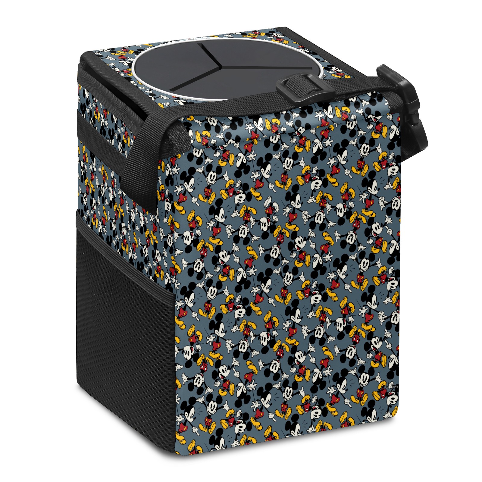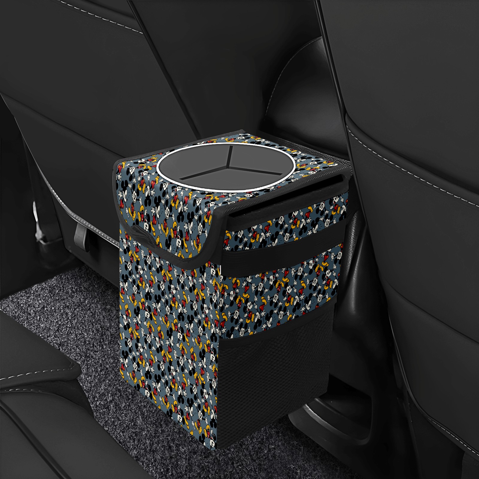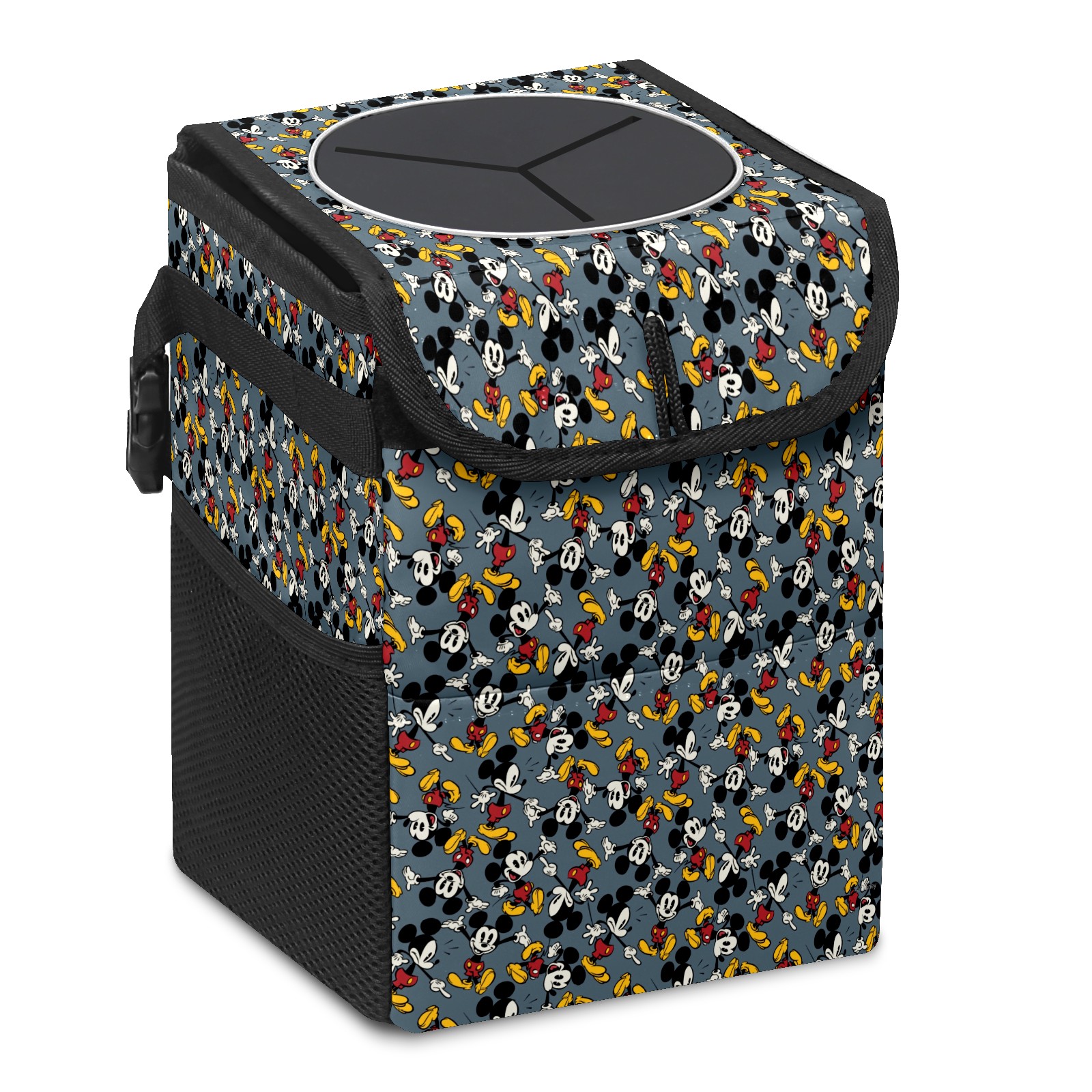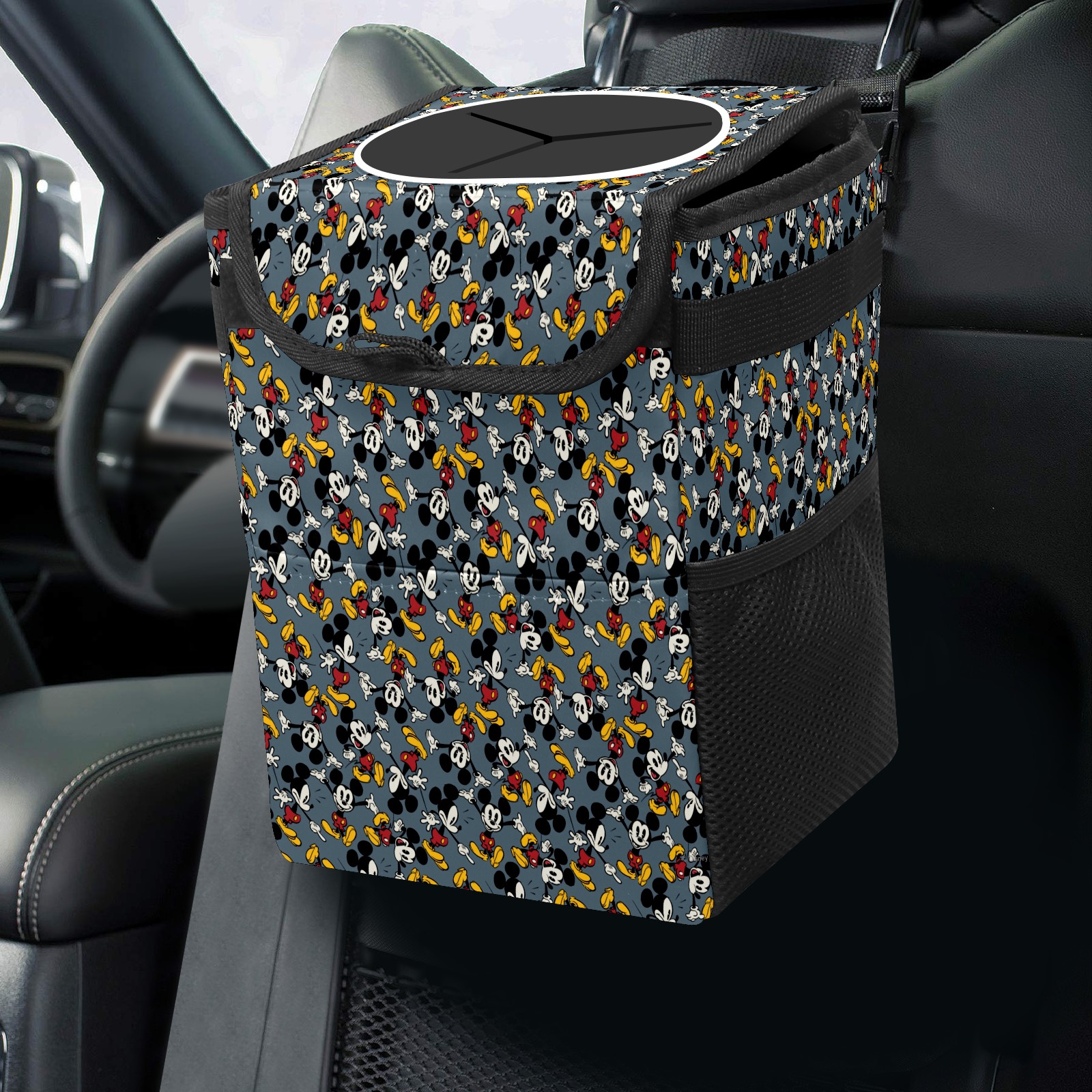 Car Trash Can with Lid, Small Portable Hanging Automotive Garbage Bin for Vehicles, Leakproof Waste Bag Container for SUV Truck Van Interior Auto Travel Road Trips(Cute Funny Mickey Mouse Pattern)