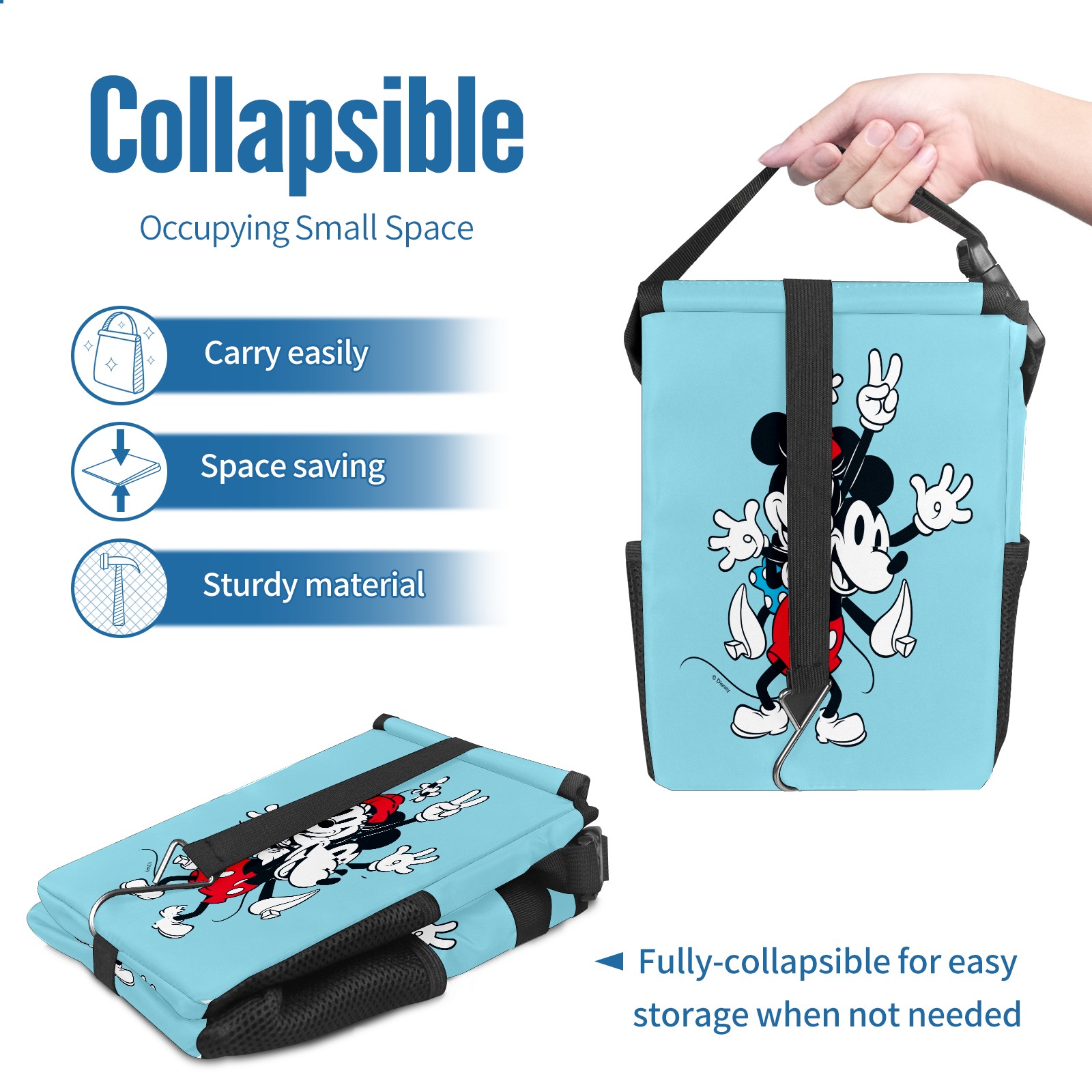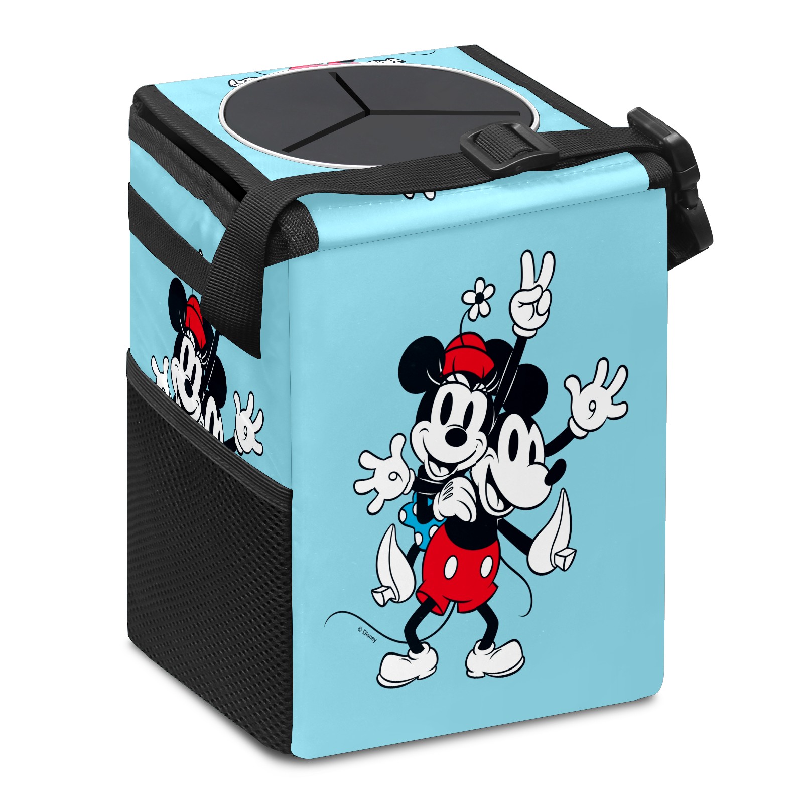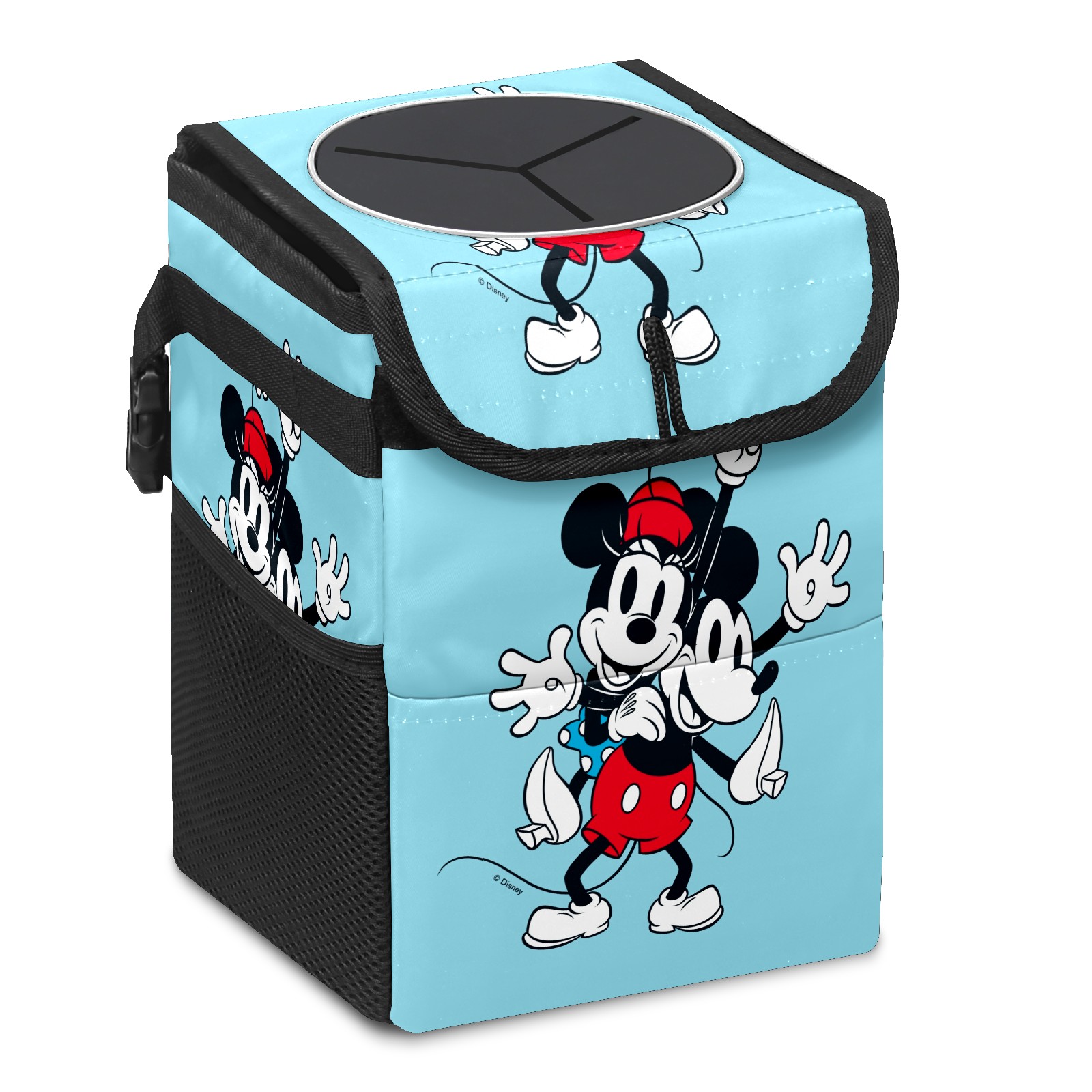 Car Trash Can with Lid, Small Portable Hanging Automotive Garbage Bin for Vehicles, Leakproof Waste Bag Container for SUV Truck Van Interior Auto Travel Road Trips(Blue Minnie Mickey Mouse Pattern)