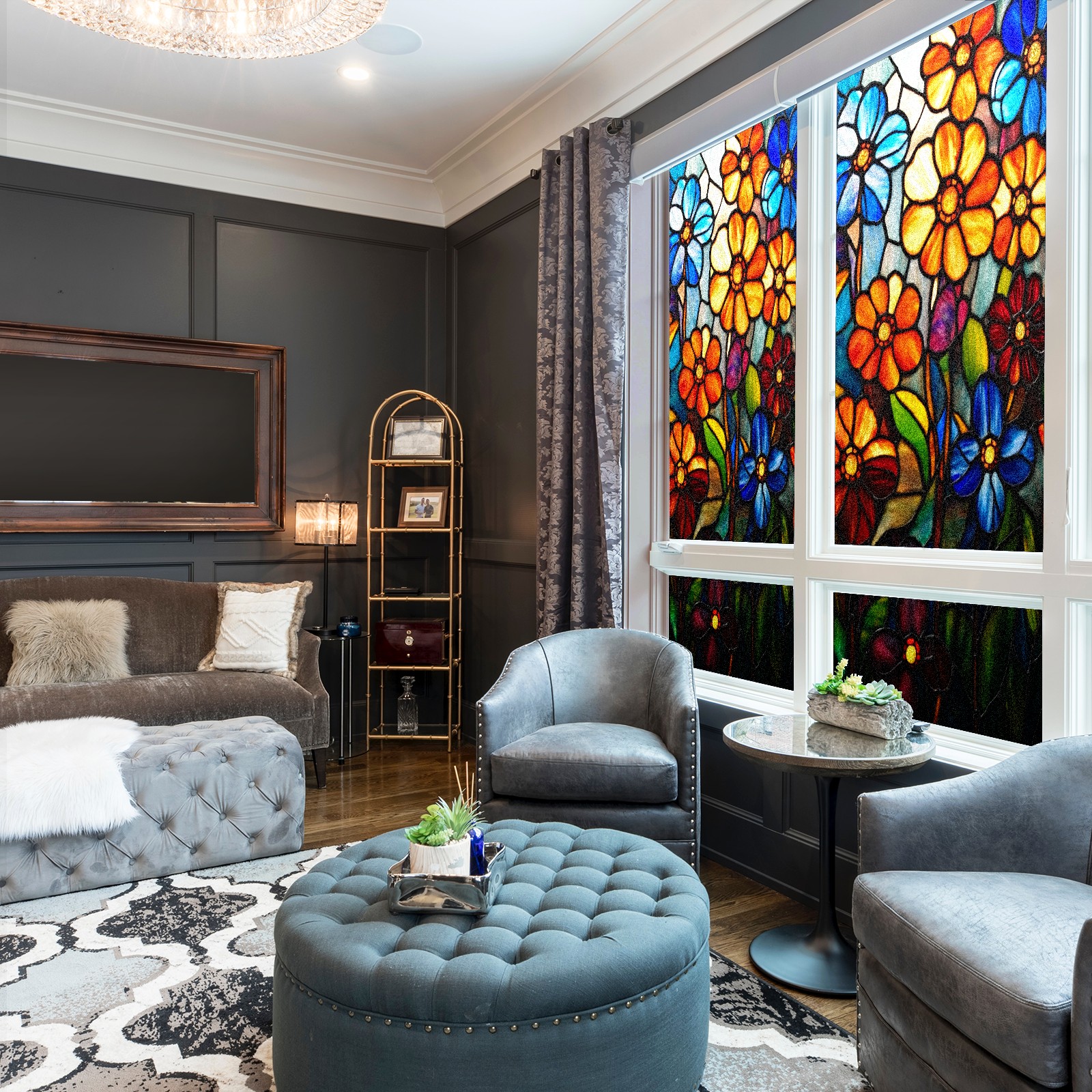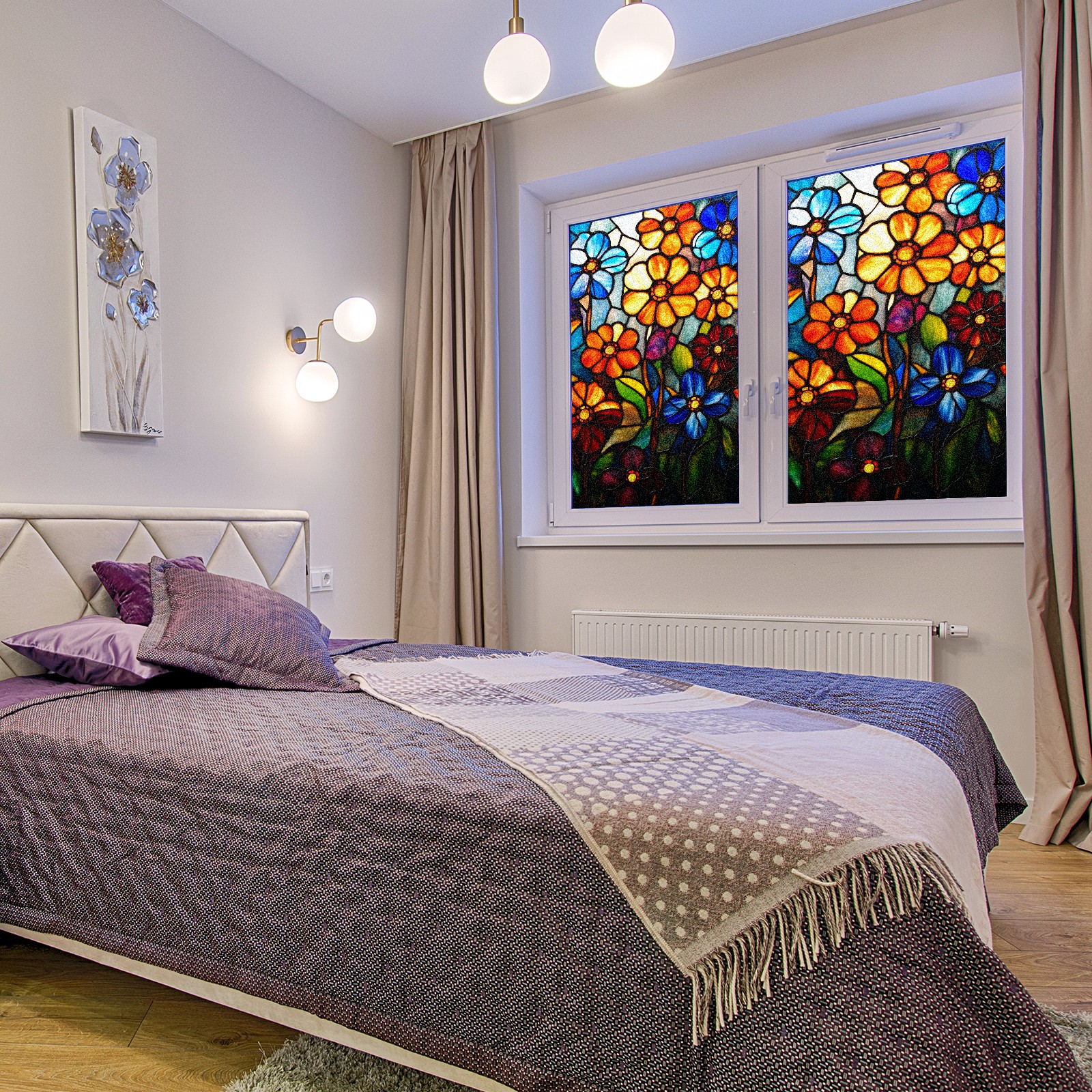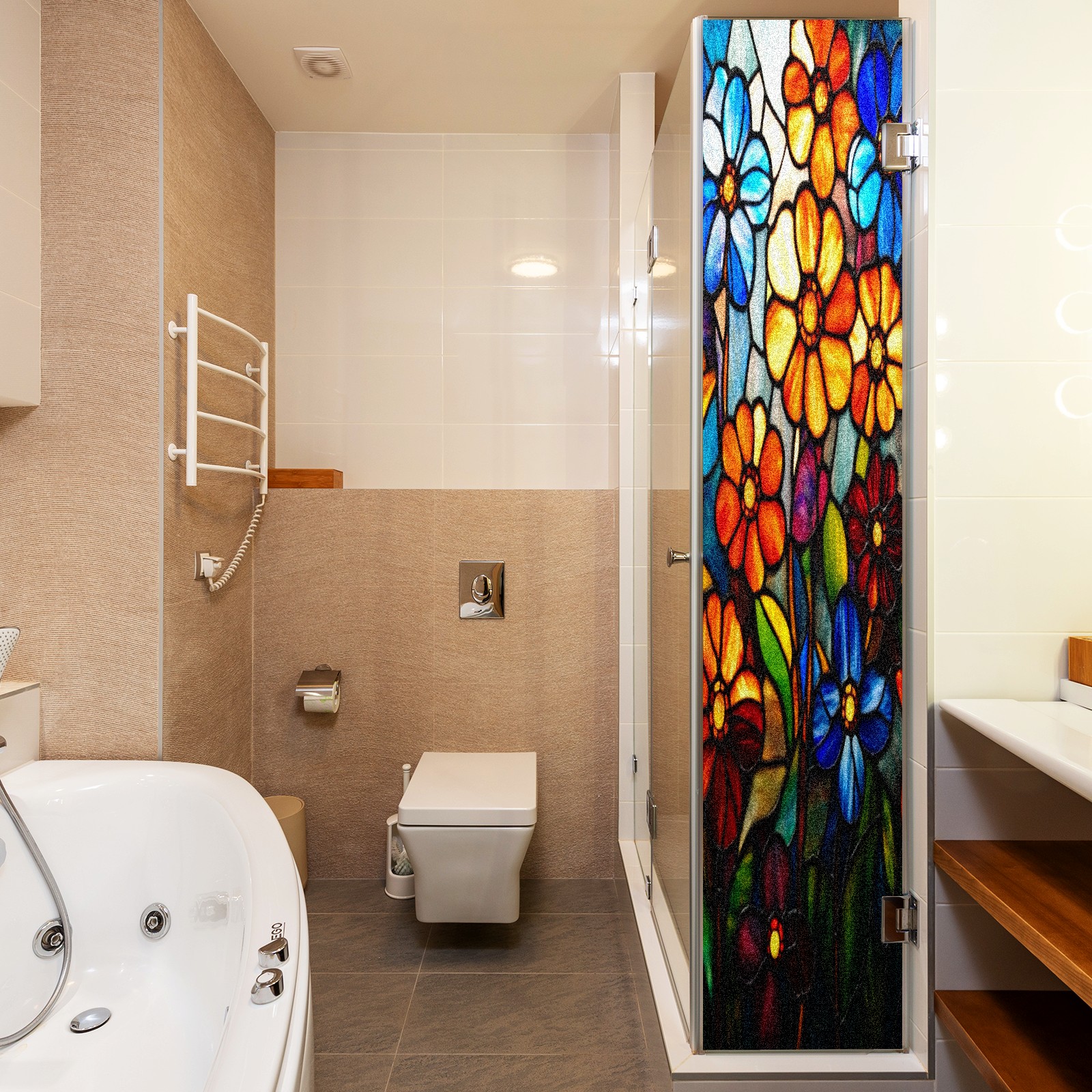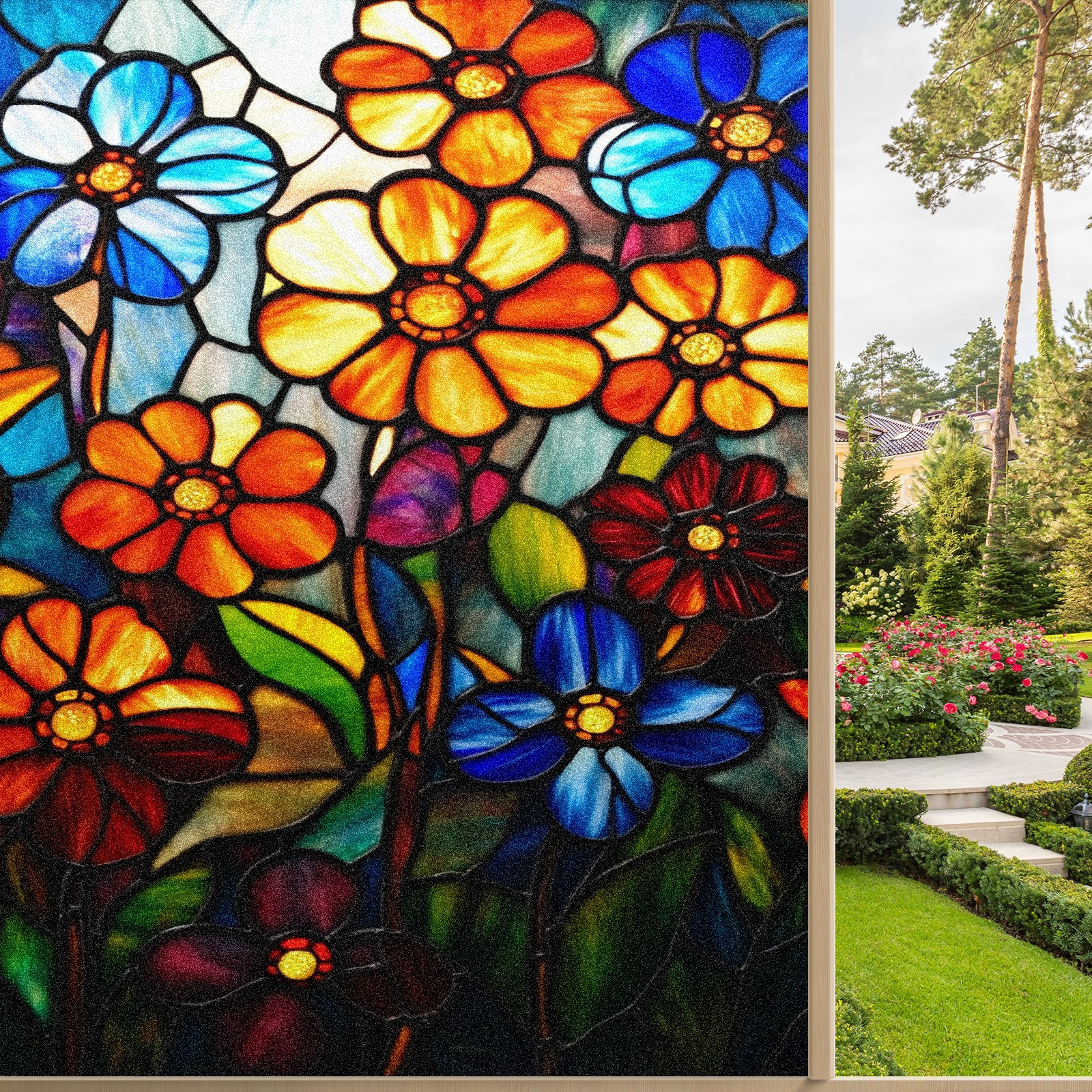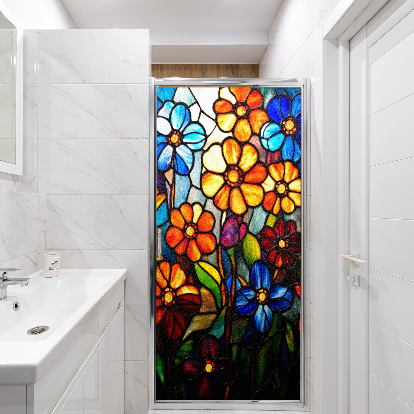 Фильм для окон приватный, матовый, под цветное стекло, декоративный статически клеящийся, для ванной и домашнего офиса, Tulip Various Colored Flowers