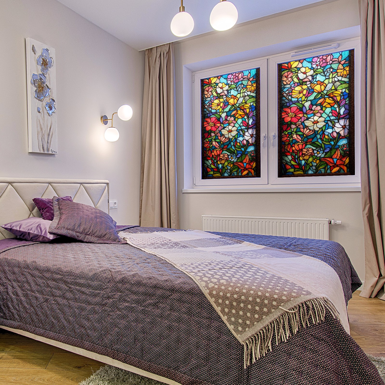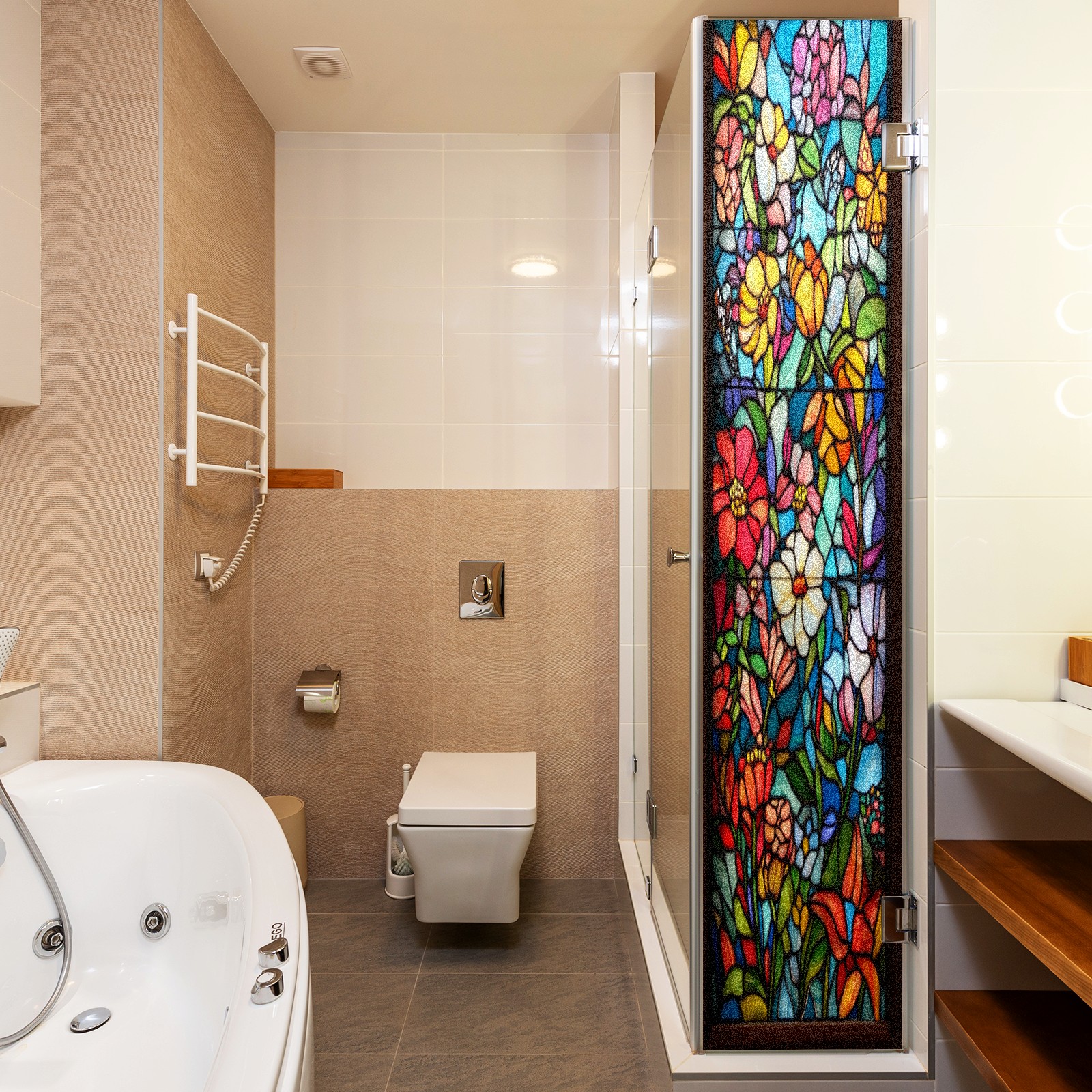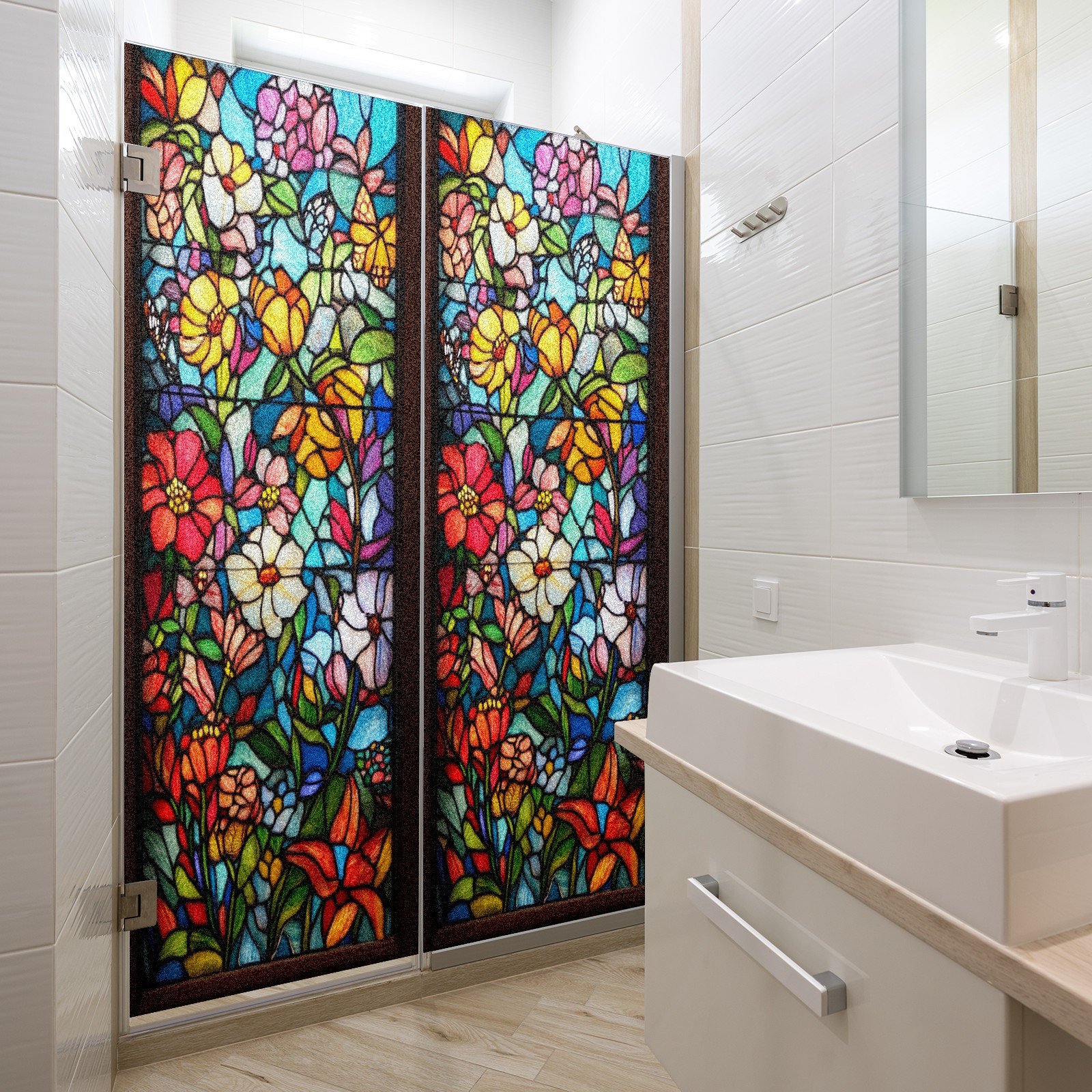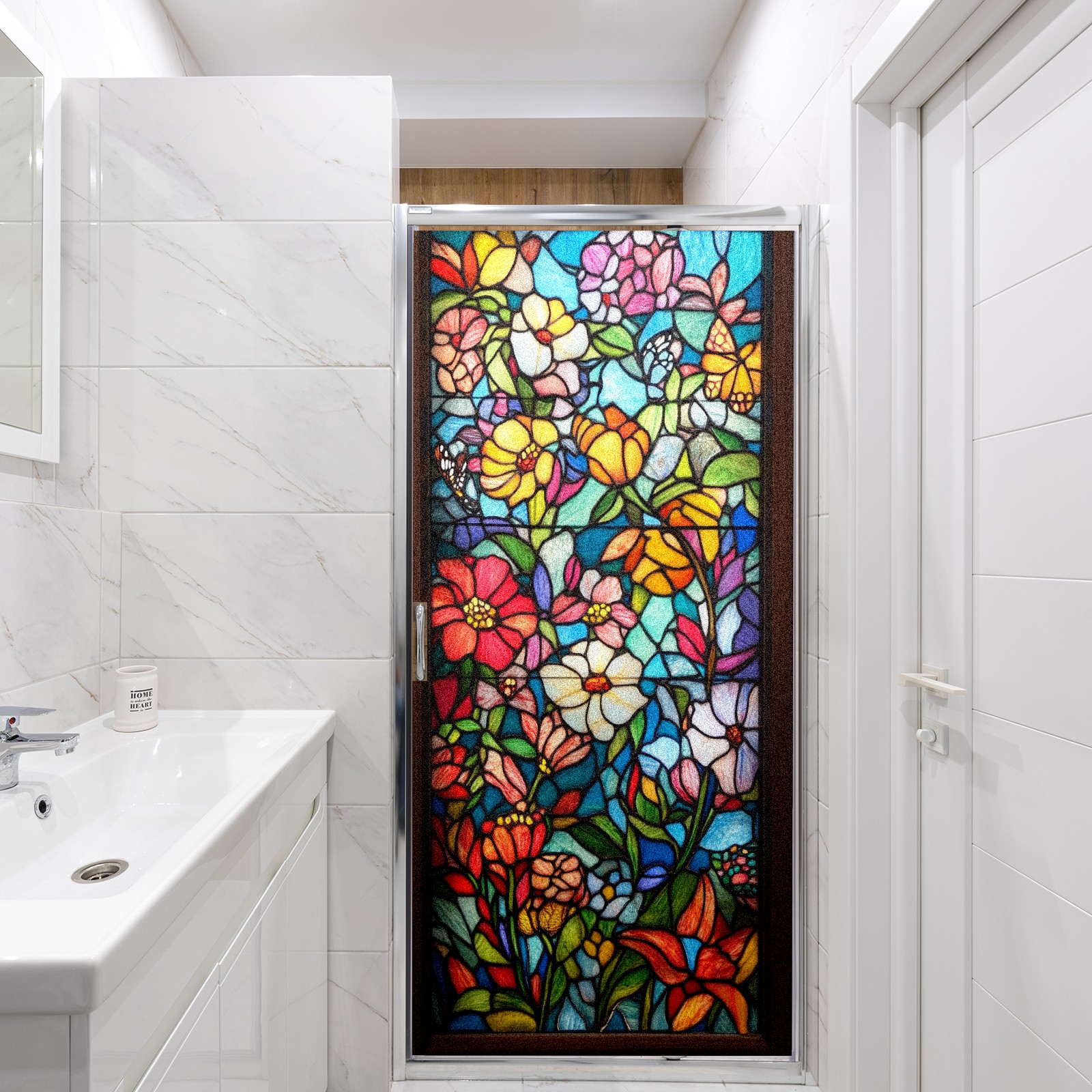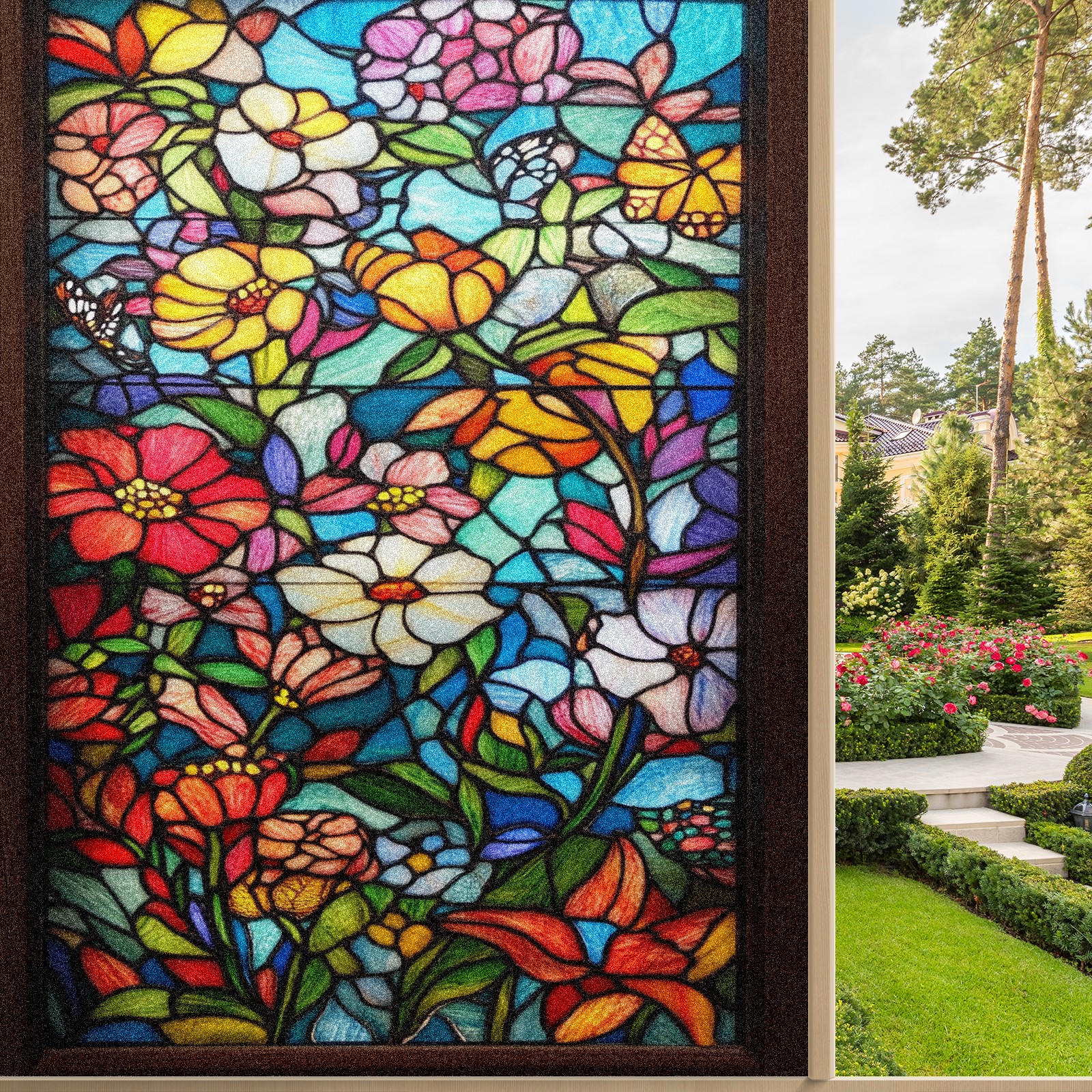 Фильм для окон приватный, матовый, под цветное стекло, декоративный статически клеящийся, для ванной и домашнего офиса, Tulip Various Flowers