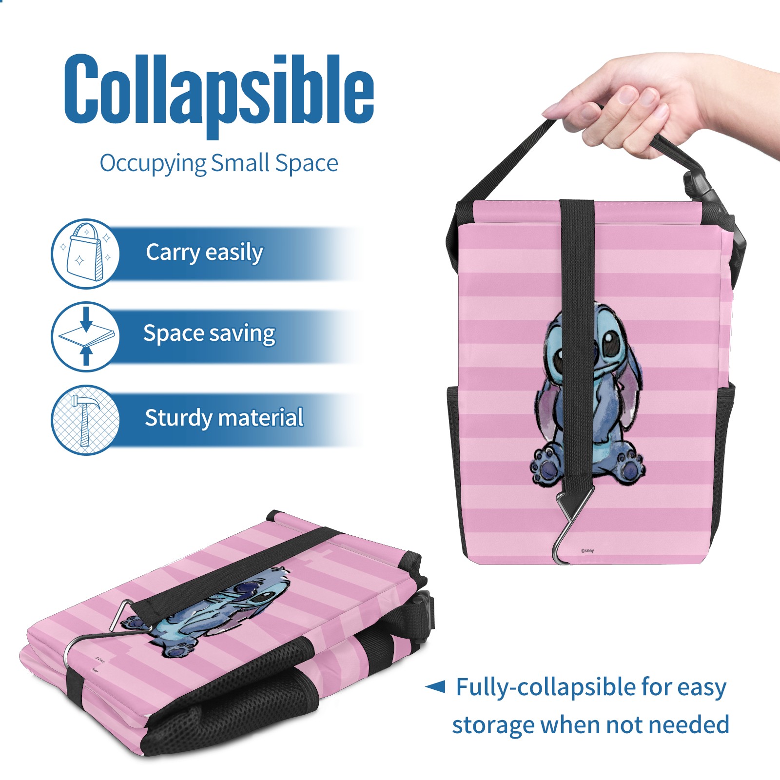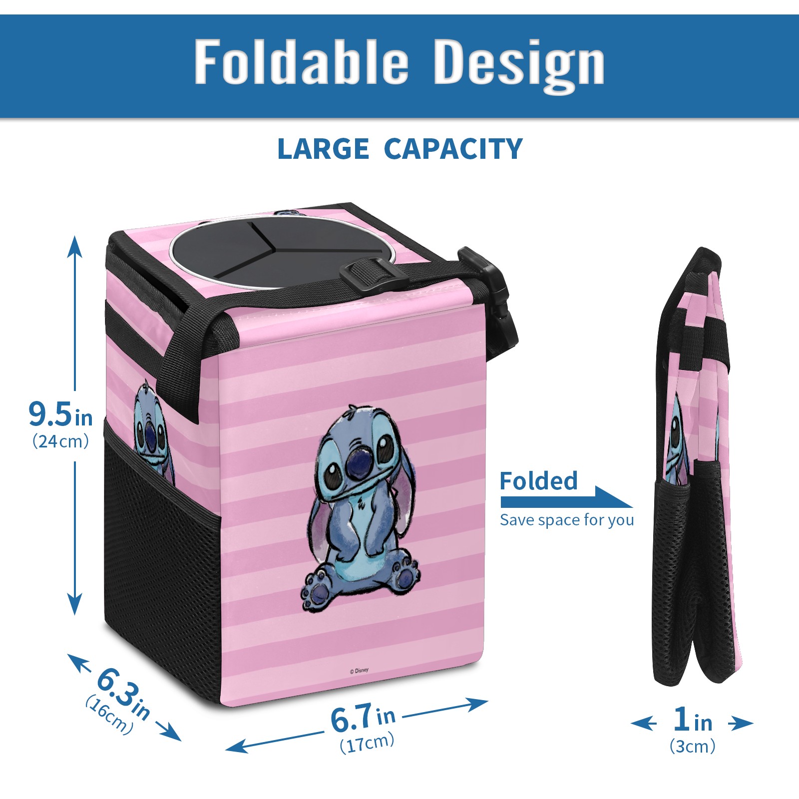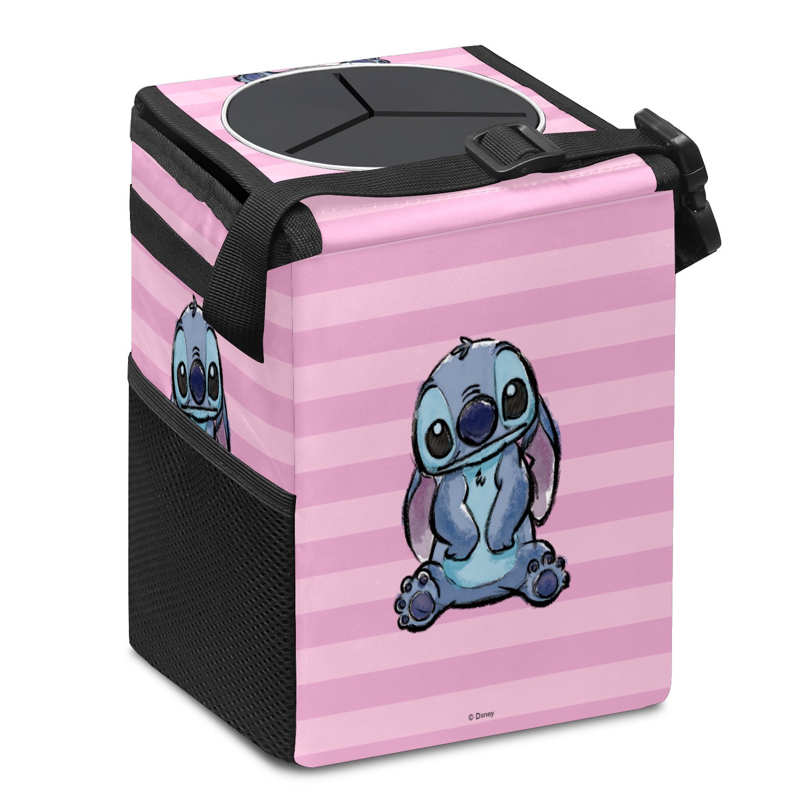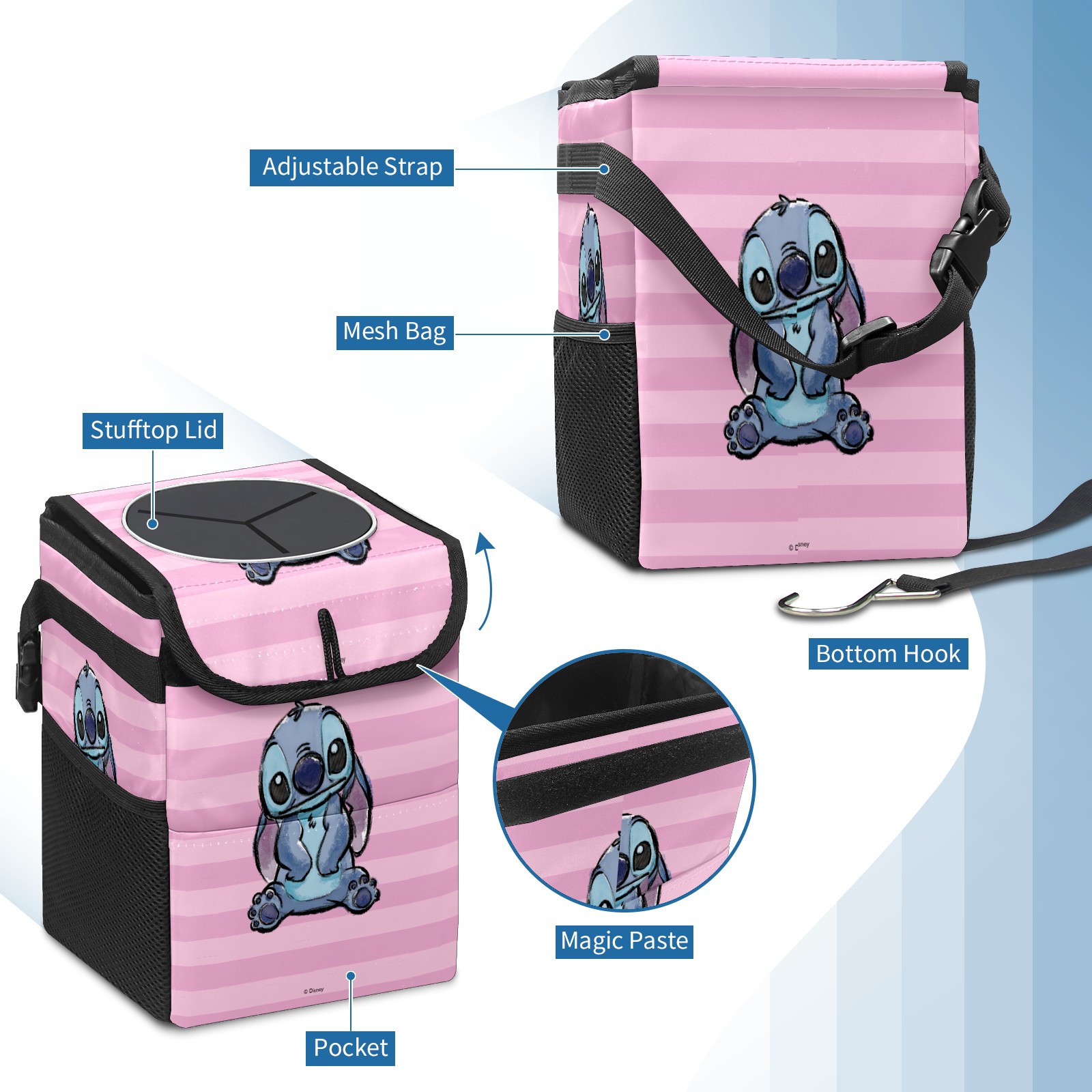 Car Trash Can with Lid, Small Portable Hanging Automotive Garbage Bin for Vehicles, Leakproof Waste Bag Container for SUV Truck Van Interior Auto Travel Road Trips(Pink Lilo Stitch Stitch Sketch)