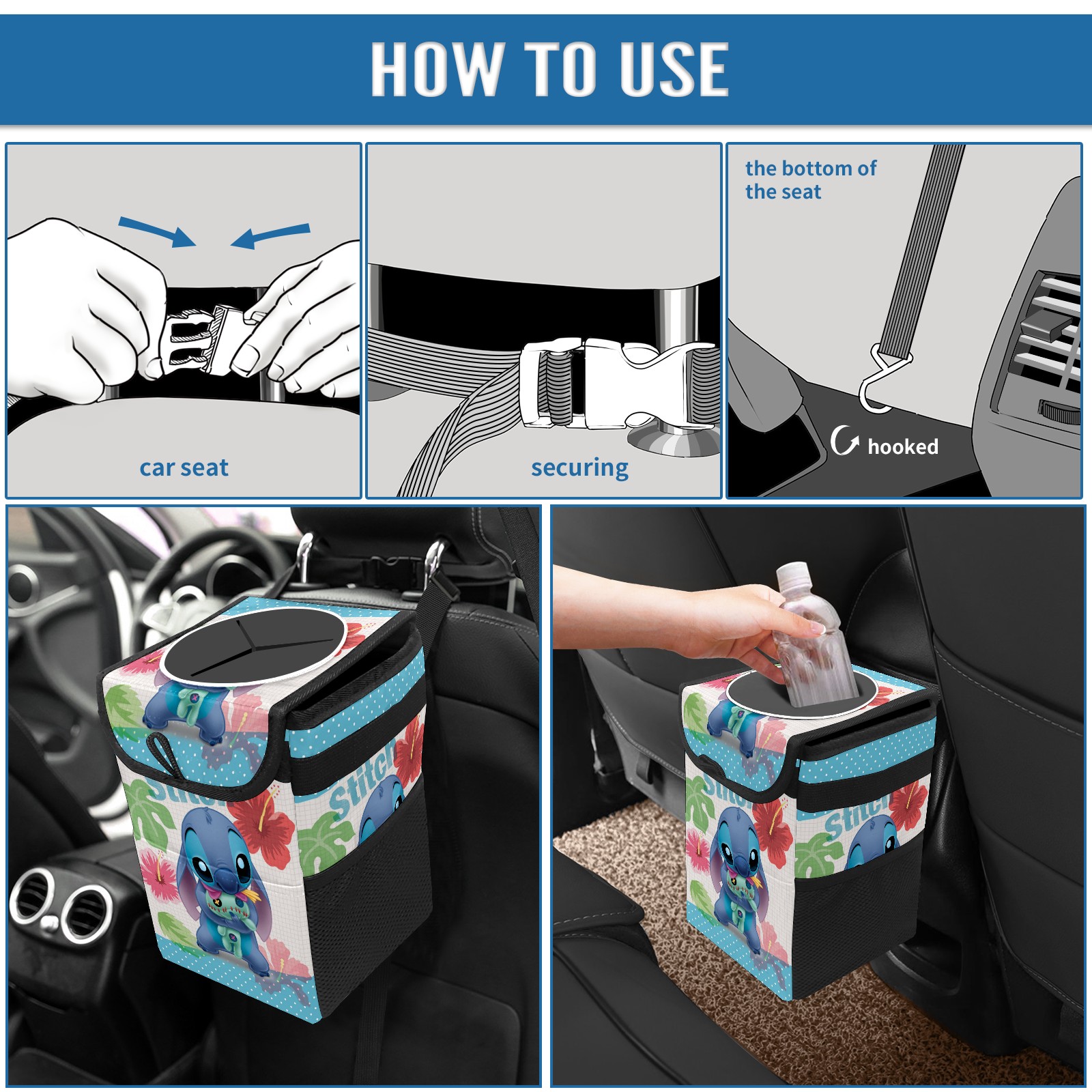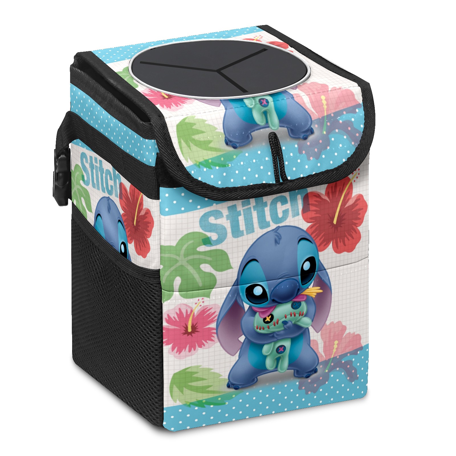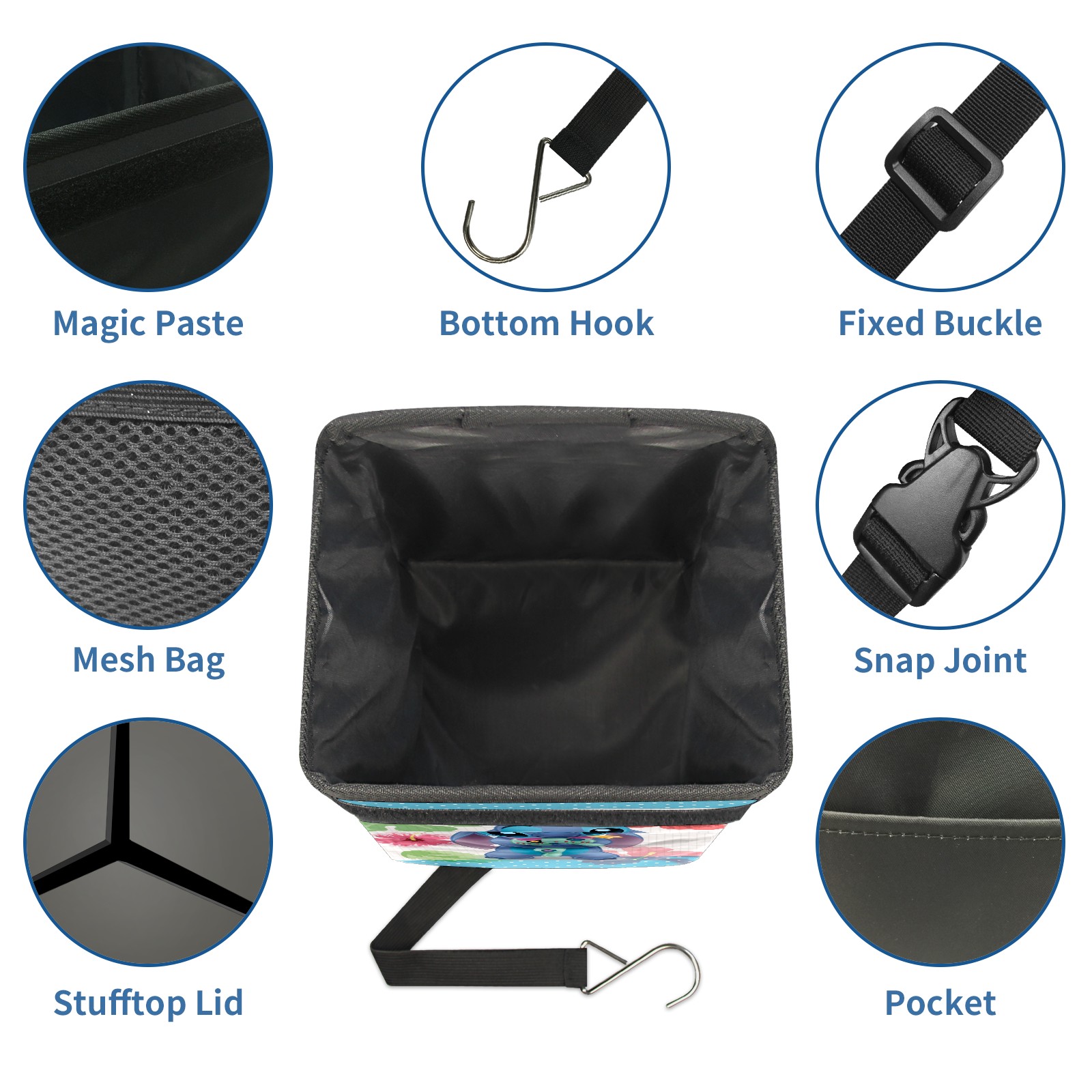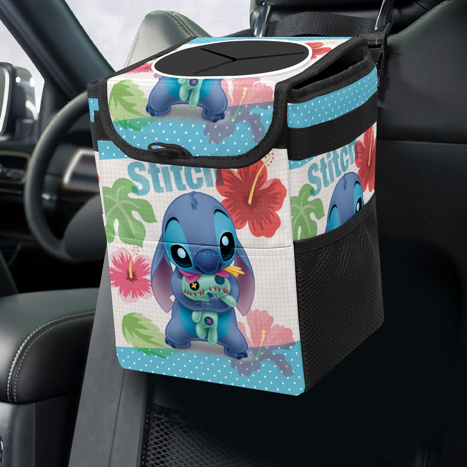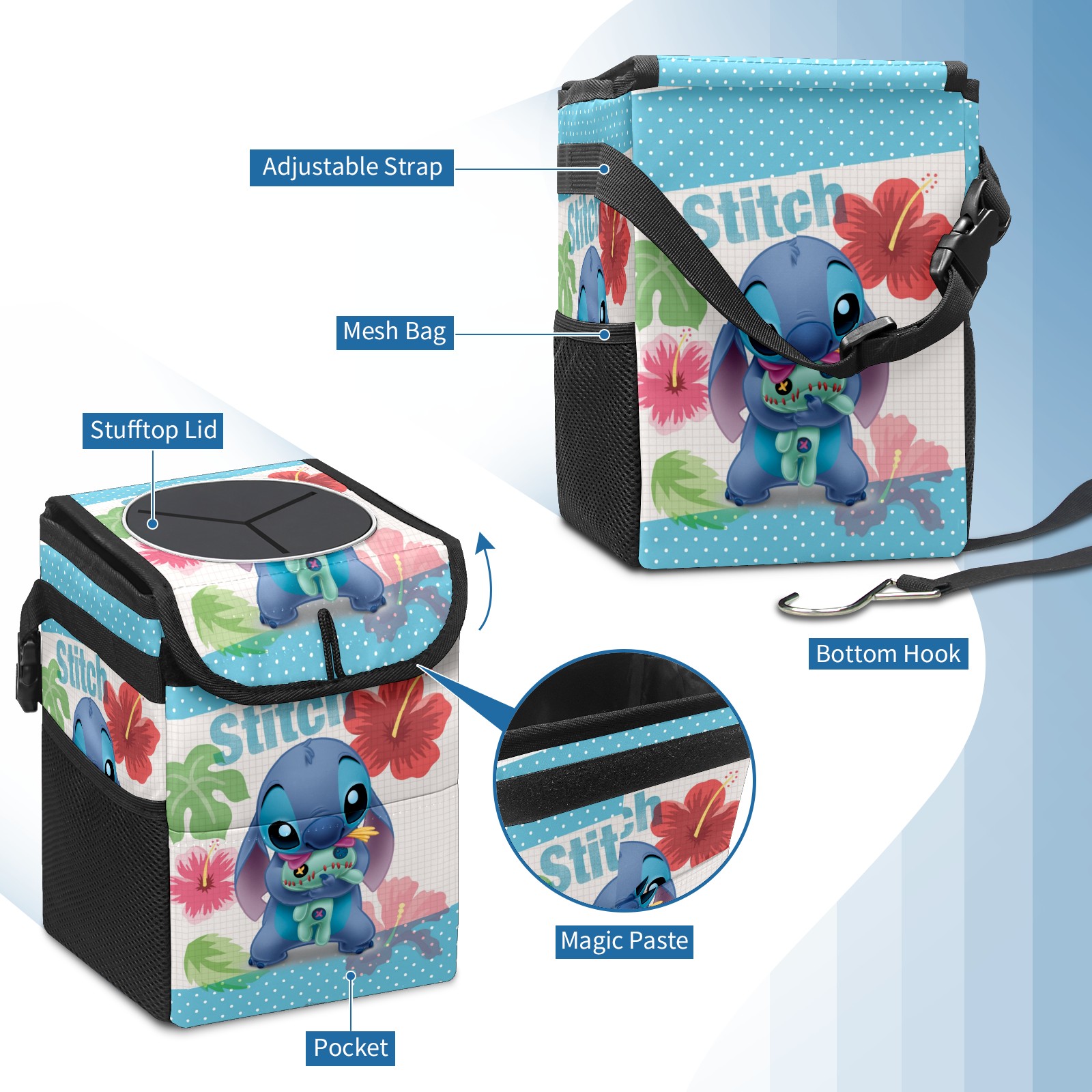 Car Trash Can with Lid, Small Portable Hanging Automotive Garbage Bin for Vehicles, Leakproof Waste Bag Container for SUV Truck Van Interior Auto Travel Road Trips(Lilo Stich Stitch With Ugly Doll)