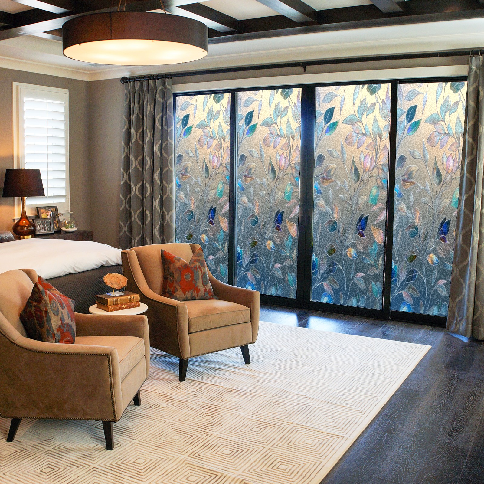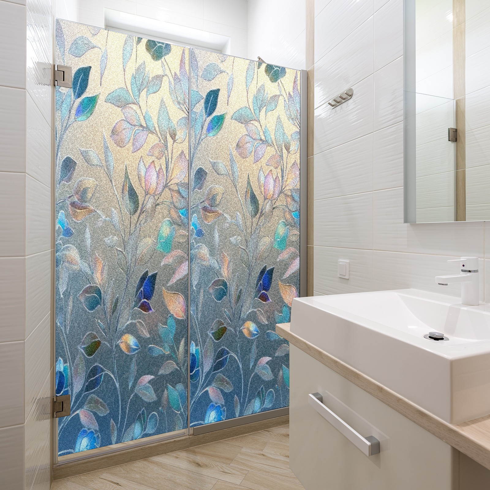 Фильм для окон приватный, матовый, под цветное стекло, декоративный статически клеящийся, для ванной и домашнего офиса, Tulip Leaves And Flowers