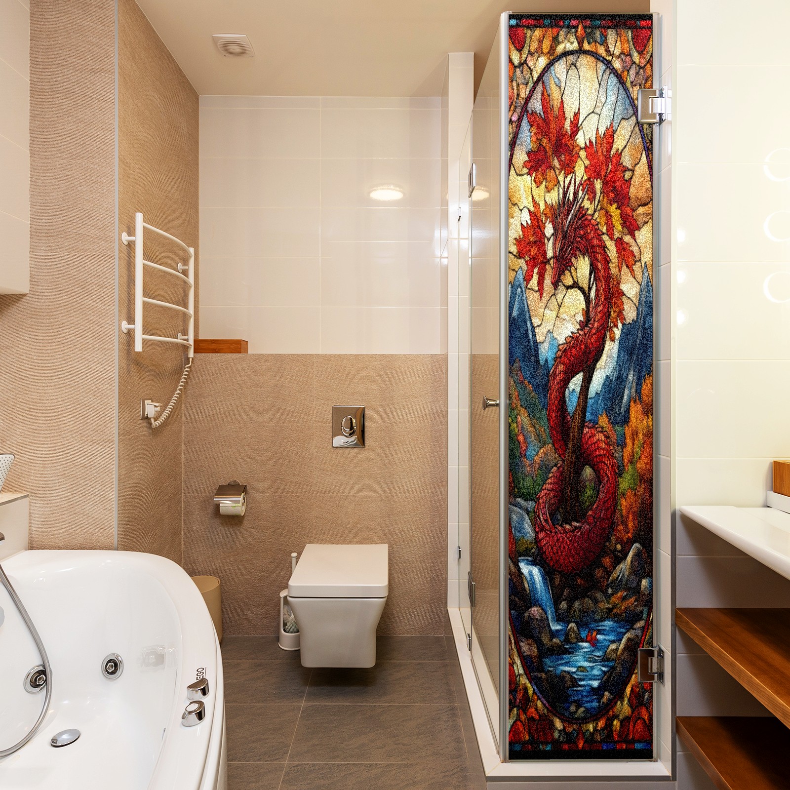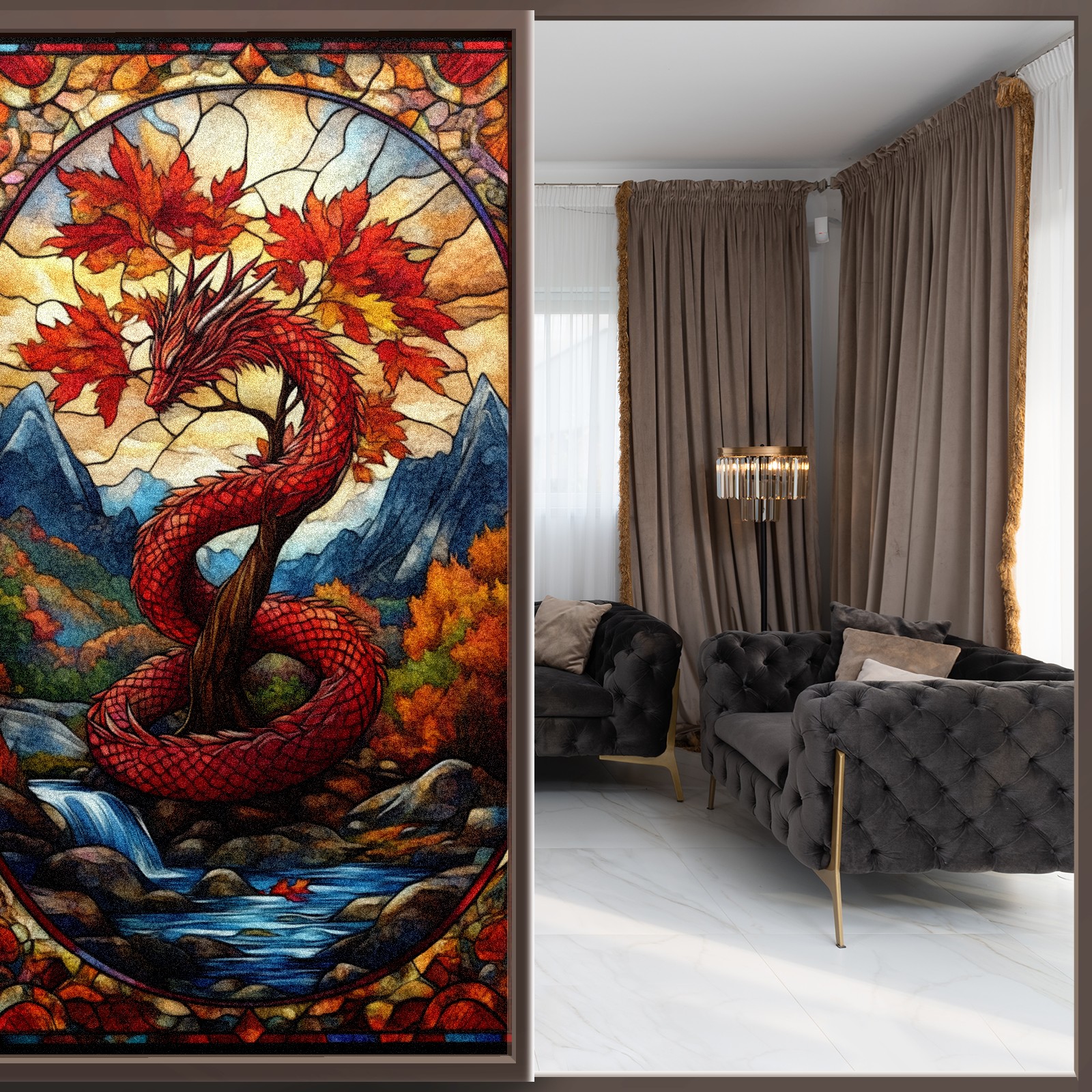 Фильм для окон приватный, матовый, под цветное стекло, декоративный статически клеящийся, для ванной и домашнего офиса, Tulip Red Dragon And Maple Tree