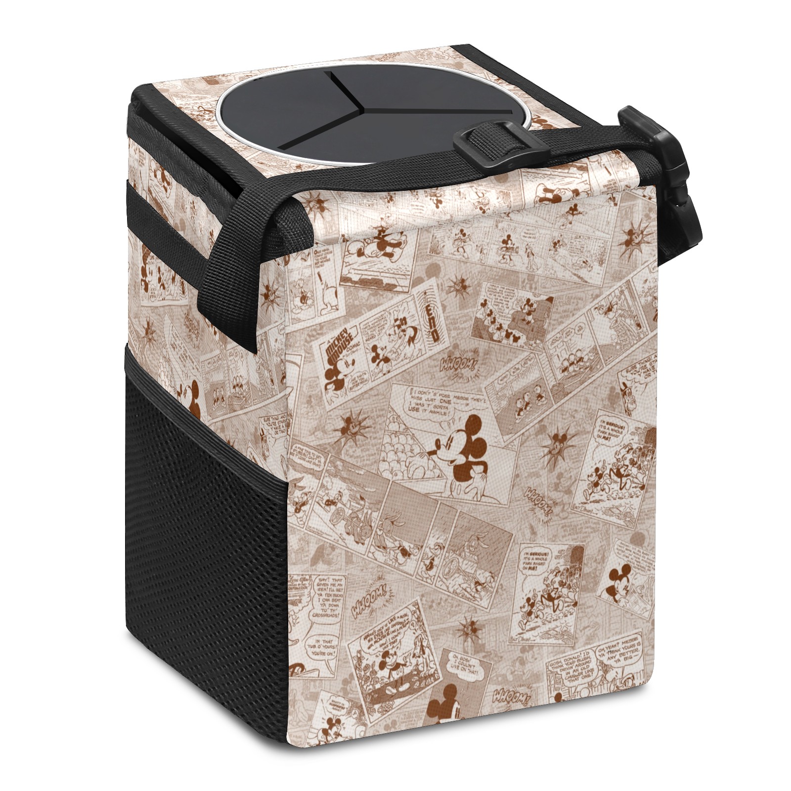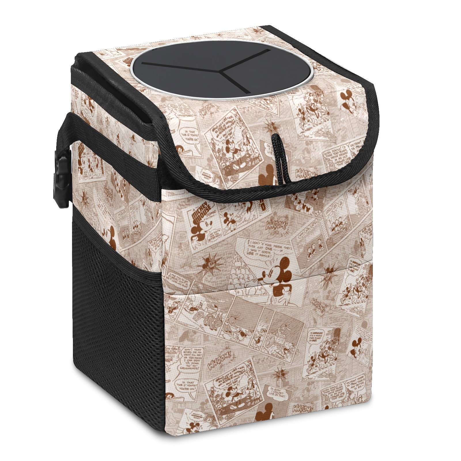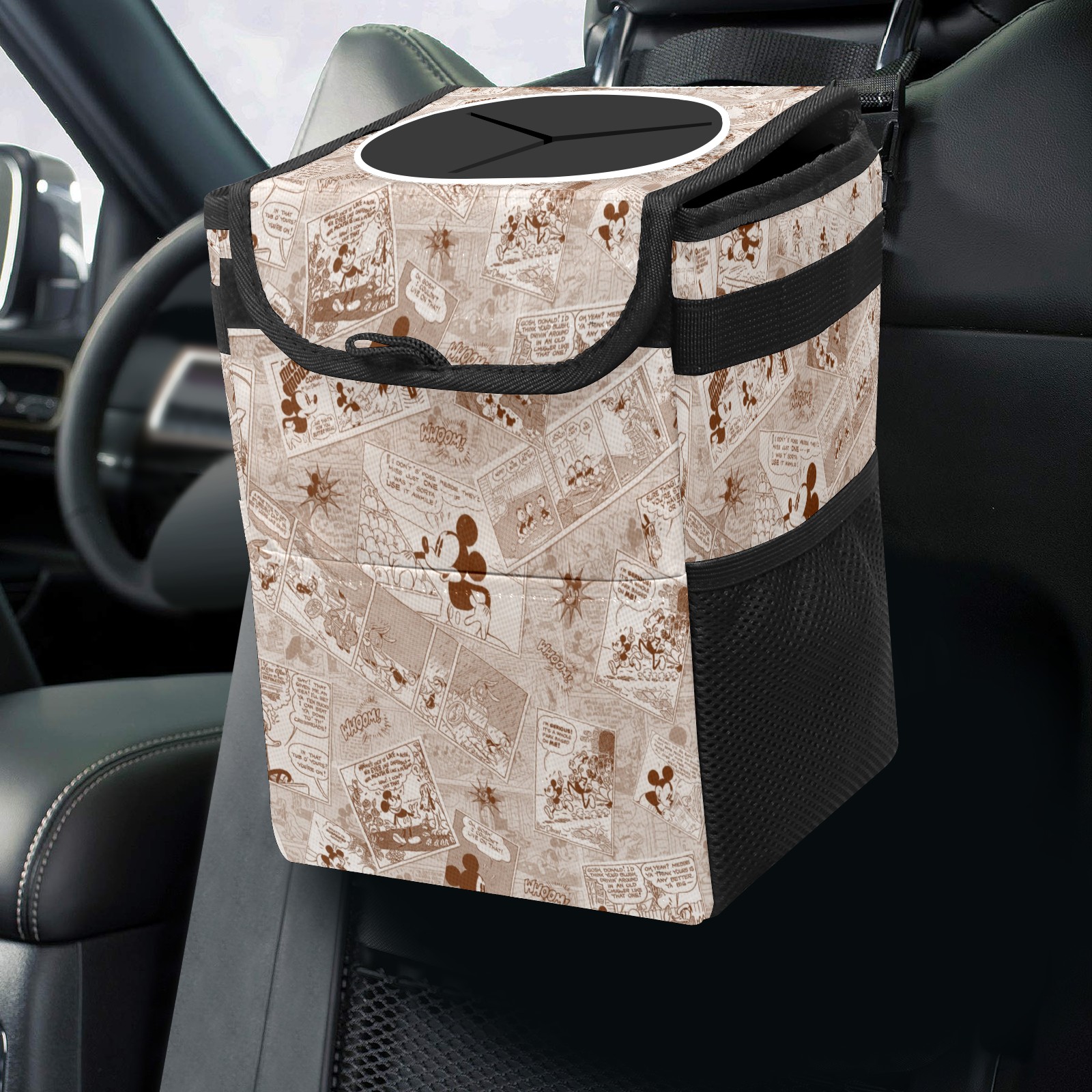 Car Trash Can with Lid, Small Portable Hanging Automotive Garbage Bin for Vehicles, Leakproof Waste Bag Container for SUV Truck Van Interior Auto Travel Road Trips(Mickey Mouse Antique Mickey)