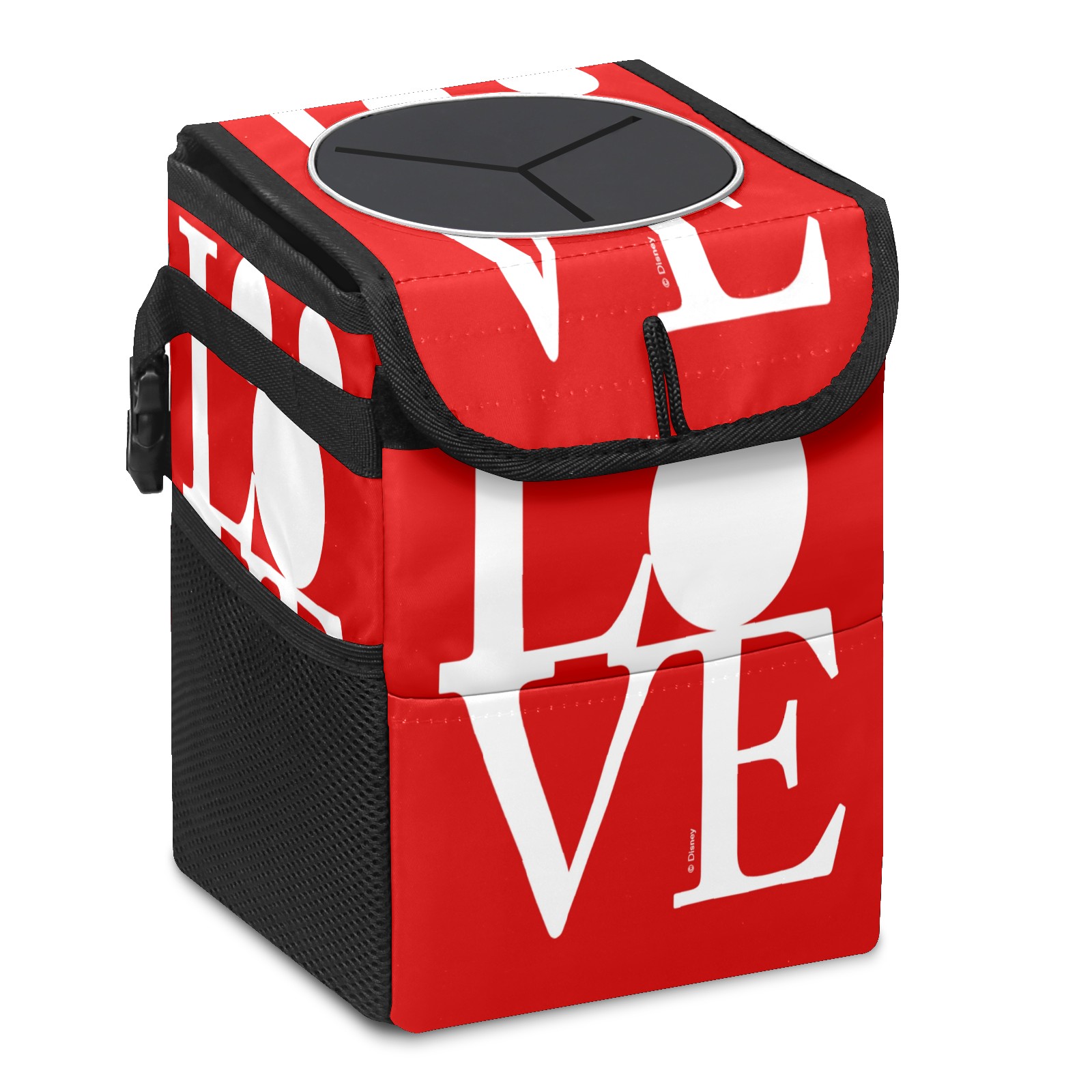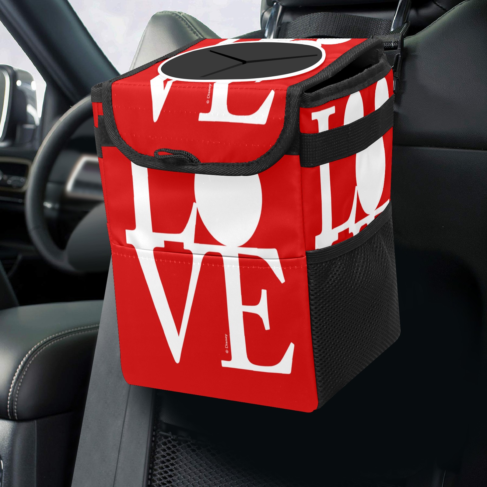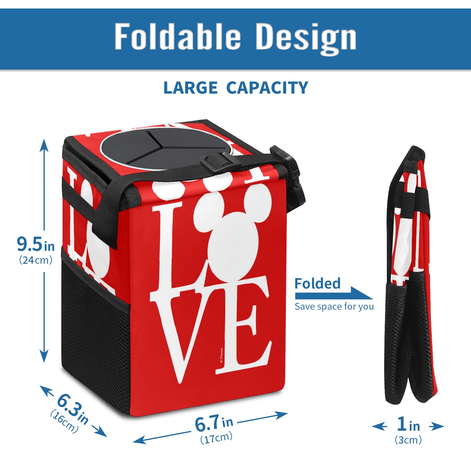 Car Trash Can with Lid, Small Portable Hanging Automotive Garbage Bin for Vehicles, Leakproof Waste Bag Container for SUV Truck Van Interior Auto Travel Road Trips(Mickey Mouse LOVE Valentine's Day Red)