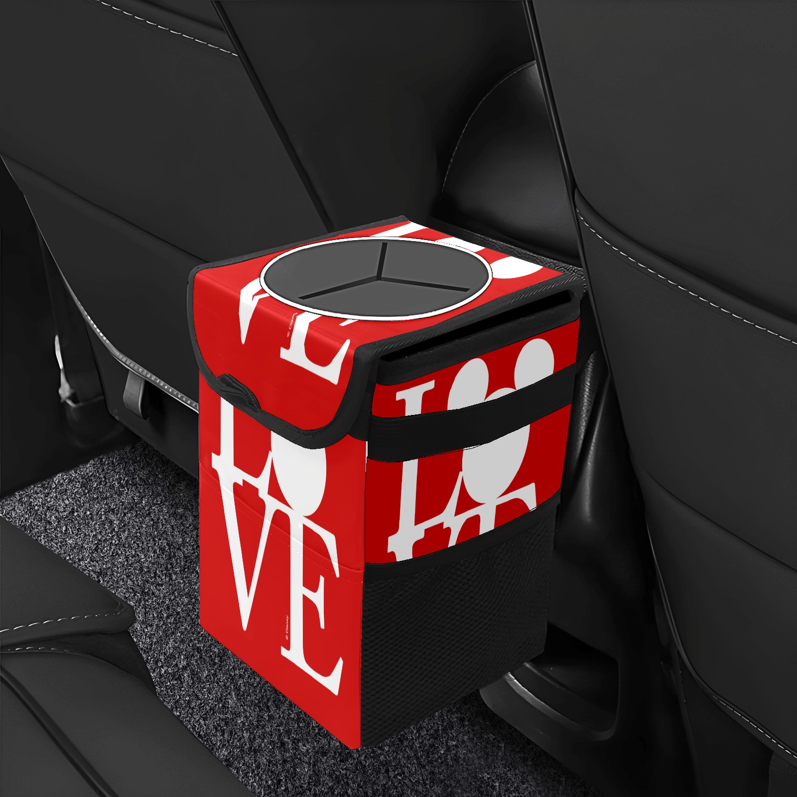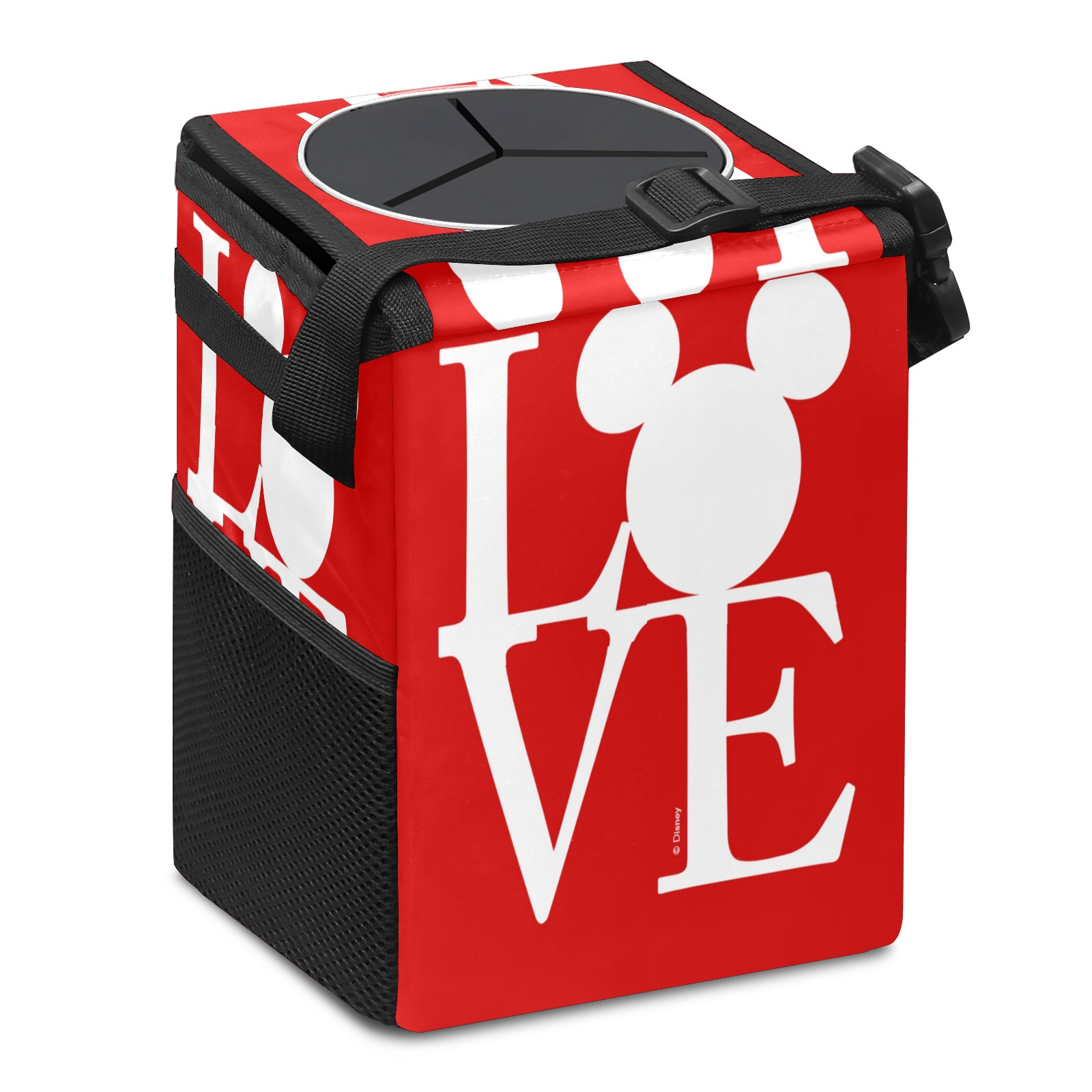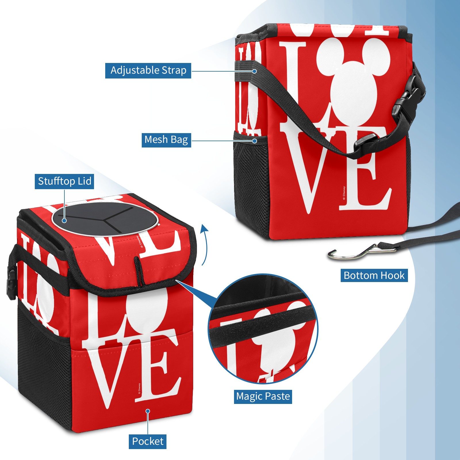 Car Trash Can with Lid, Small Portable Hanging Automotive Garbage Bin for Vehicles, Leakproof Waste Bag Container for SUV Truck Van Interior Auto Travel Road Trips(Mickey Mouse LOVE Valentine's Day Red)