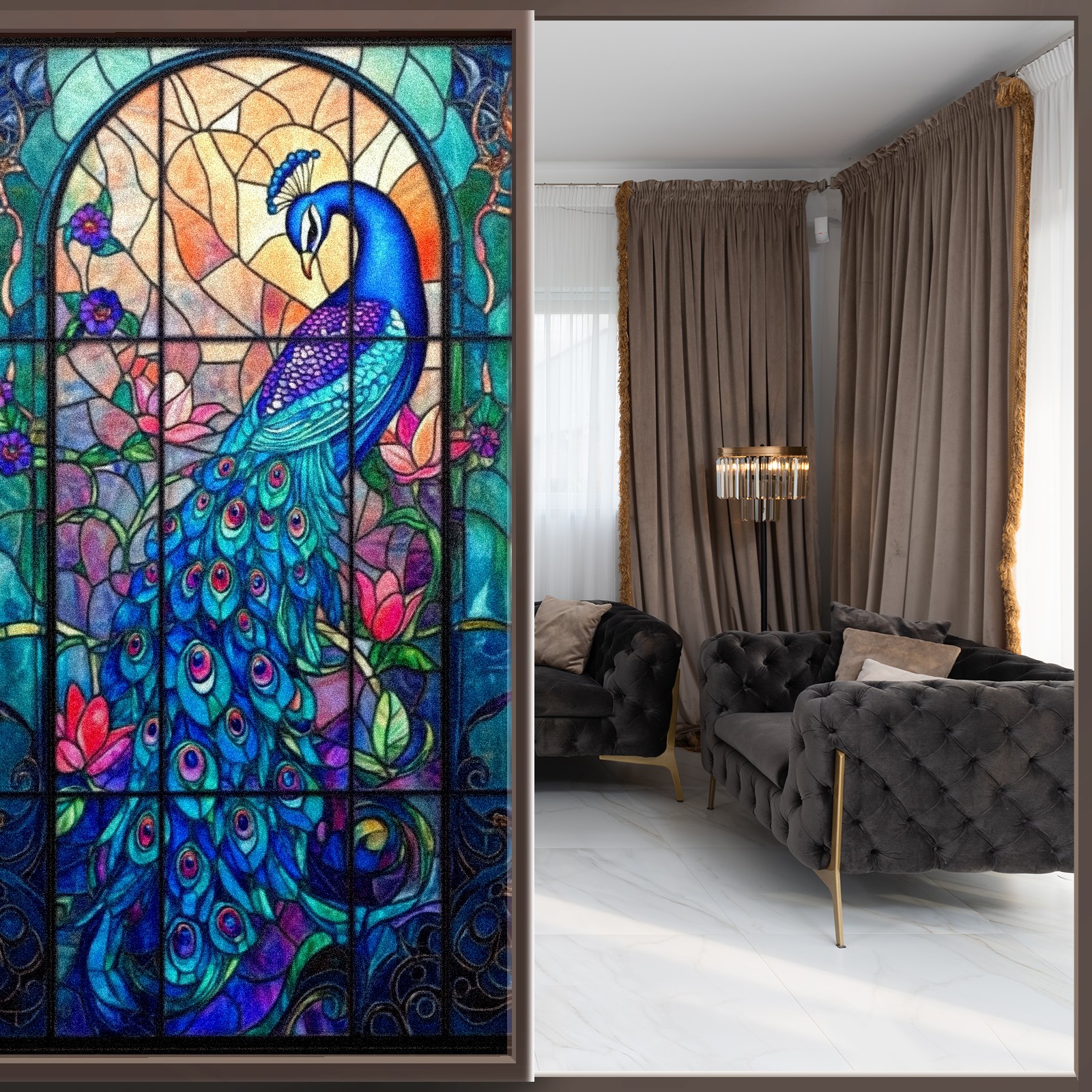 Фильм для окон приватный, матовый, под цветное стекло, декоративный статически клеящийся, для ванной и домашнего офиса, Tulip Beautiful Peacock