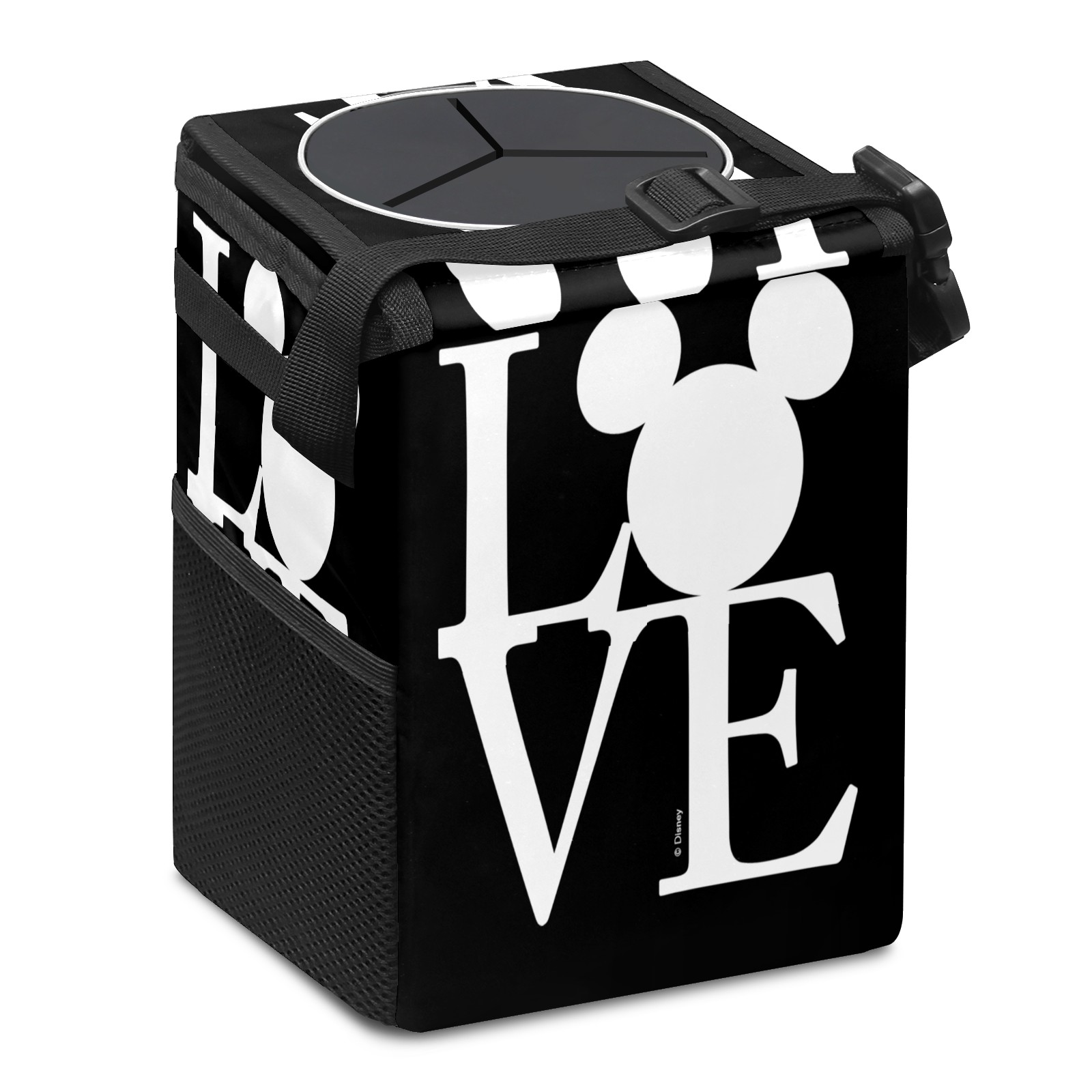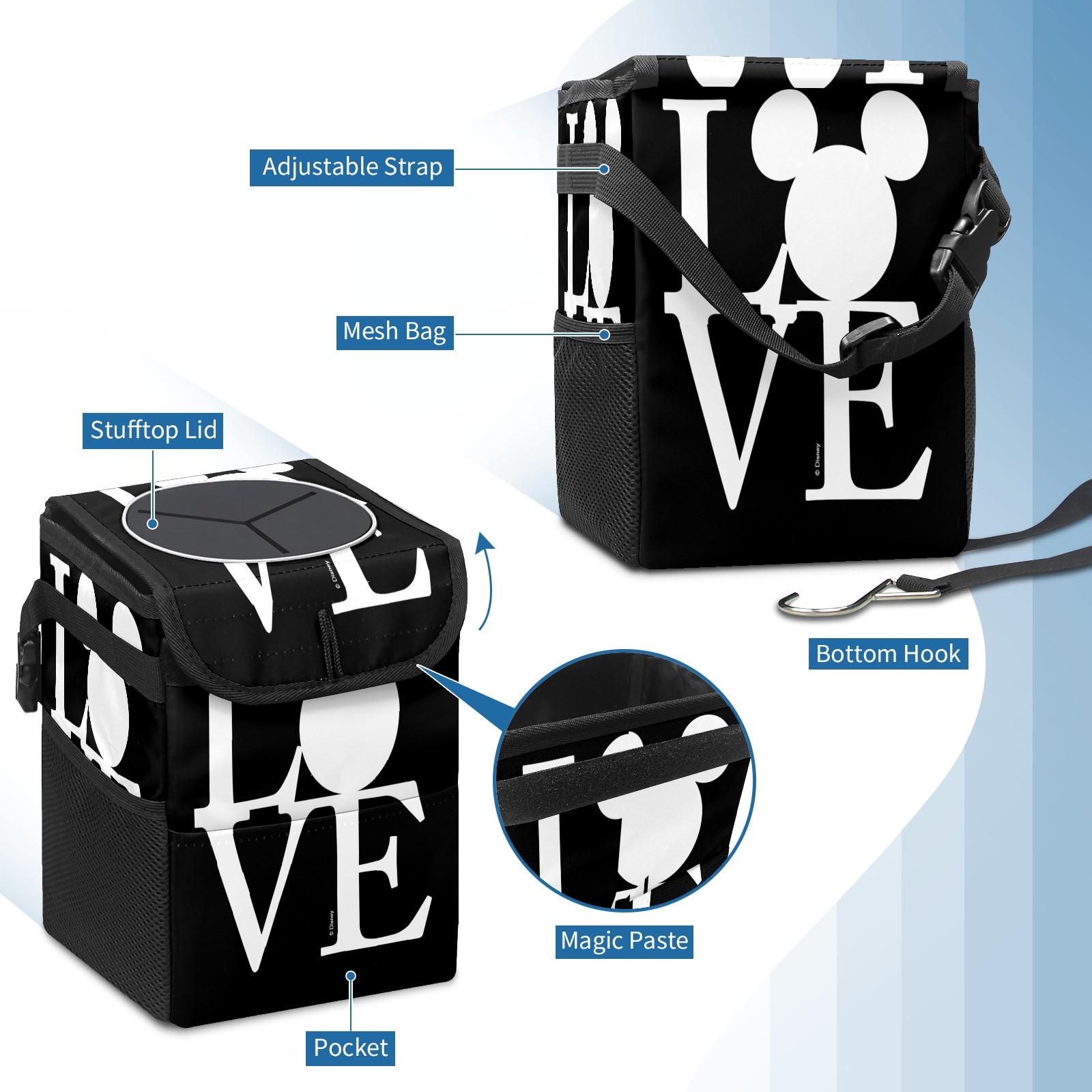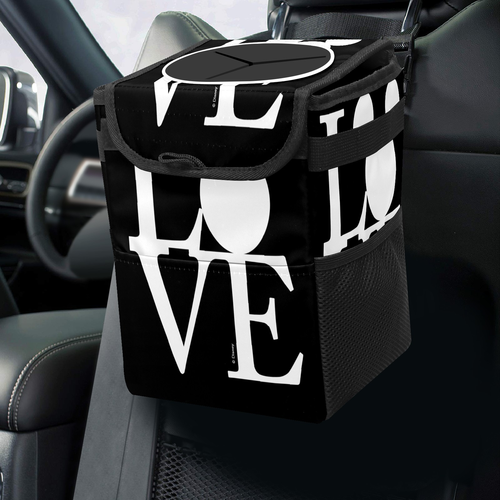 Car Trash Can with Lid, Small Portable Hanging Automotive Garbage Bin for Vehicles, Leakproof Waste Bag Container for SUV Truck Van Interior Auto Travel Road Trips(Mickey Mouse LOVE Valentine's Day Black)