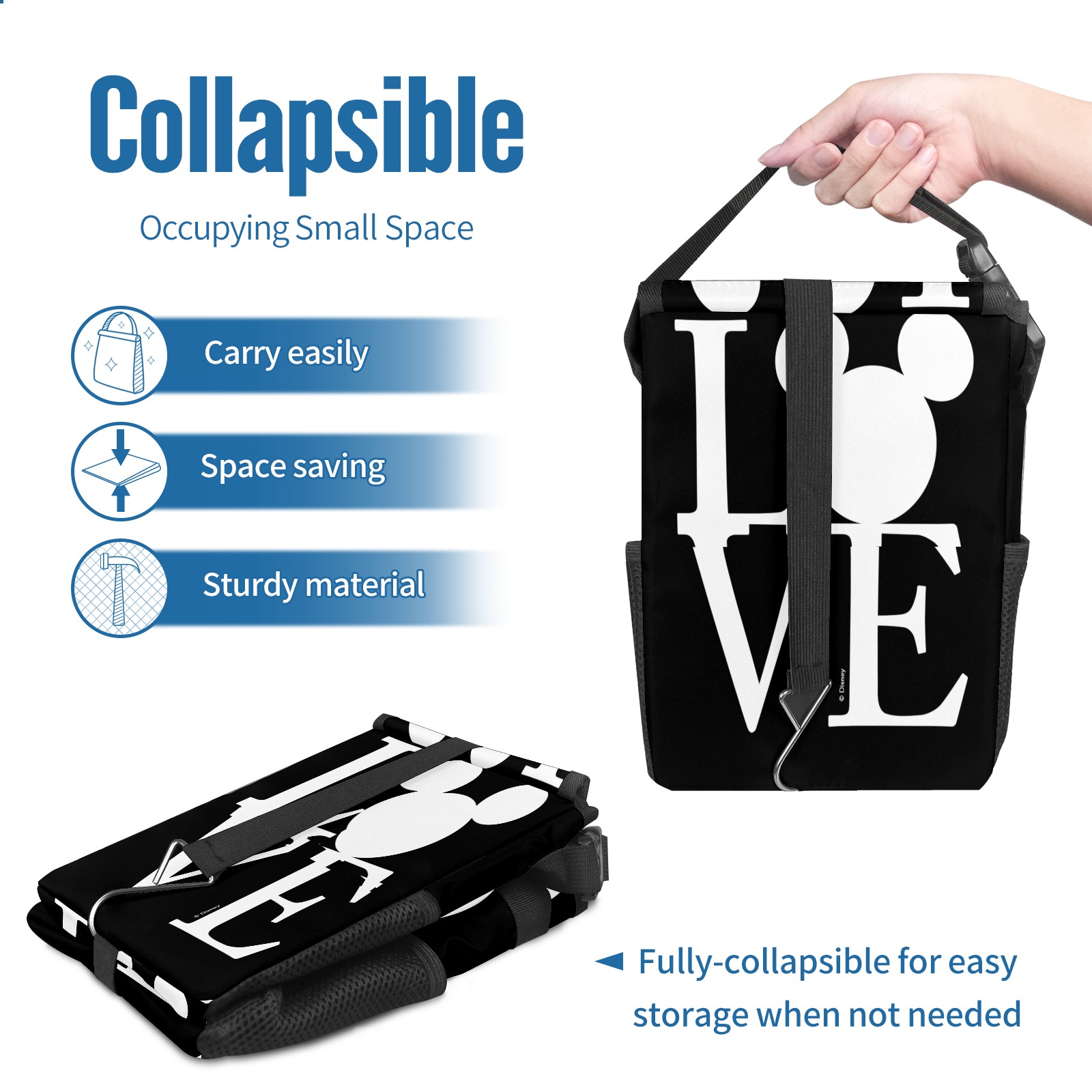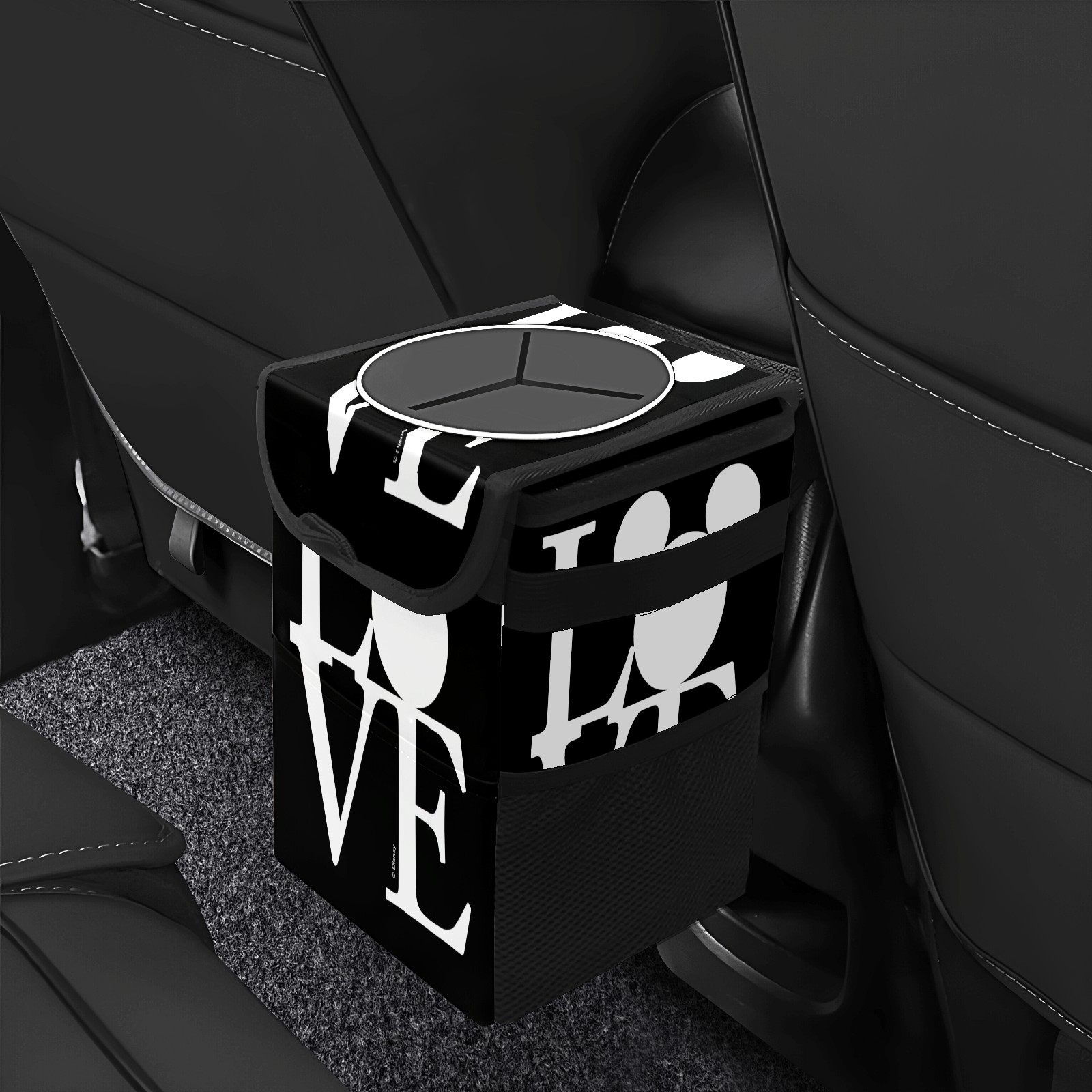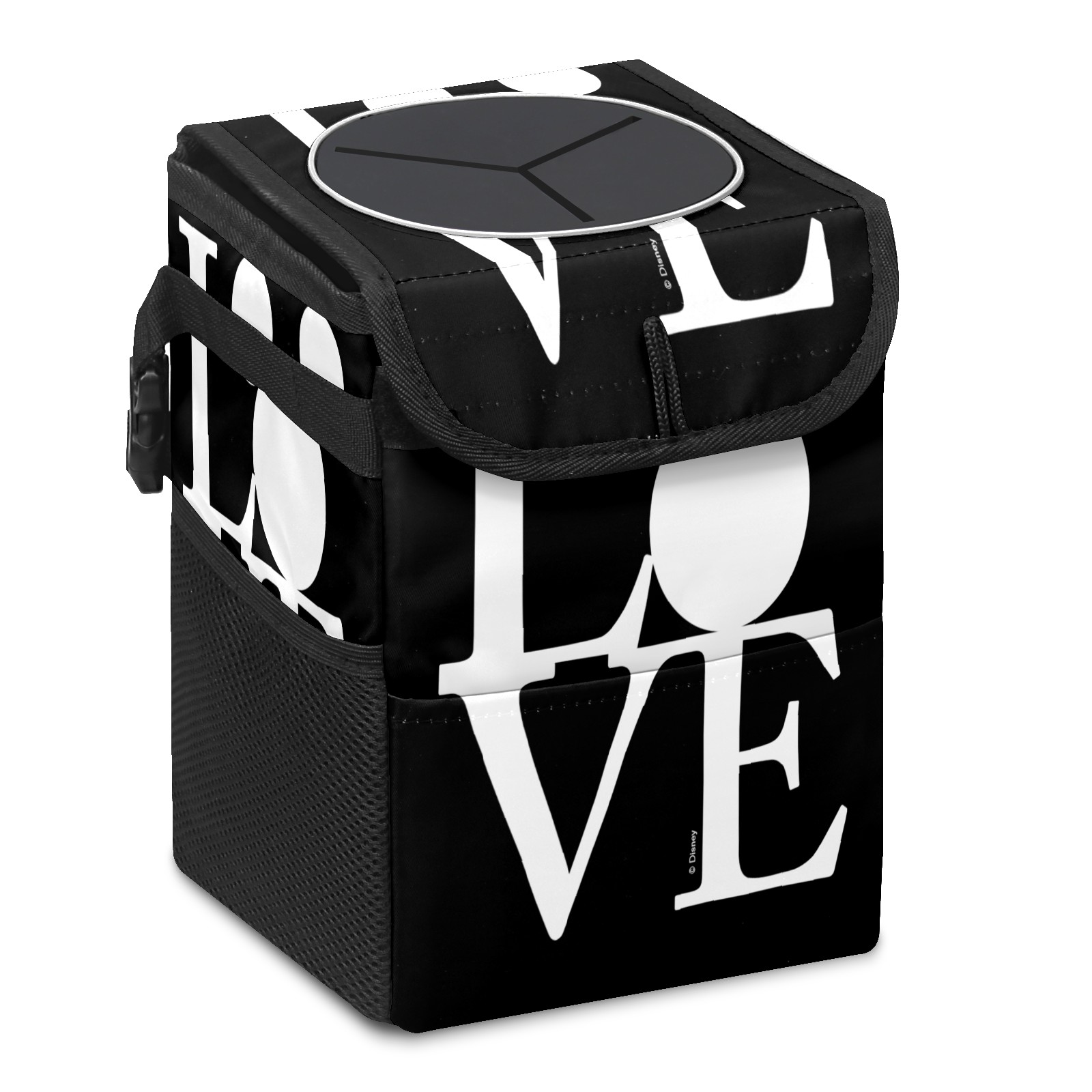 Car Trash Can with Lid, Small Portable Hanging Automotive Garbage Bin for Vehicles, Leakproof Waste Bag Container for SUV Truck Van Interior Auto Travel Road Trips(Mickey Mouse LOVE Valentine's Day Black)