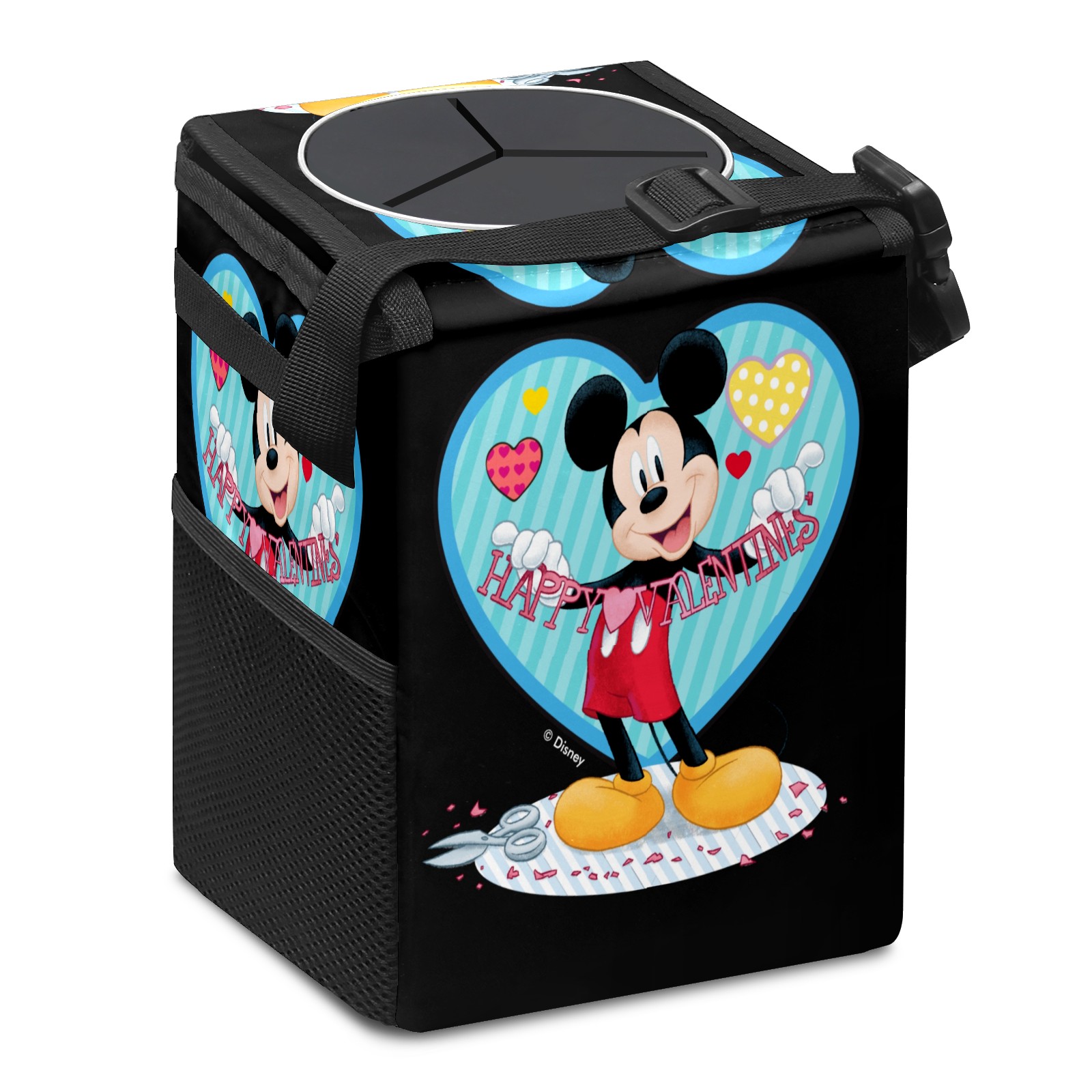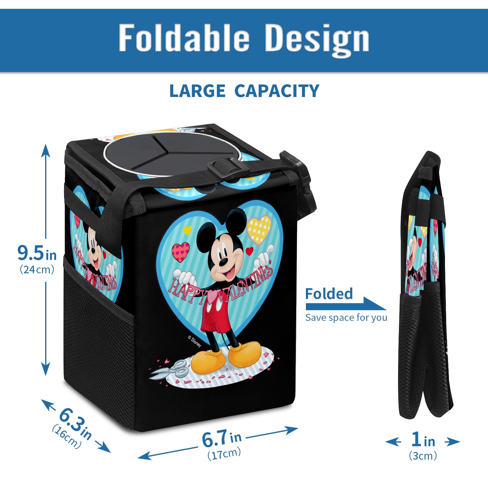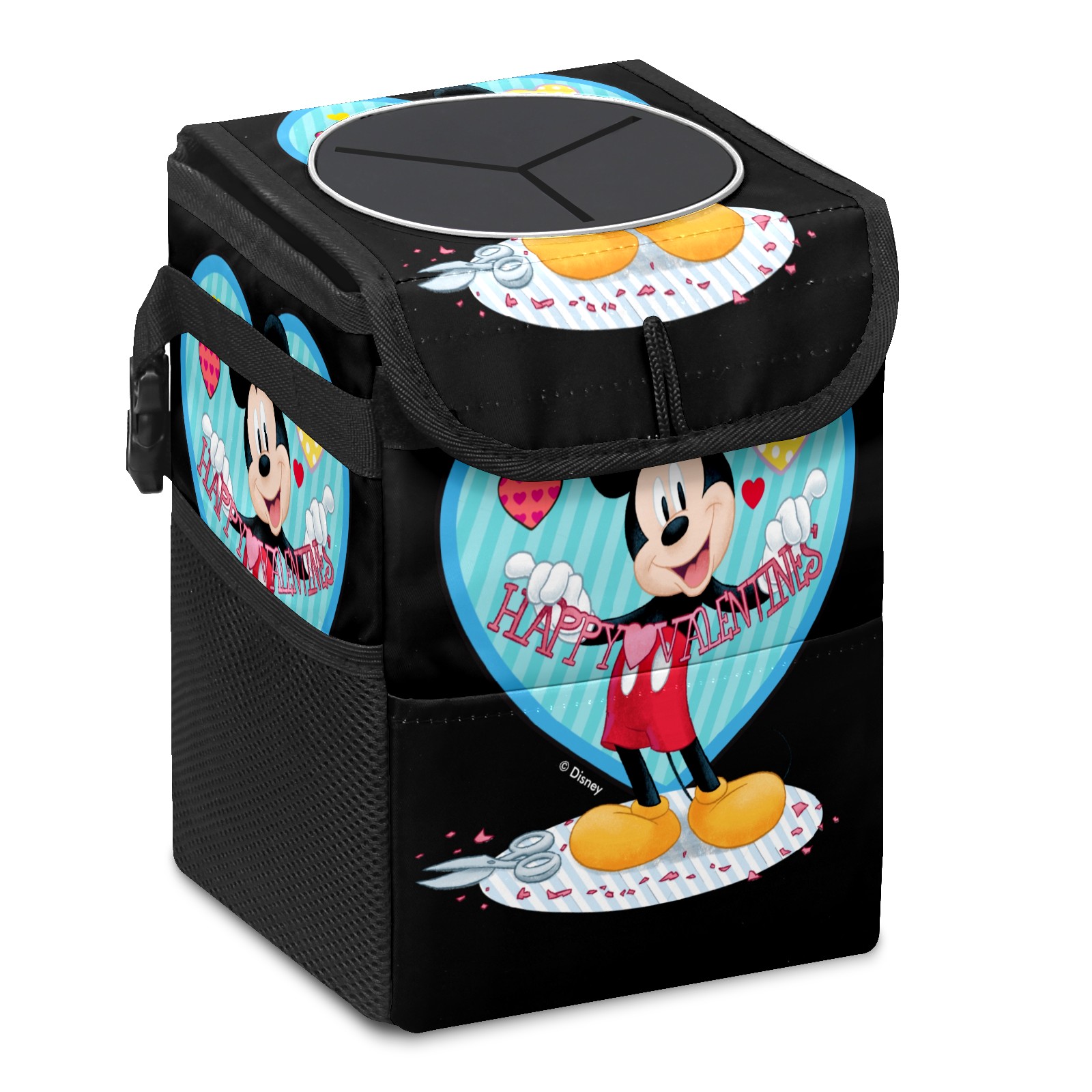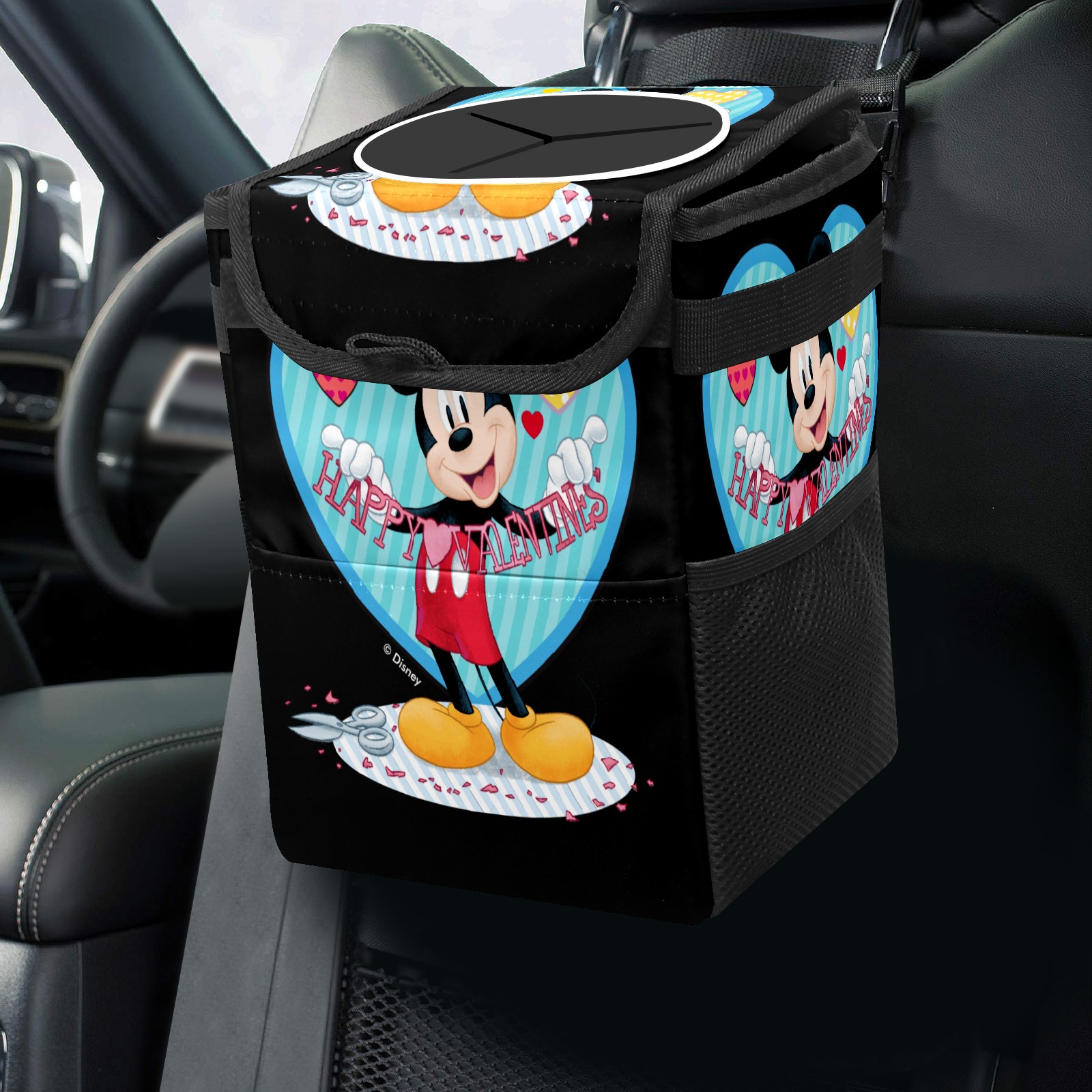 Car Trash Can with Lid, Small Portable Hanging Automotive Garbage Bin for Vehicles, Leakproof Waste Bag Container for SUV Truck Van Interior Auto Travel Road Trips(Mickey Mouse Happy Valentines Day Black)