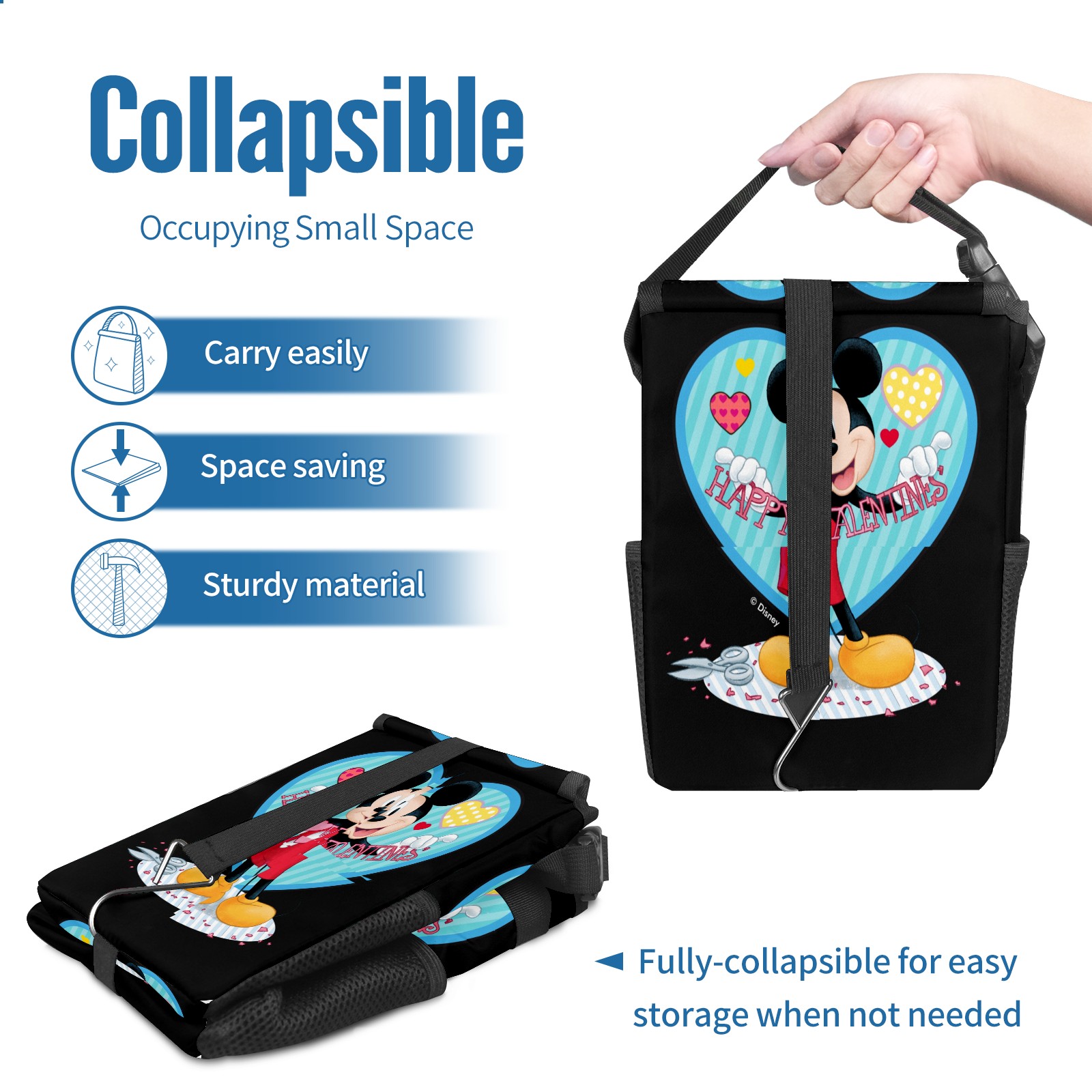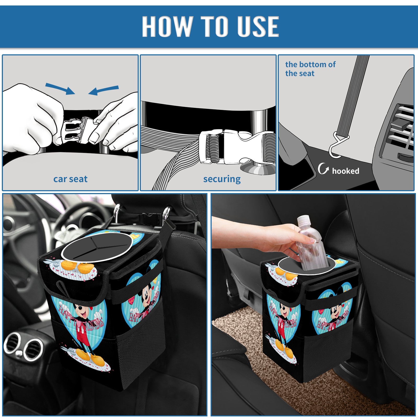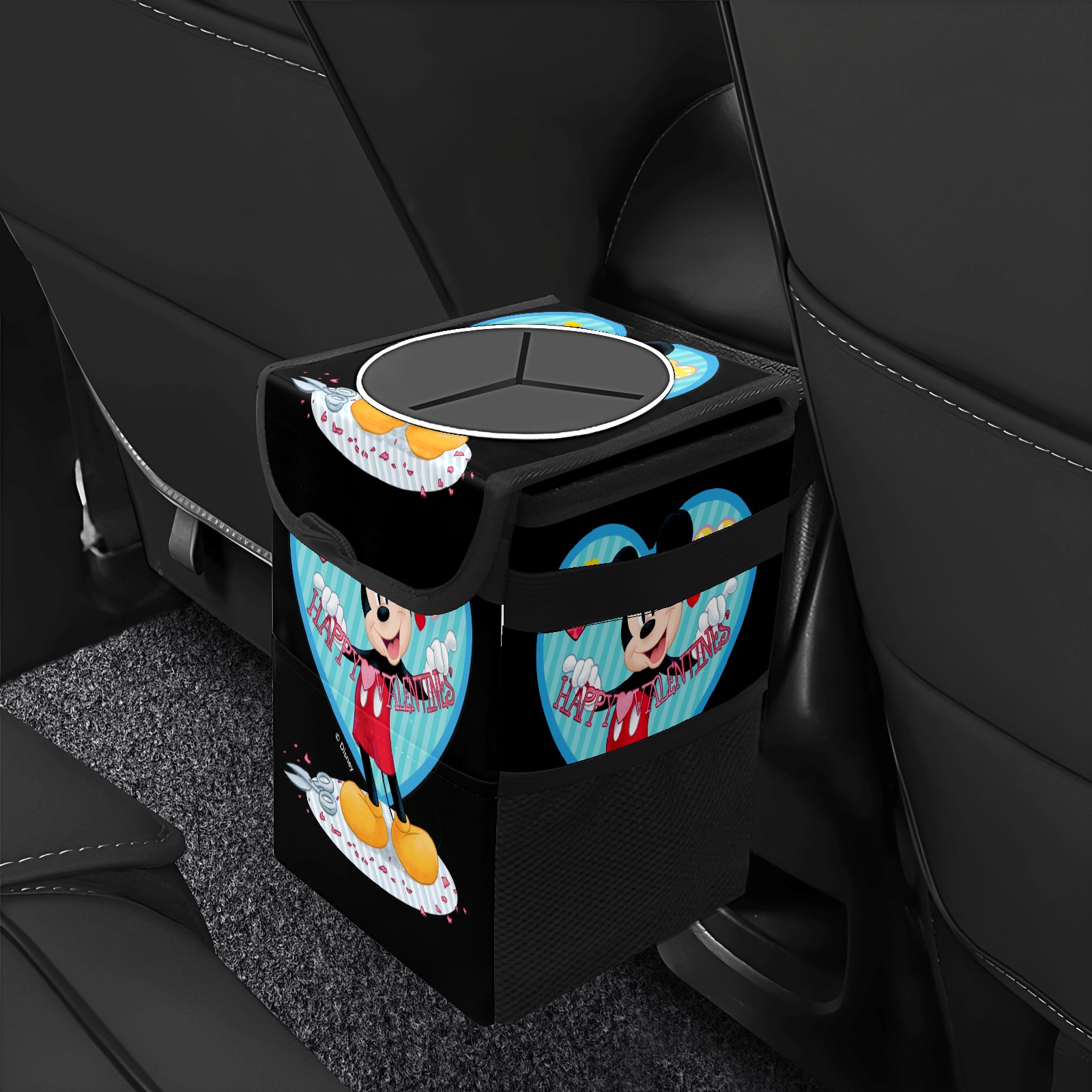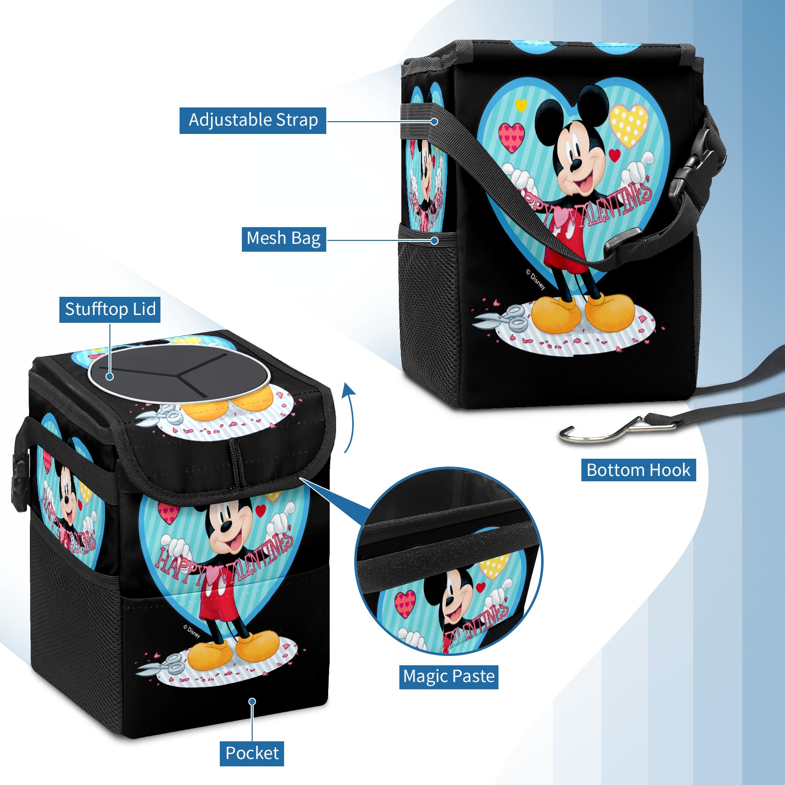 Car Trash Can with Lid, Small Portable Hanging Automotive Garbage Bin for Vehicles, Leakproof Waste Bag Container for SUV Truck Van Interior Auto Travel Road Trips(Mickey Mouse Happy Valentines Day Black)