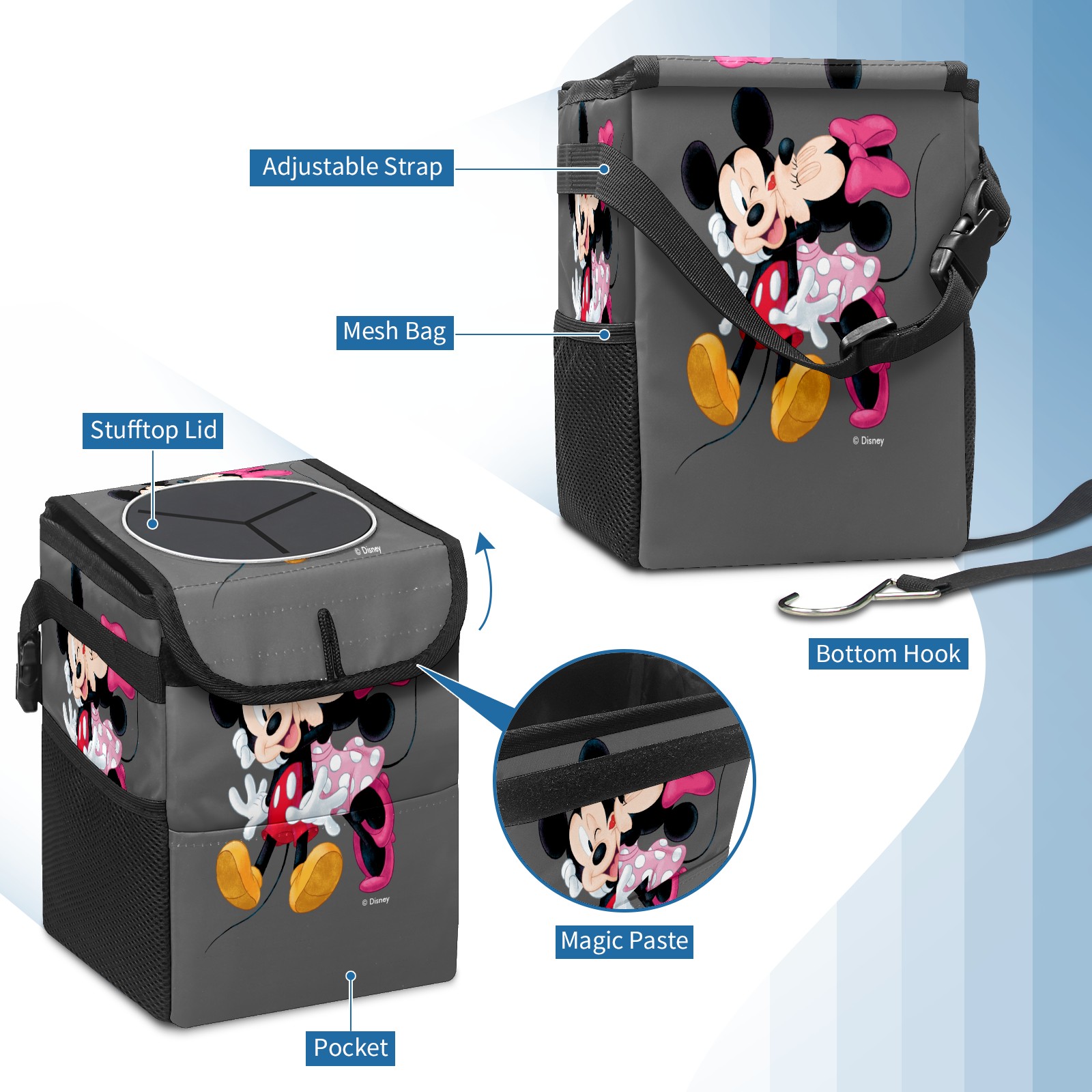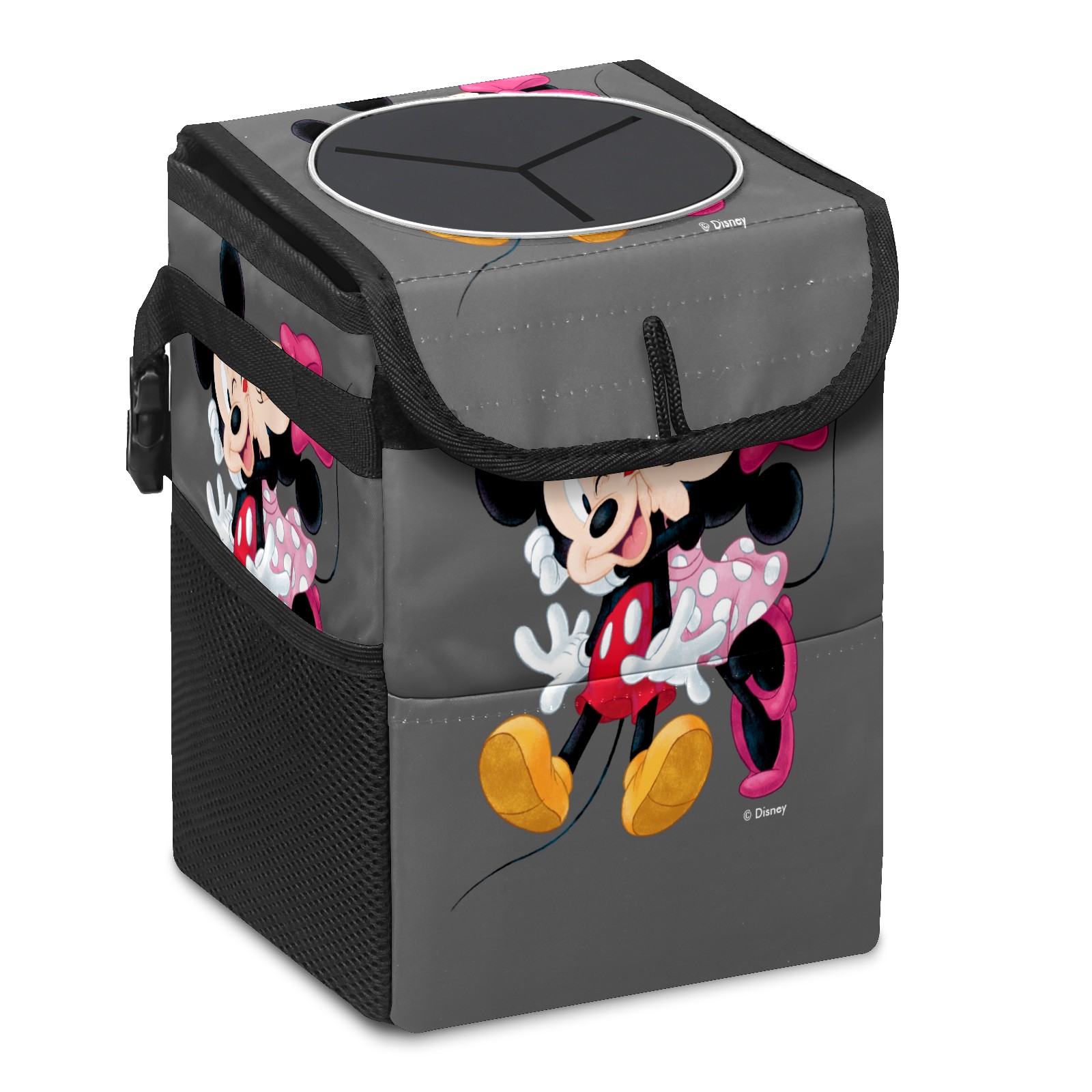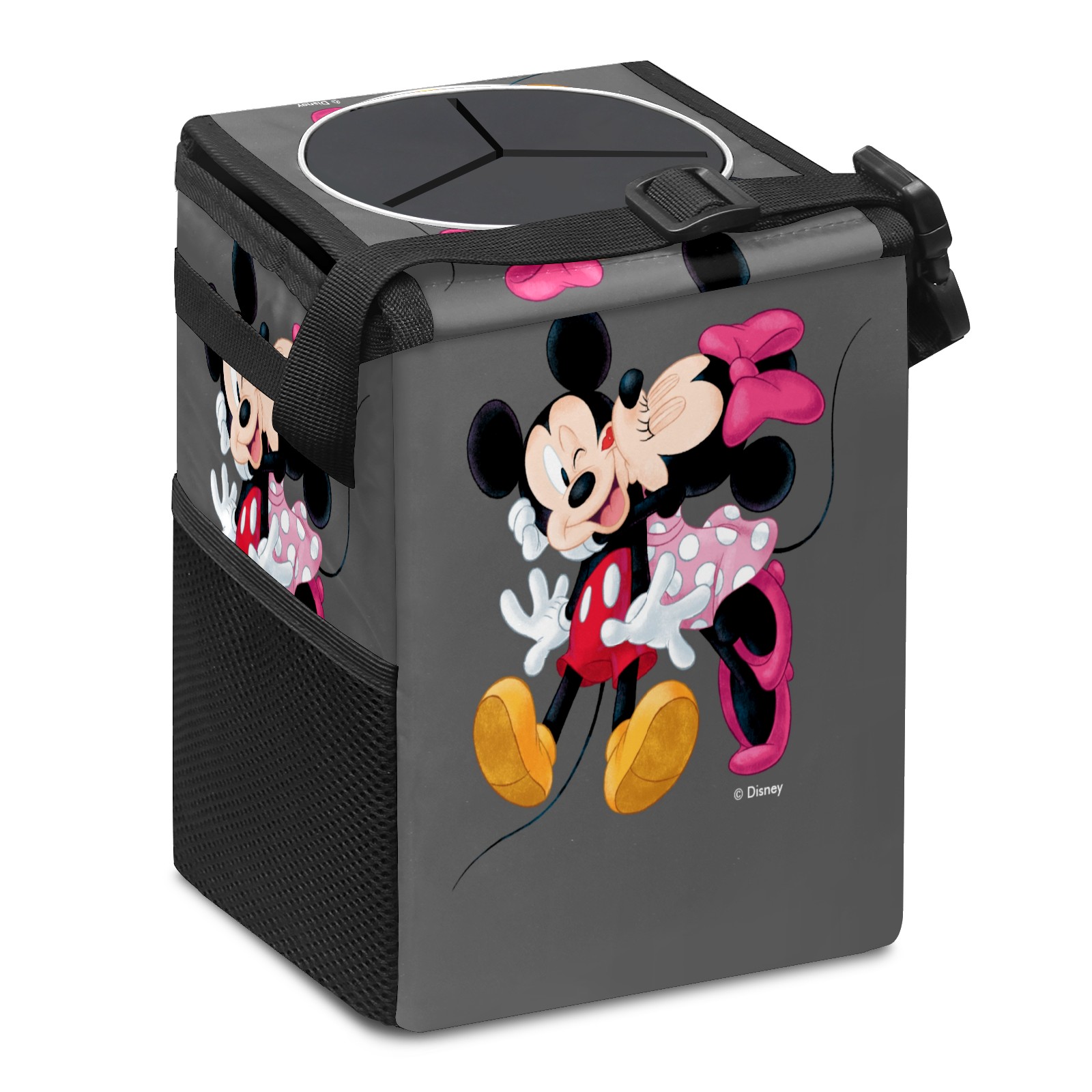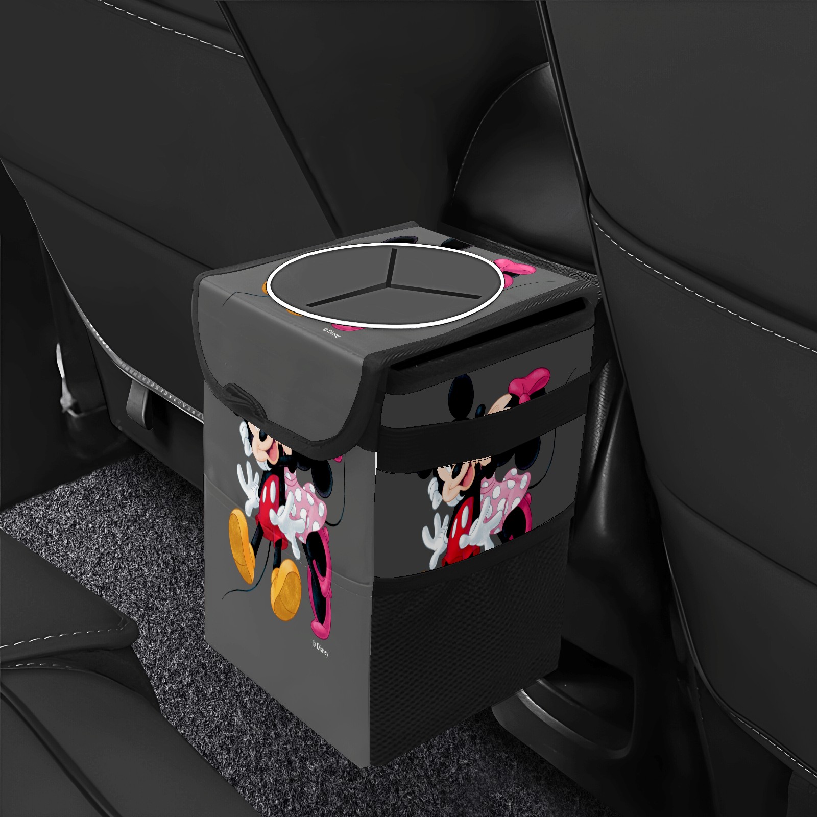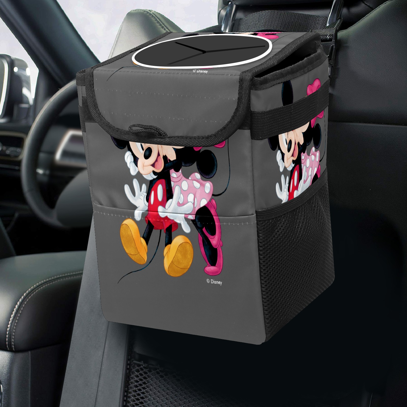 Car Trash Can with Lid, Small Portable Hanging Automotive Garbage Bin for Vehicles, Leakproof Waste Bag Container for SUV Truck Van Interior Auto Travel Road Trips(Mickey And Minnie Valentine's Day)