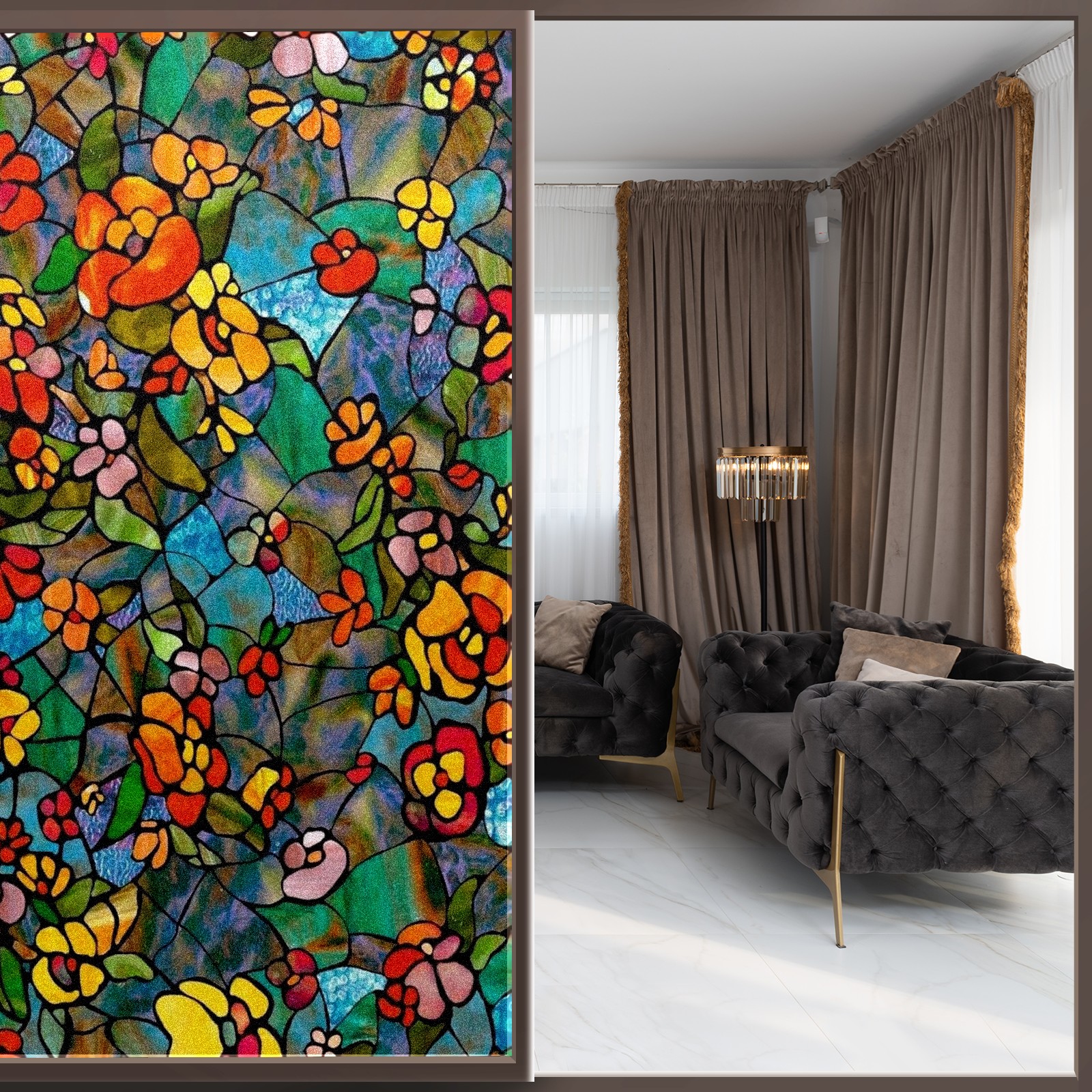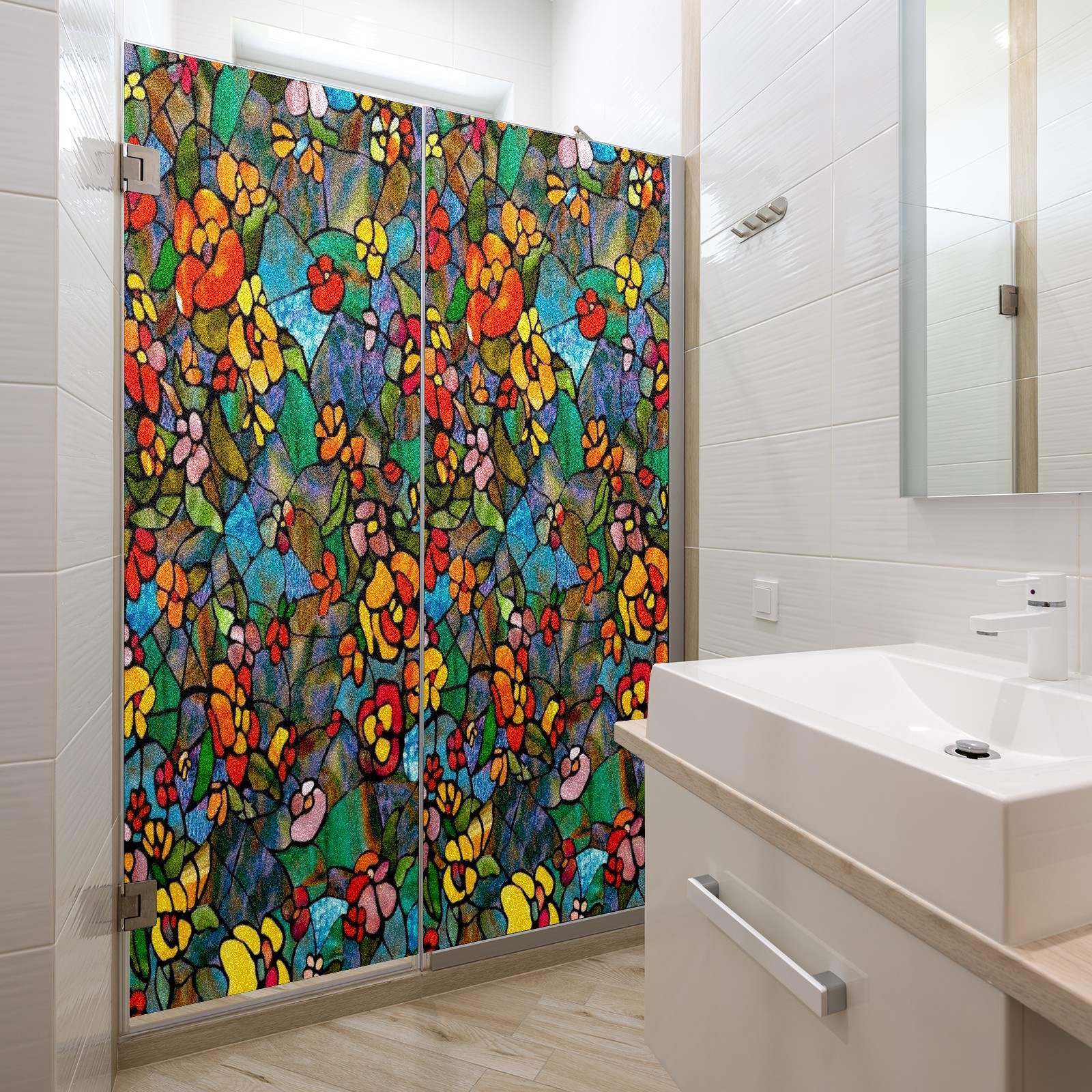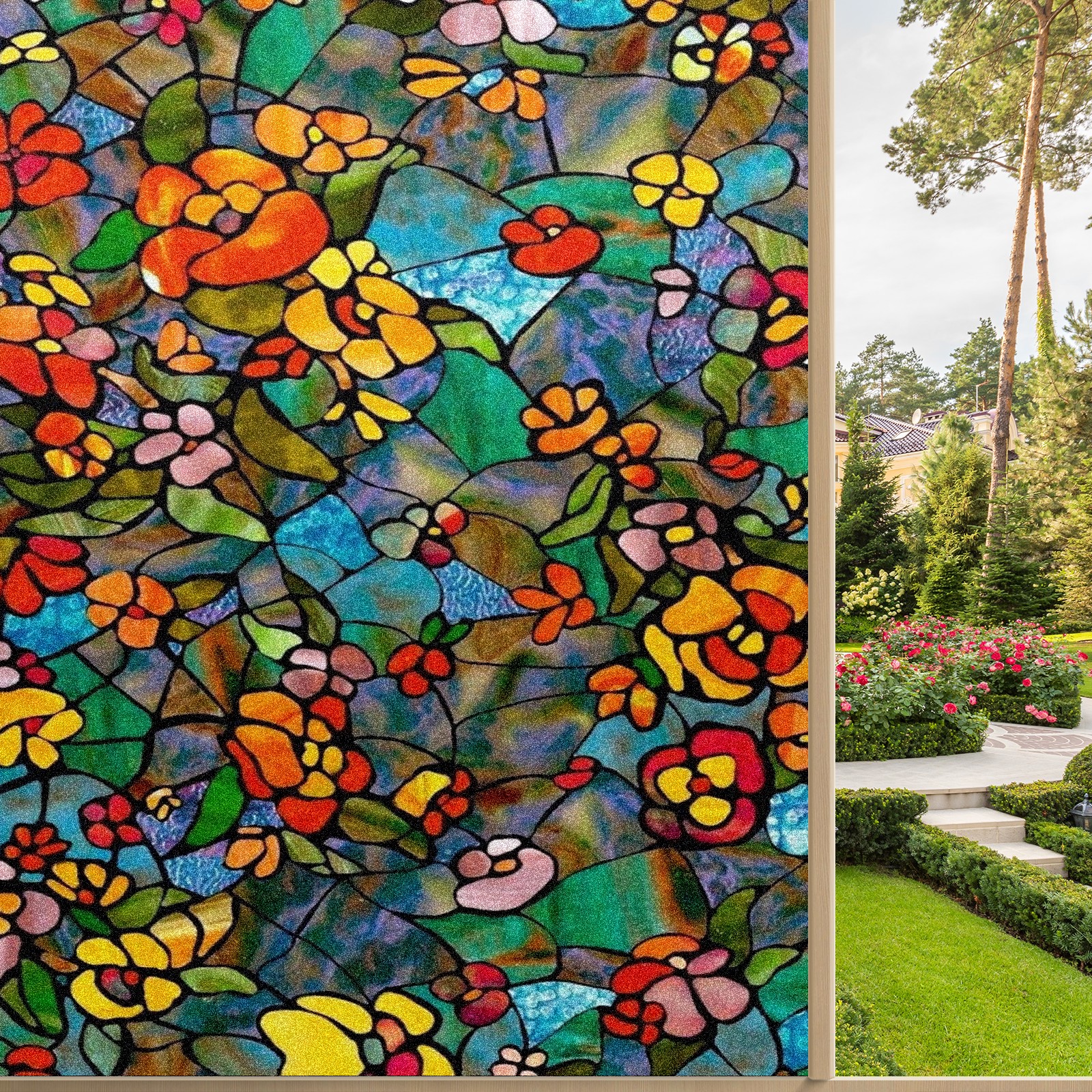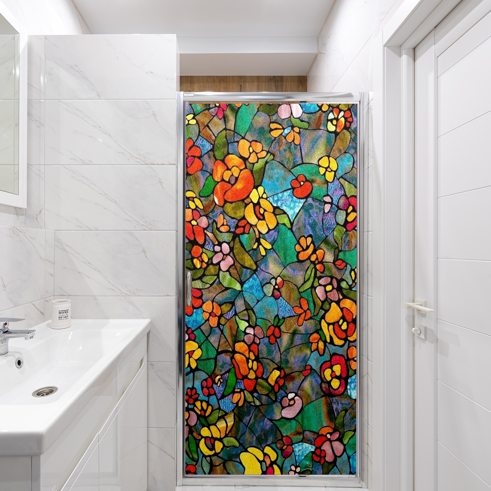 Фильм для окон приватный, матовый, под цветное стекло, декоративный статически клеящийся, для ванной и домашнего офиса, Tulip Colorful Floral