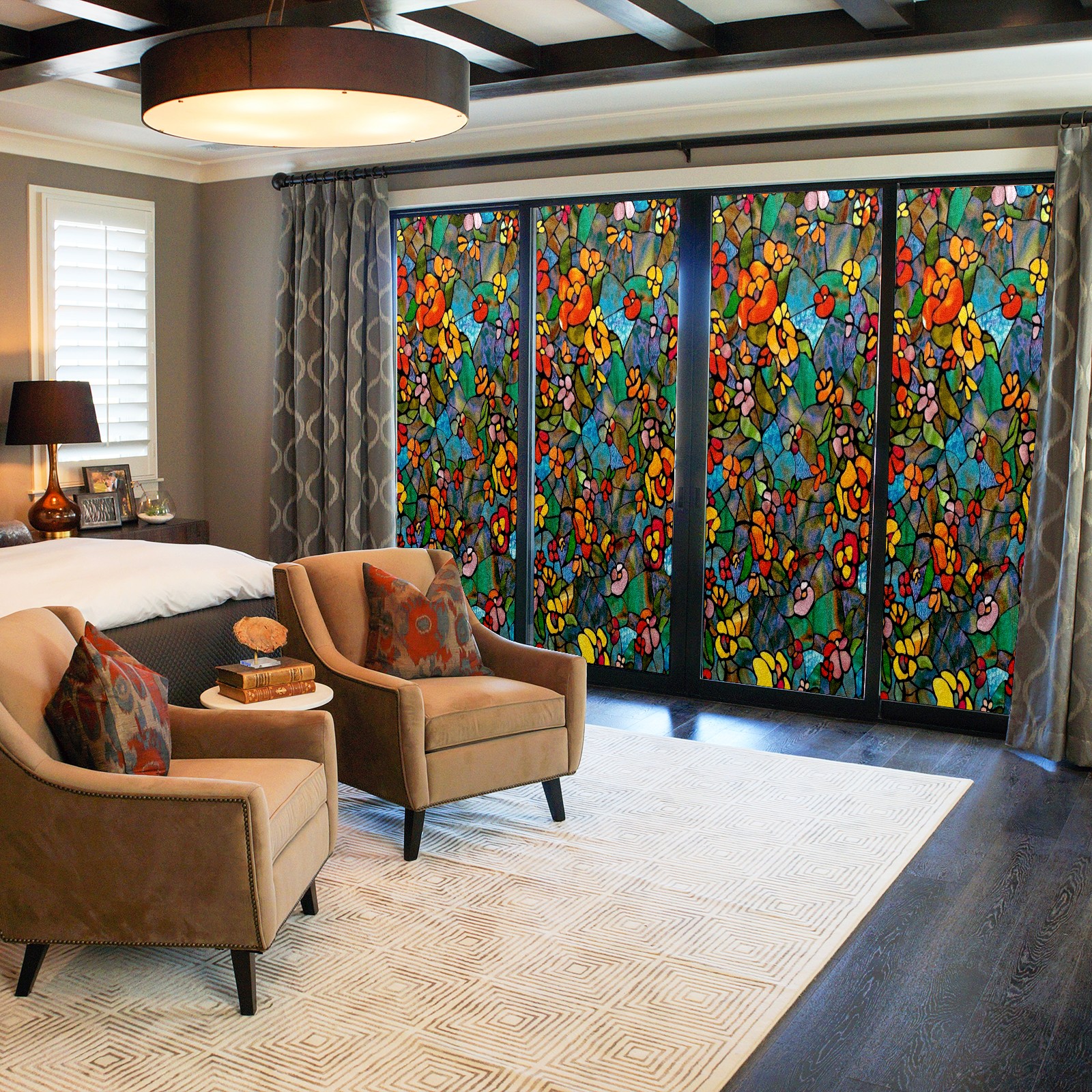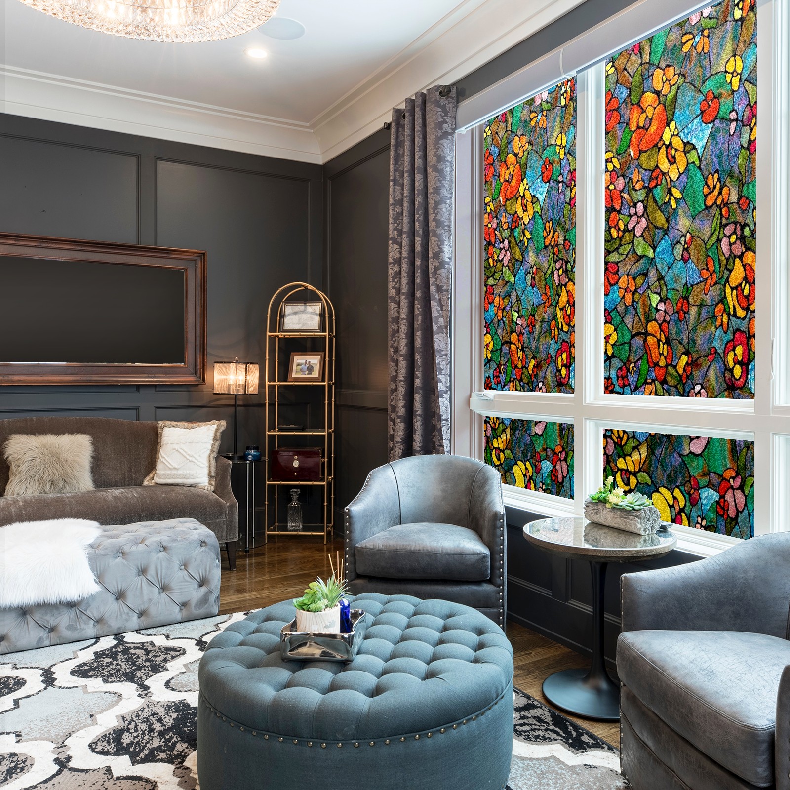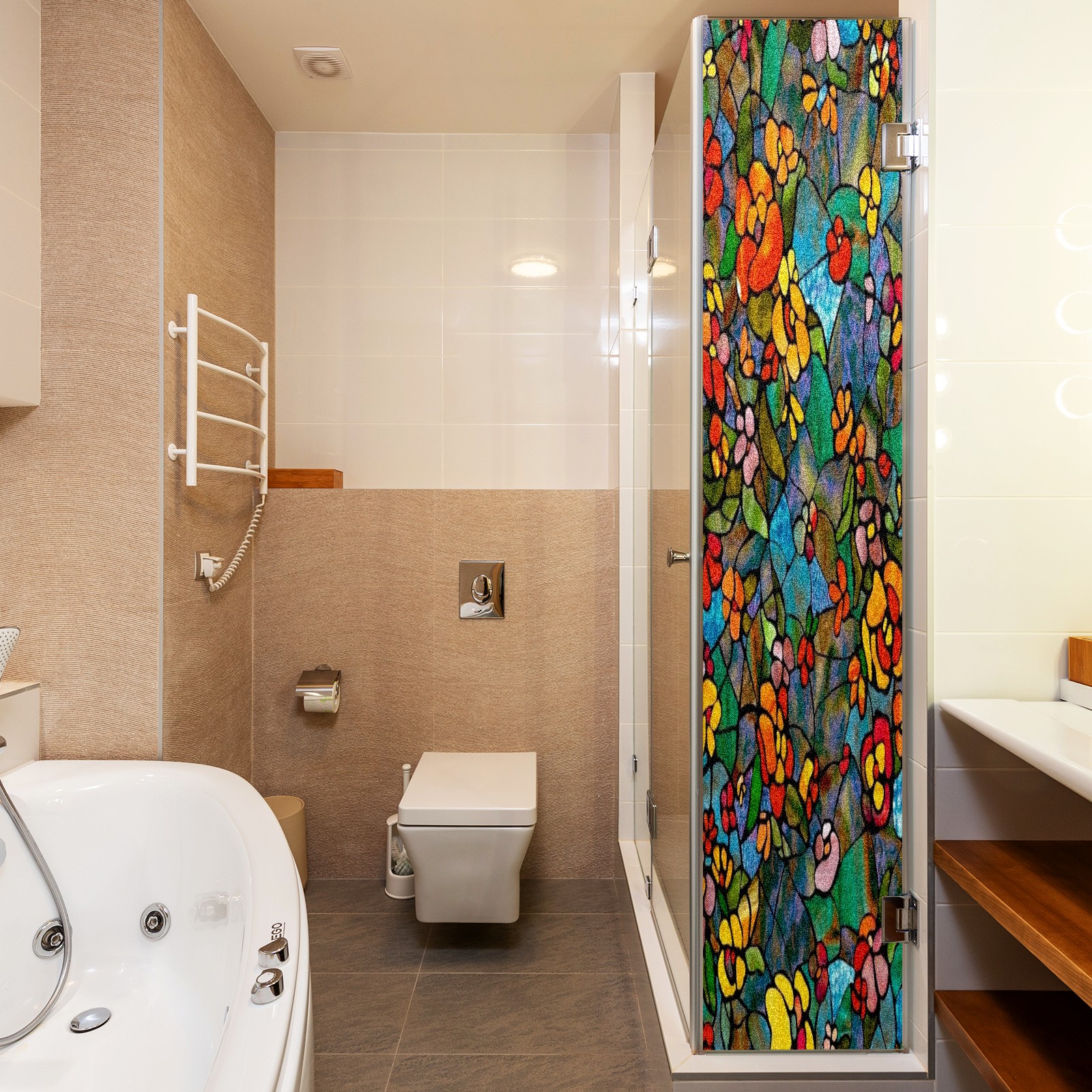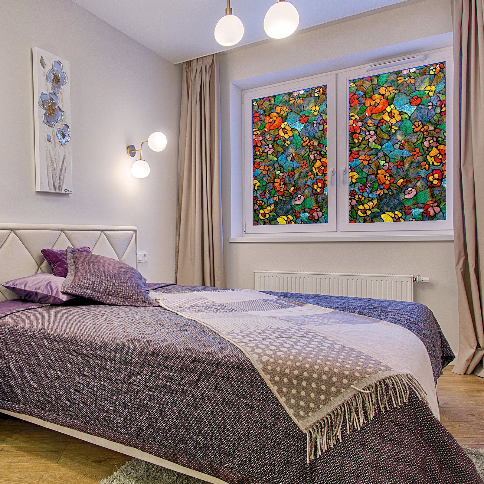 Фильм для окон приватный, матовый, под цветное стекло, декоративный статически клеящийся, для ванной и домашнего офиса, Tulip Colorful Floral