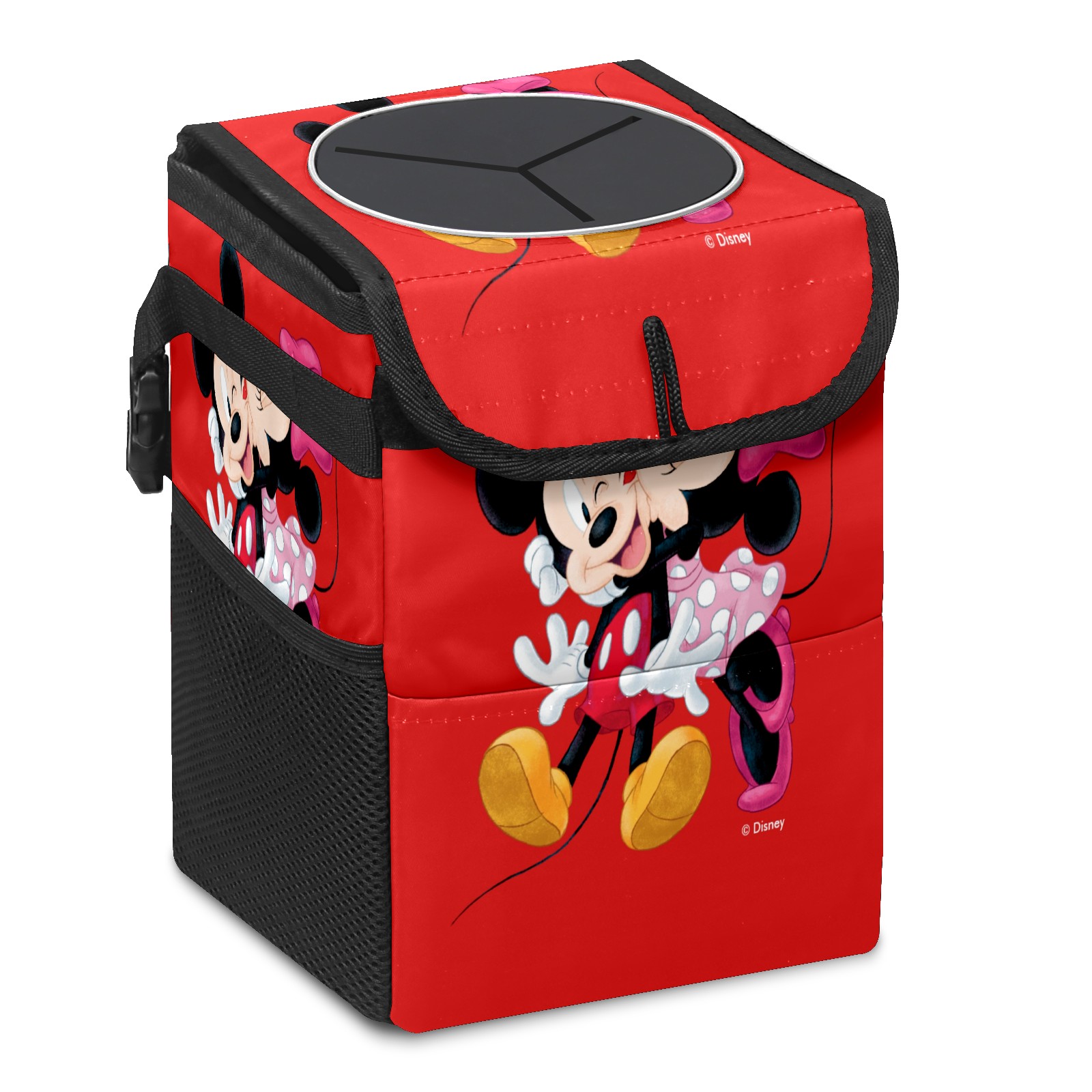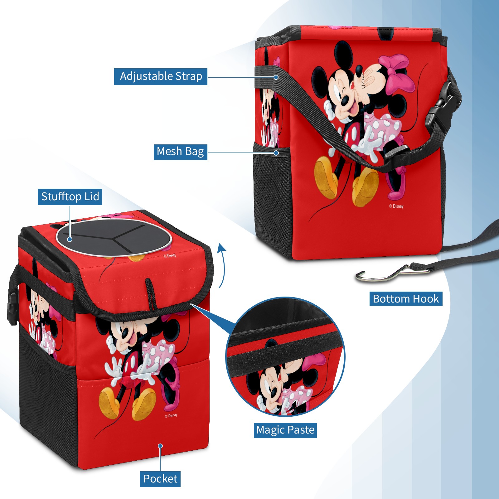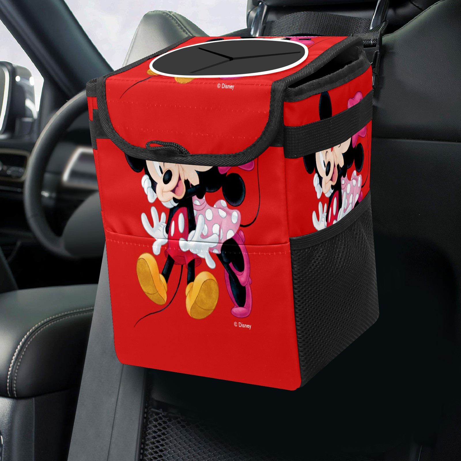 Car Trash Can with Lid, Small Portable Hanging Automotive Garbage Bin for Vehicles, Leakproof Waste Bag Container for SUV Truck Van Interior Auto Travel Road Trips(Mickey And Minnie Valentine's Day Red)